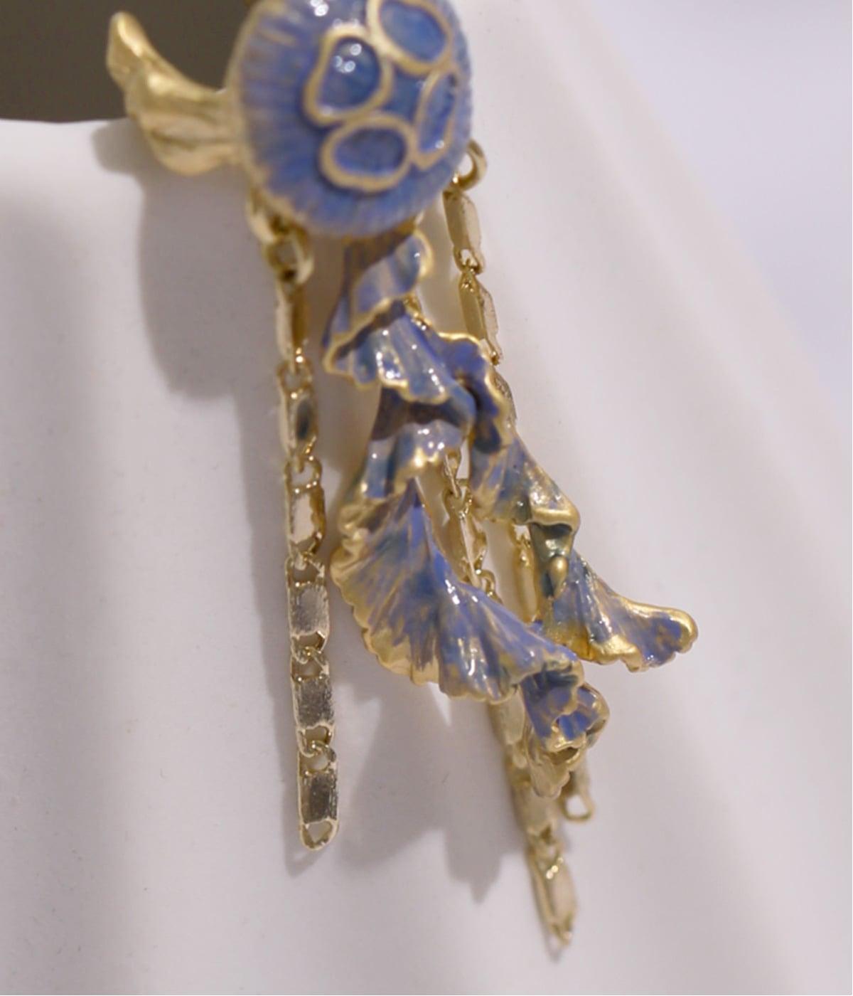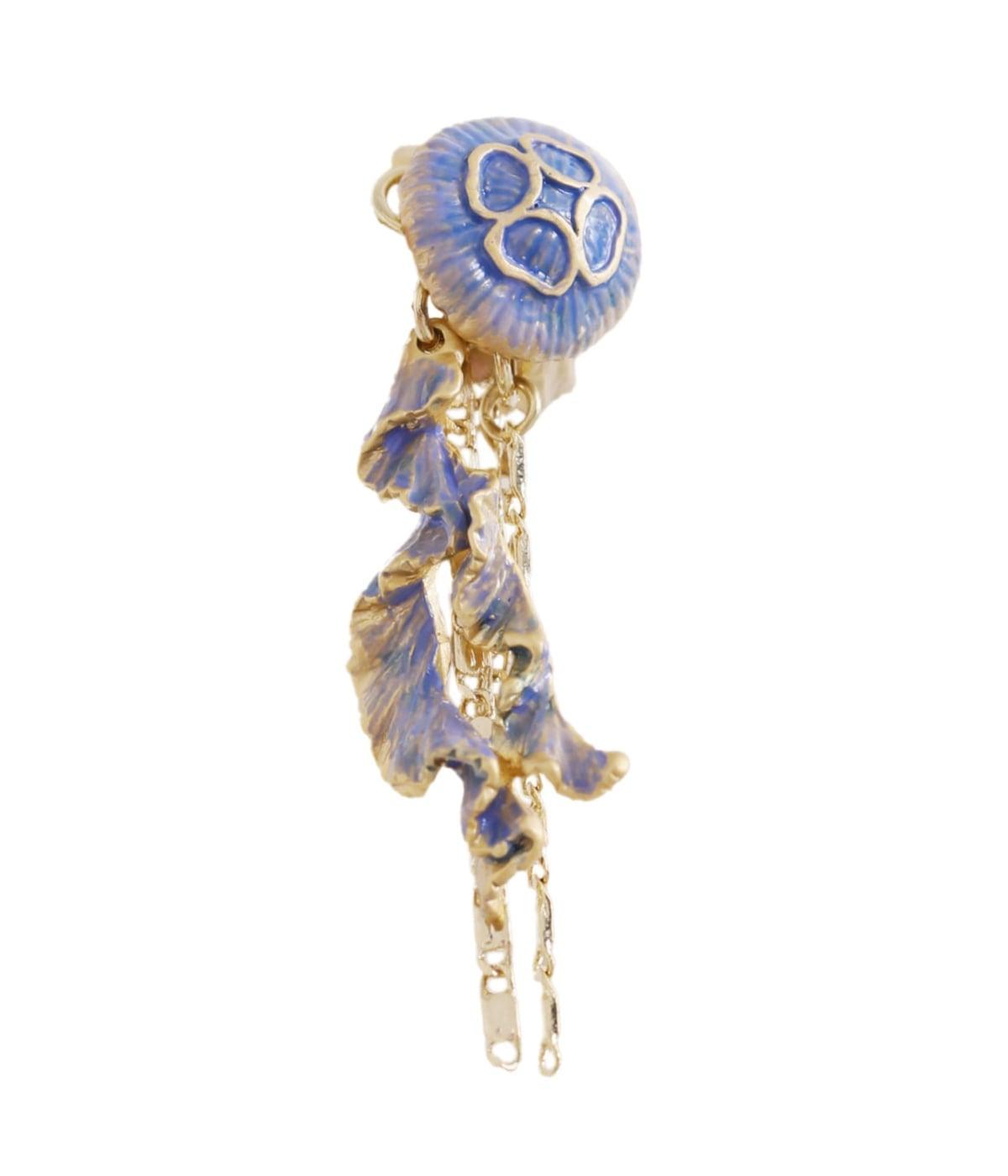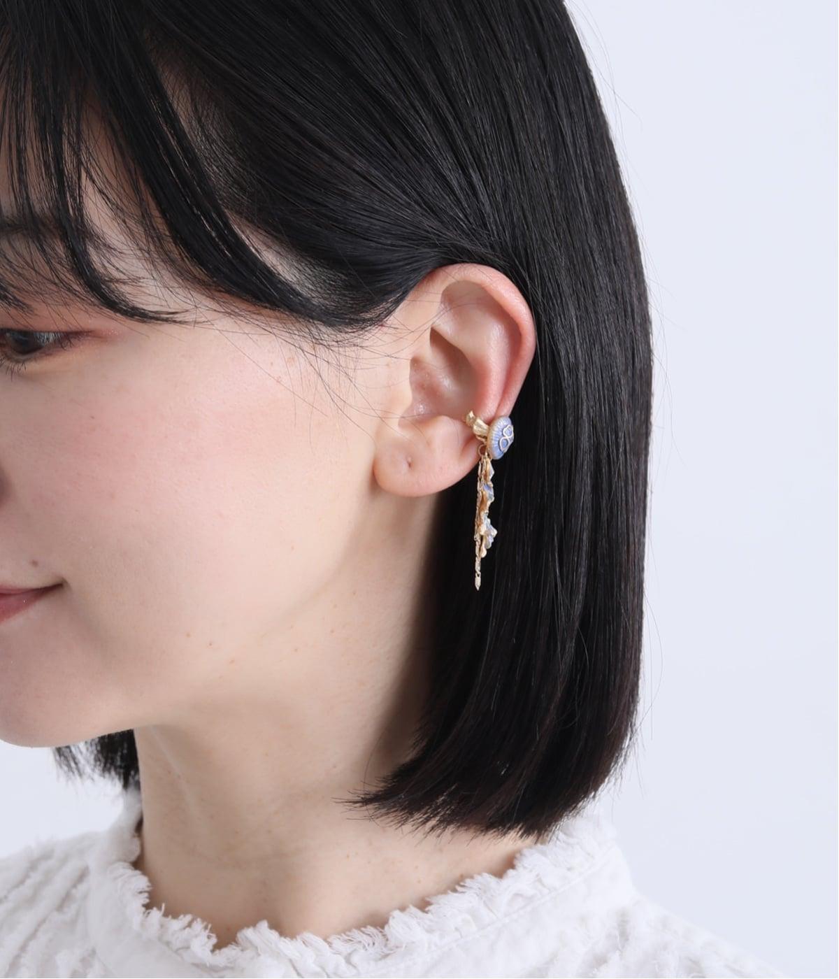 海でゆらゆら漂う海月をモチーフにしたイヤーカフ。ディテールまで繊細に描いた傘や揺れる口腕まで、幻想的な雰囲気を保ちながらも再現。顔まわりに神秘的な華やかさを添え、ブラウスなどきれいめな装いにもなじみます。