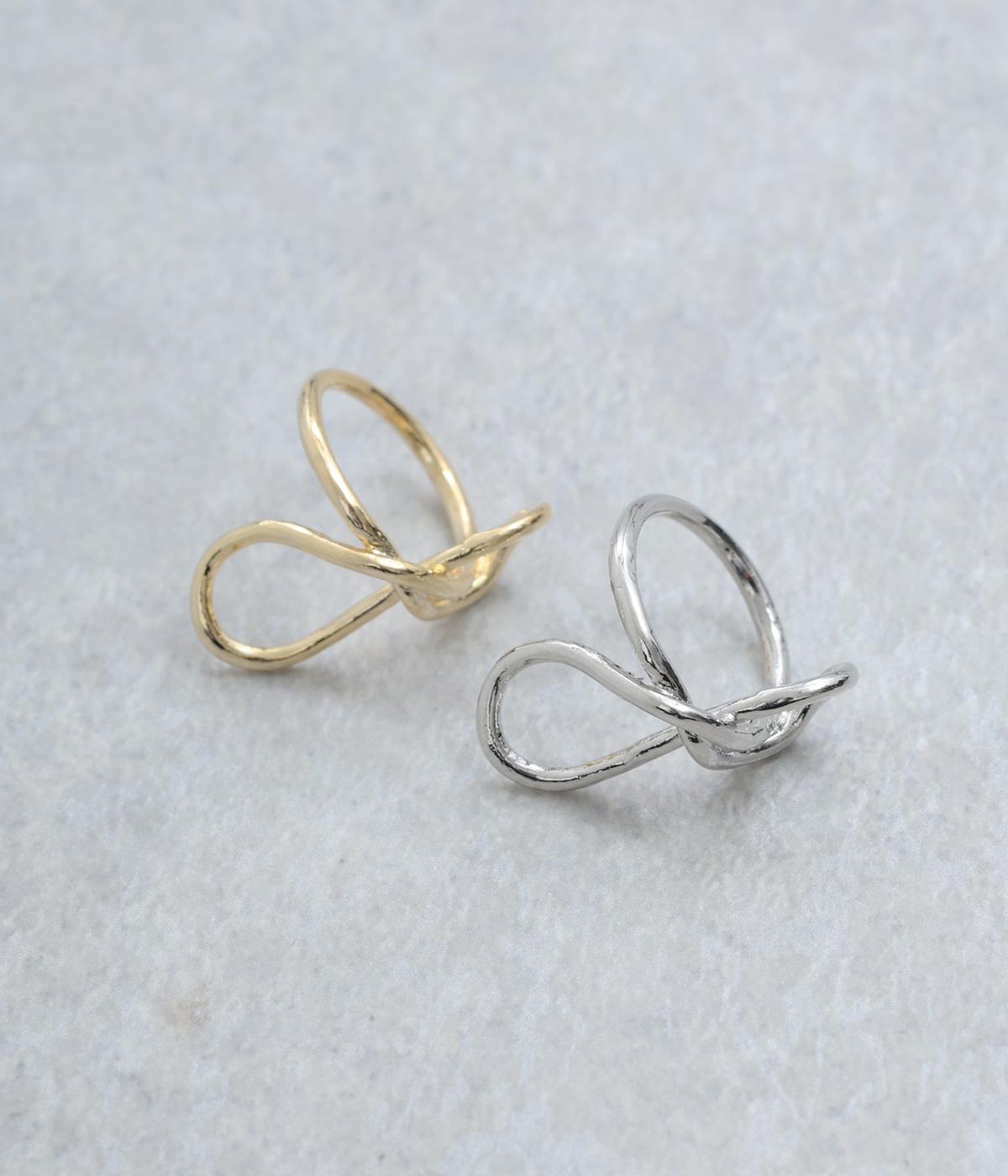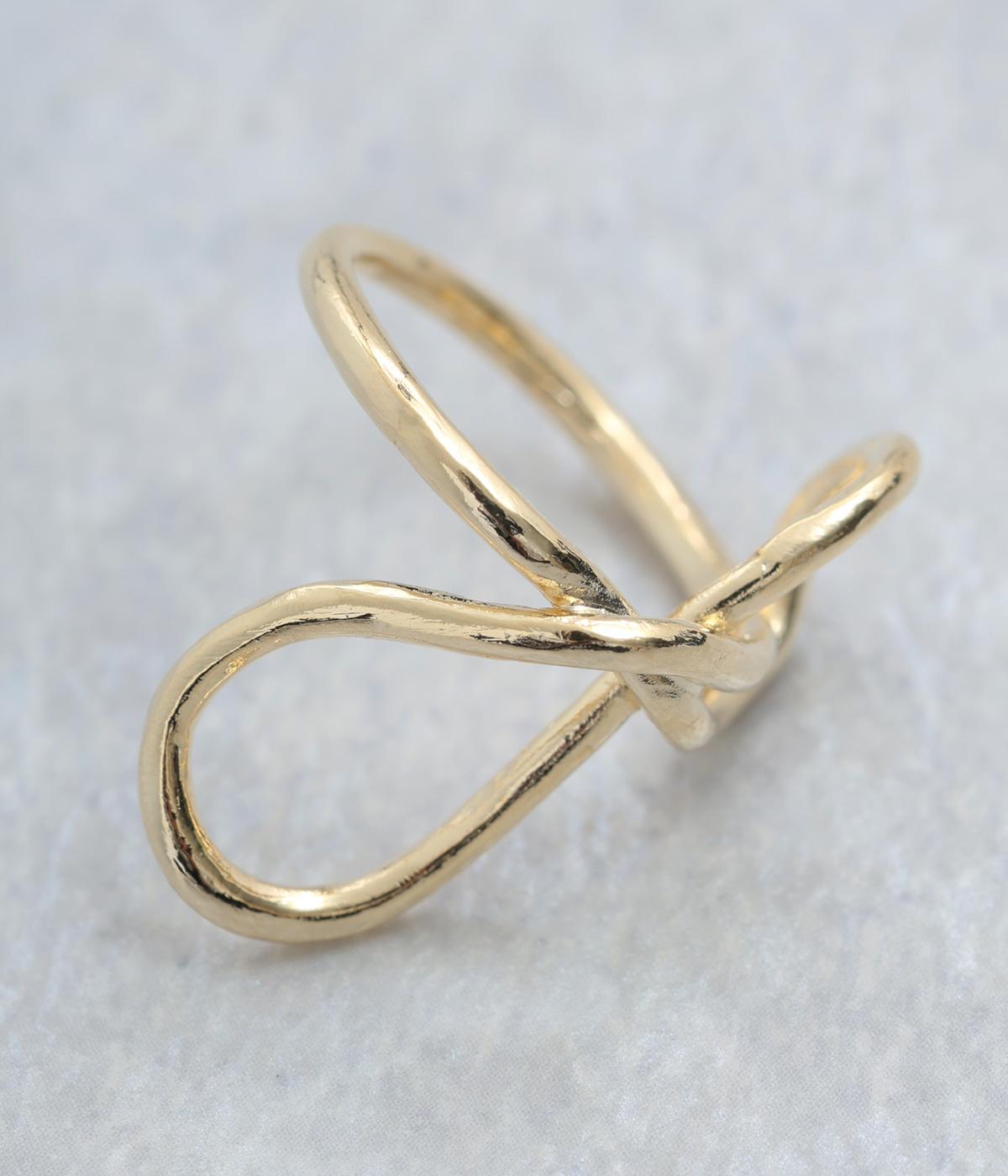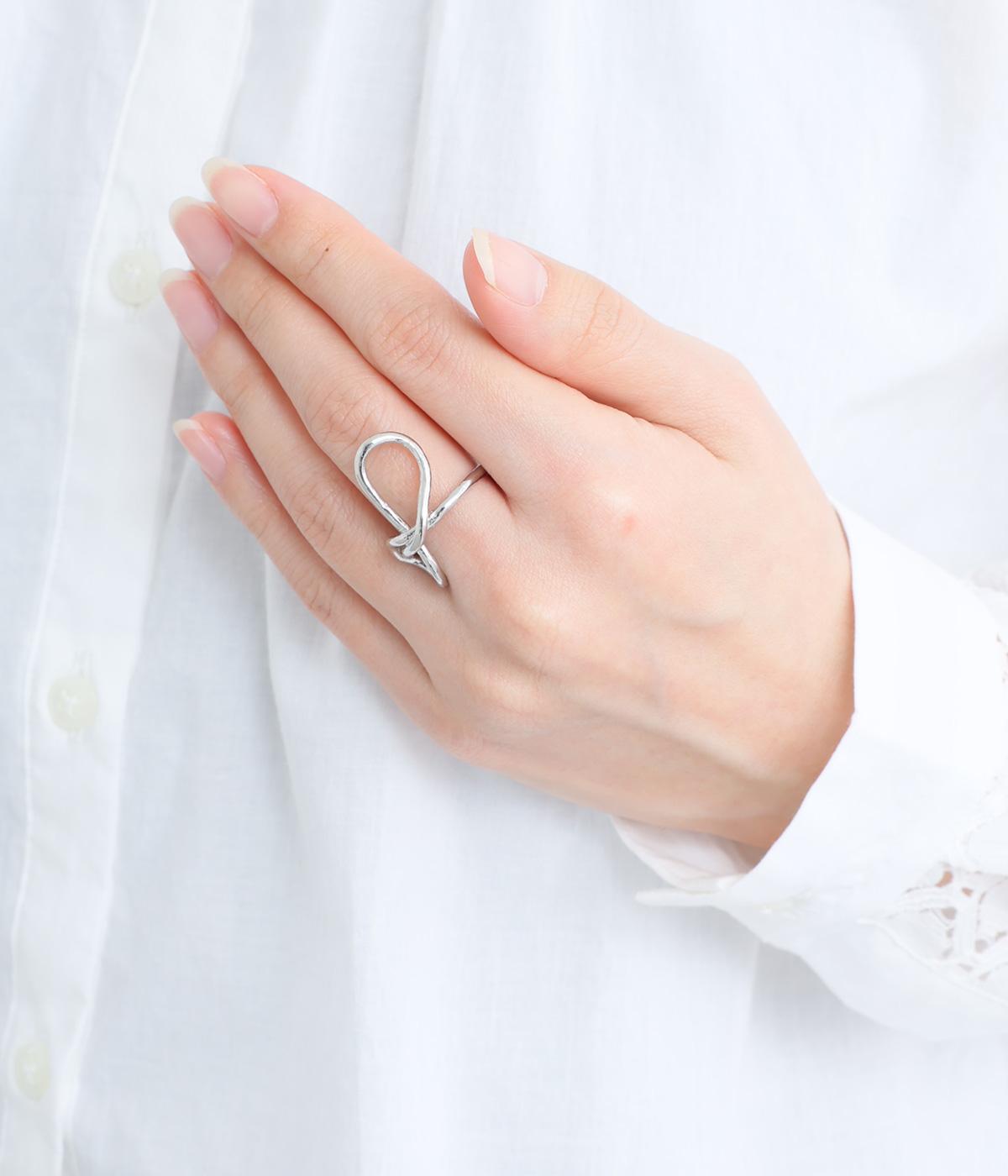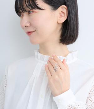動きをつけたニュアンスのあるモチーフが指先を華やかに飾るメタルリングです。大きめながらも抜け感があるので、主張しすぎないのもポイントに。重ねづけを楽しむのもおすすめです。