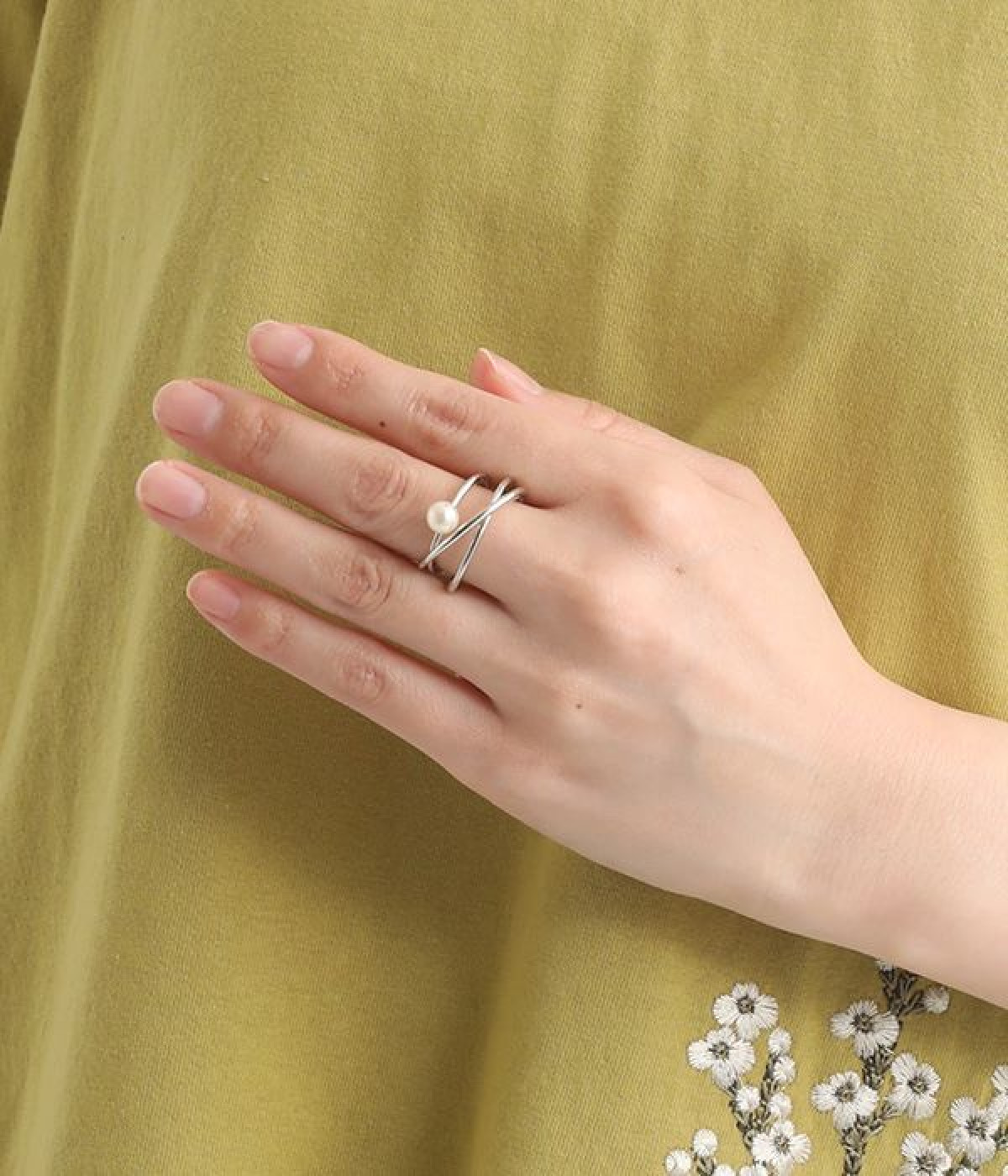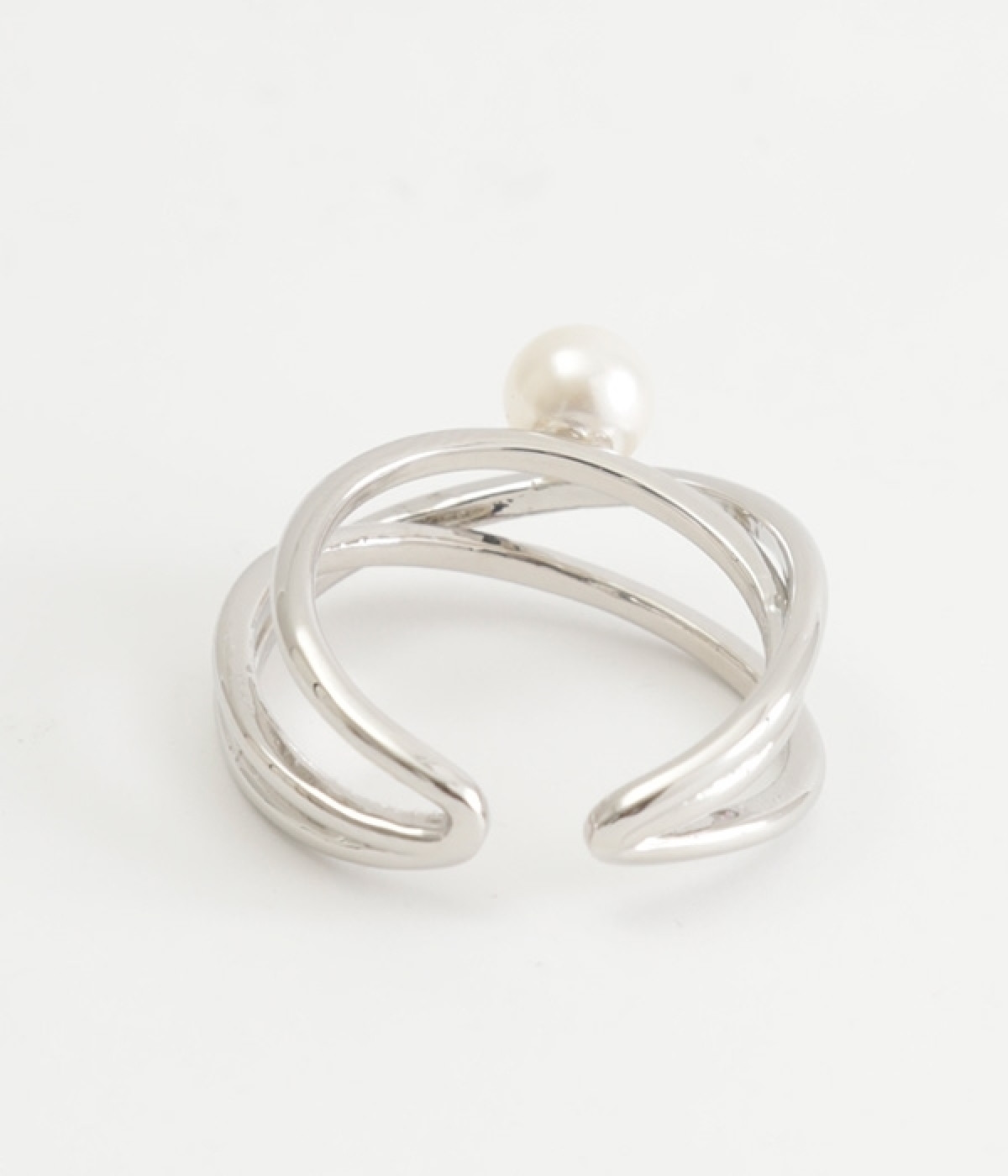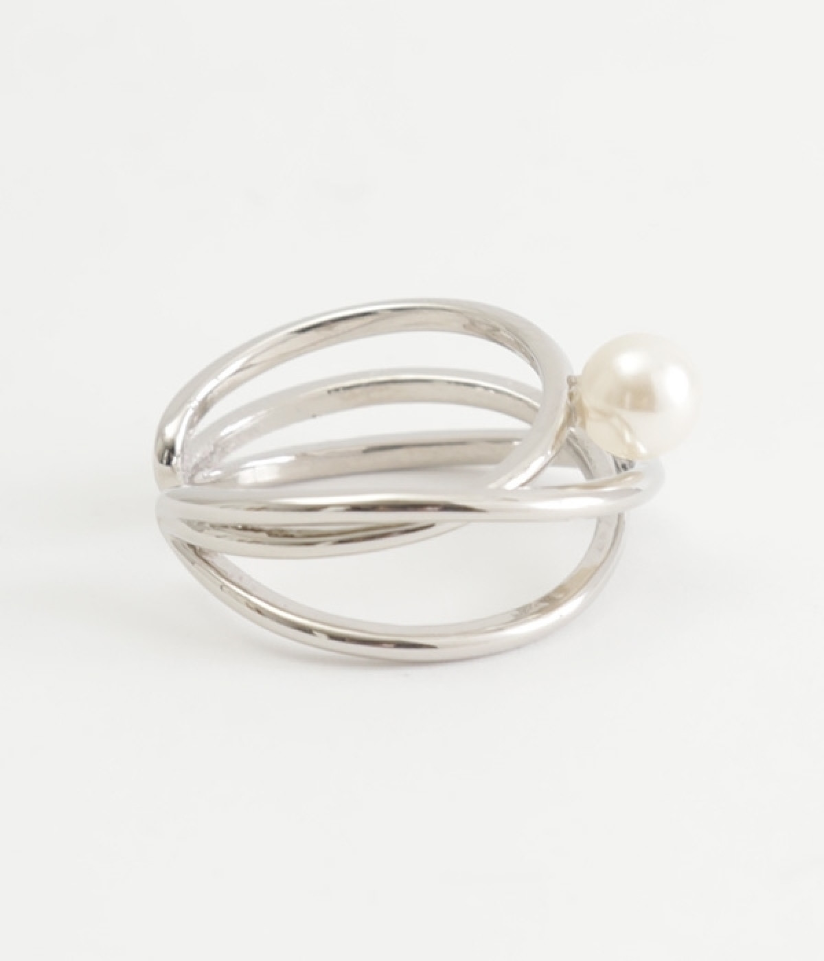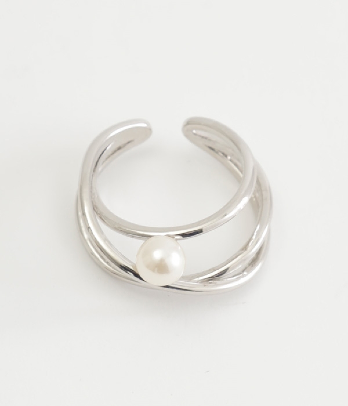 お肌にやさしいニッケルフリーメッキを使用したリングです。一粒のプラパールをあしらい、上品な雰囲気に仕上げました。三連使いの繊細なリングが、手元に女性らしいアクセントを添えています。主張しすぎないデザインで、カジュアルスタイルにはもちろん、お呼ばれなどの華やかに見せたい日の装いにもなじんでくれます。