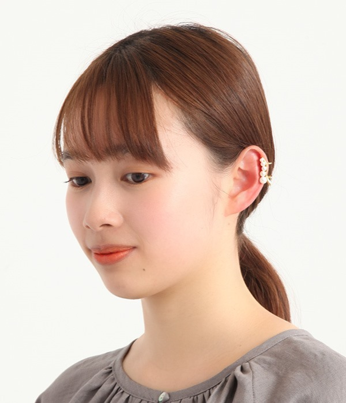 濡れたように艶めくパールが美しいイヤーカフです。耳たぶに沿うような曲線のラインが、耳元を品よく華やかに彩ります。カジュアルからドレスアップまで様々なシーンで使いやすいデザイン。イヤーカフは耳が痛くなりにくので、イヤリングが苦手な方にもおすすめです。お肌にやさしいニッケルフリーメッキを使用しているのもうれしいポイント。
