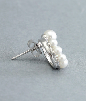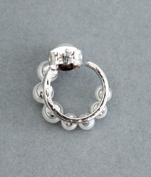 サークル状に小粒パールを配置したエレガントなピアスです。やわらかなつやのパールは複数並べていても主張しすぎず、使いやすいのがうれしいポイント。肌に触れていても安心のニッケルフリーメッキ素材を使用しています。普段のコーディネートにはもちろん、お呼ばれスタイルにも活躍します。