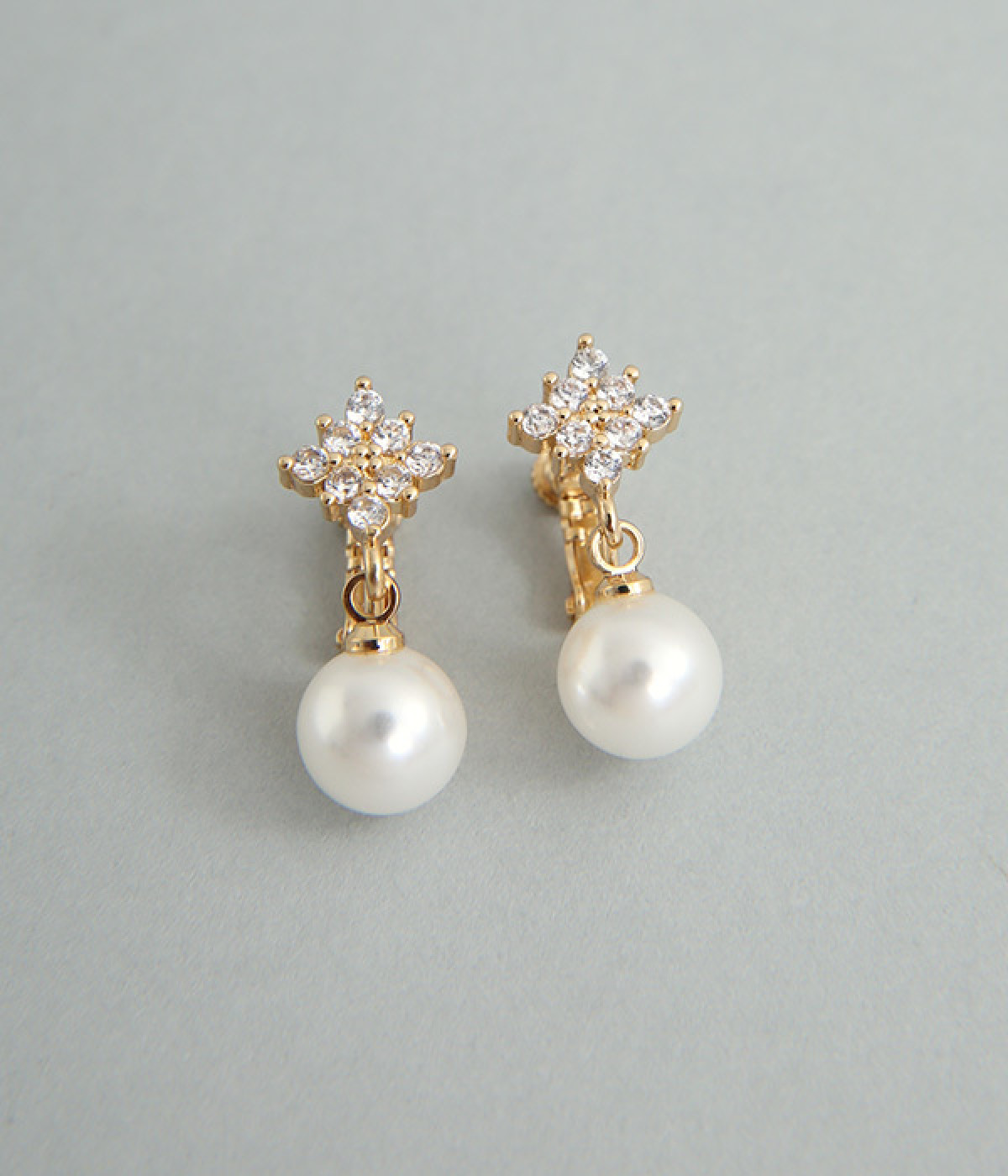 お花のようなひし形ストーンに8mmパールがぶら下がったイヤリングです。華奢な金具が上品かつ可愛らしさも感じさせる大人なデザイン。お呼ばれスタイルはもちろん、デイリースタイルにも合わせやすく、華やかさを添えてくれます。調節可能なネジバネ式は着脱しやすく、お肌に優しいニッケルフリーメッキ素材もうれしいポイントです。