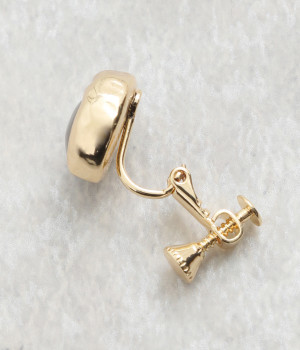 つやつやなカボションとメタルが上品なイヤリングです。丸いフォルムがフェミニンでクラシカルな印象を与えます。調節可能なネジバネ式で、一度フィット感を調節するだけでパチンとイージーに着脱できます。