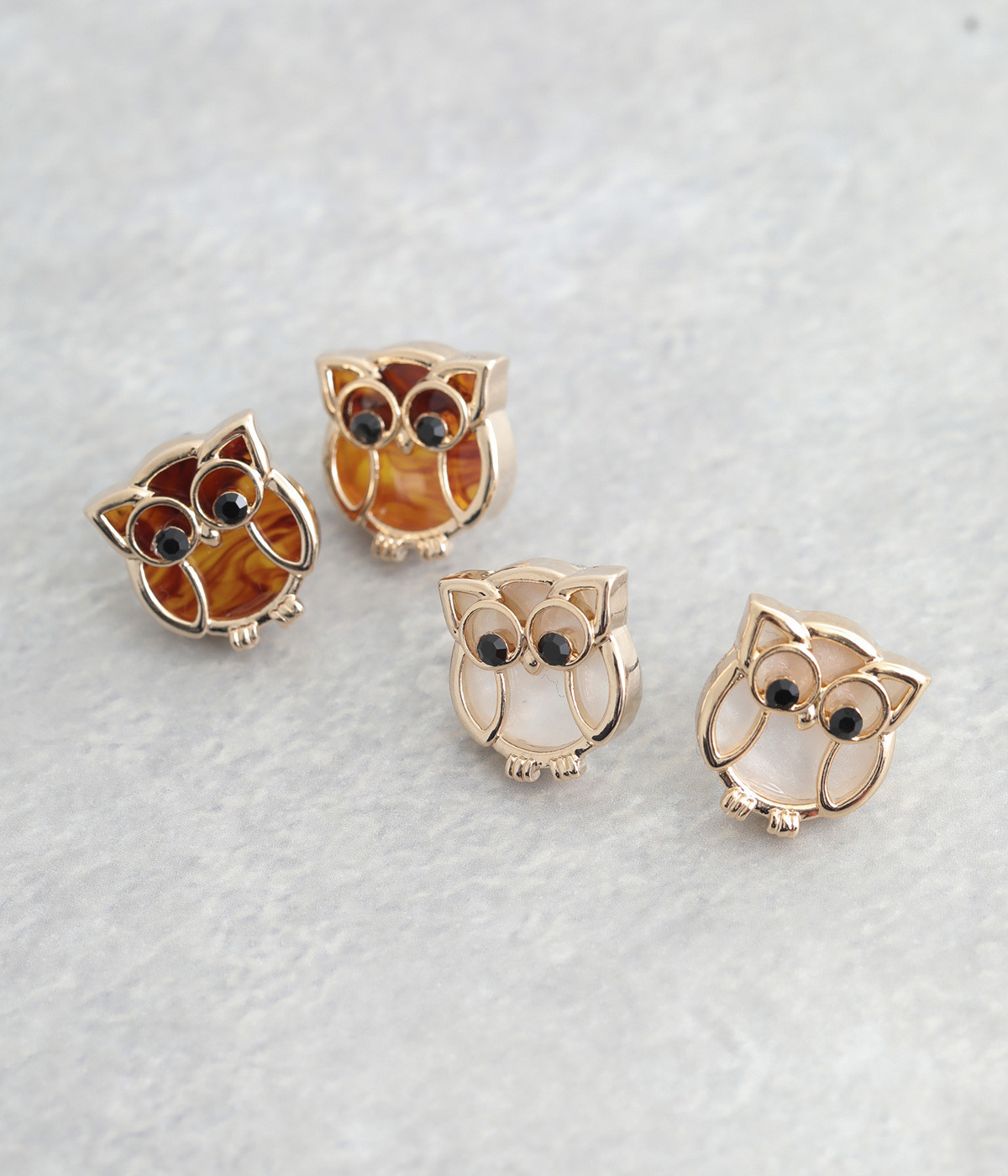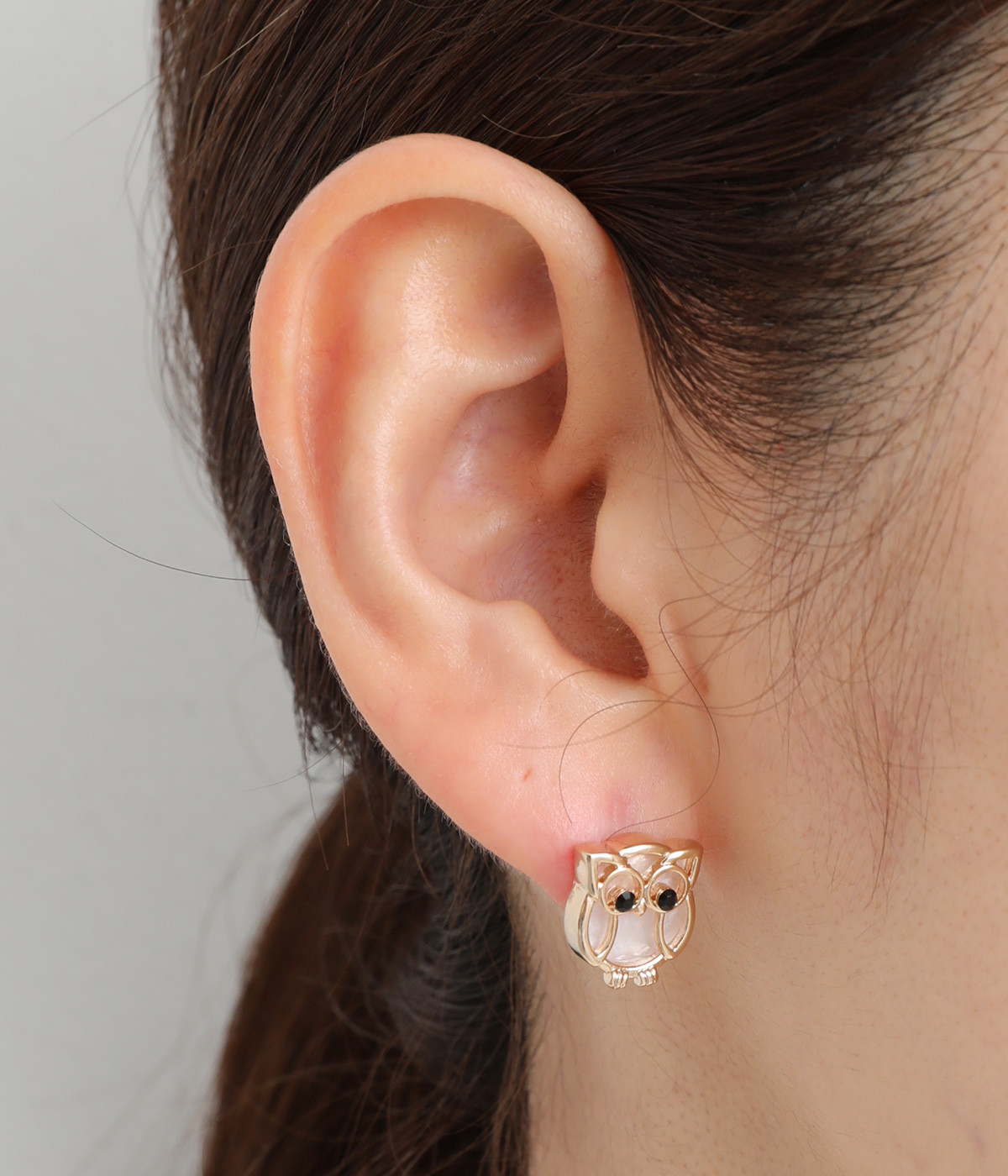 ラッキーモチーフとしても有名なふくろうを模ったピアスです。目はきらりと光るガラスを用いてアクセントに。落ち着いた色合いに仕立てているため、かわいくなりすぎないのも嬉しいポイントです。