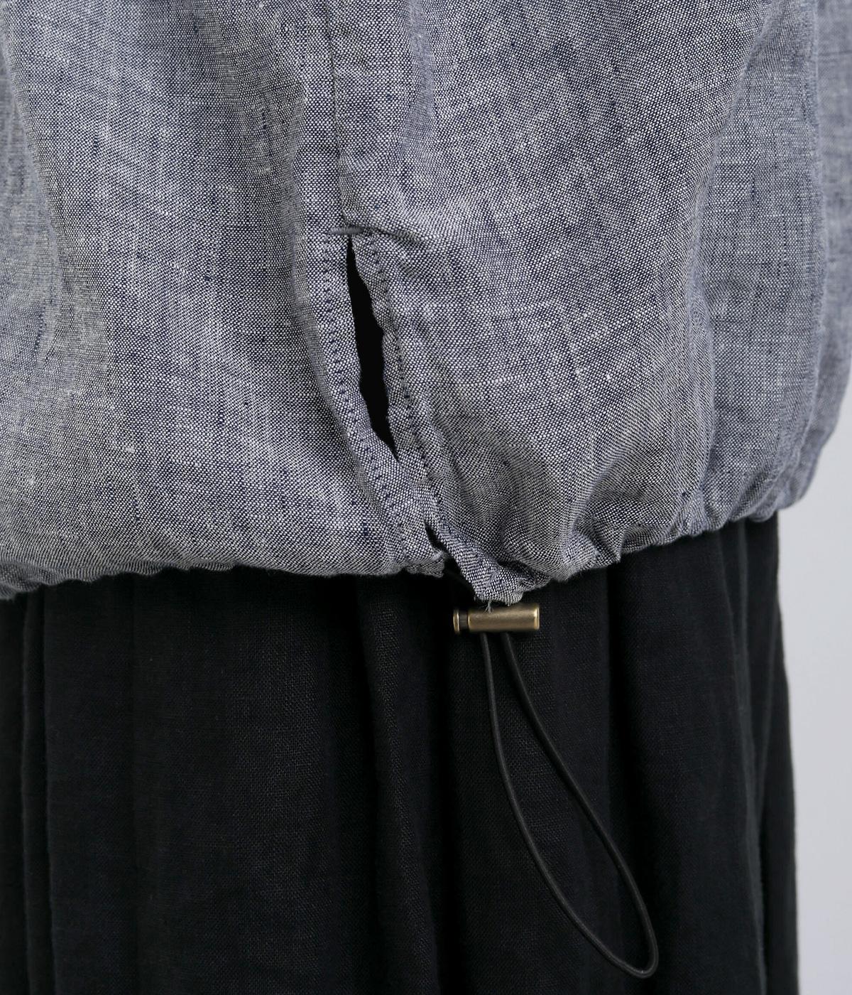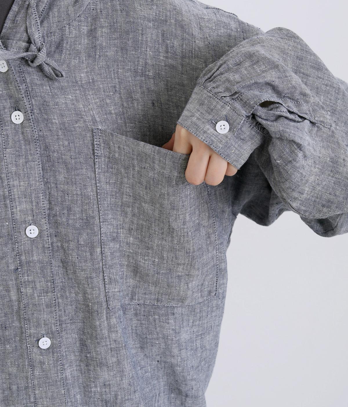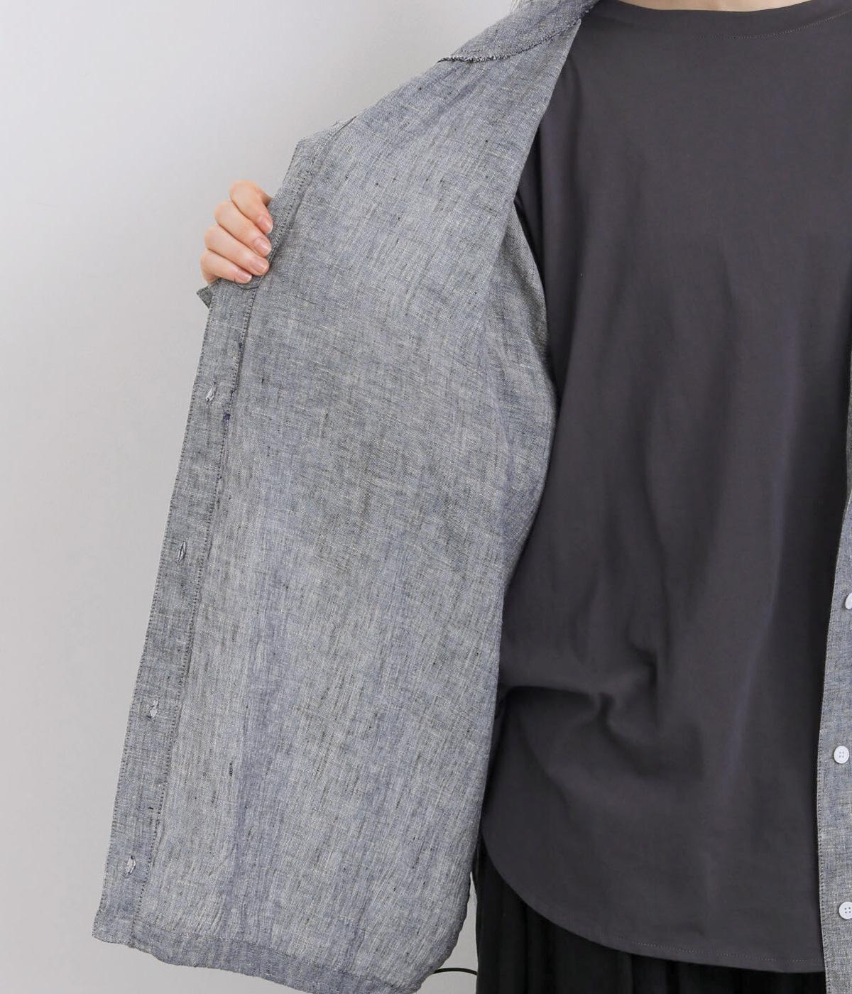 ナチュラルな風合いが魅力のリネン素材を、軽やかな先染めシャンブレー生地に仕立てました。ほどよい厚みとやわらかな質感のなかにシャリ感もあり、軽やかな着用感を叶えます。ネップが生み出す表情が奥行きを添え、大人の装いにやさしくなじむ生地感です。