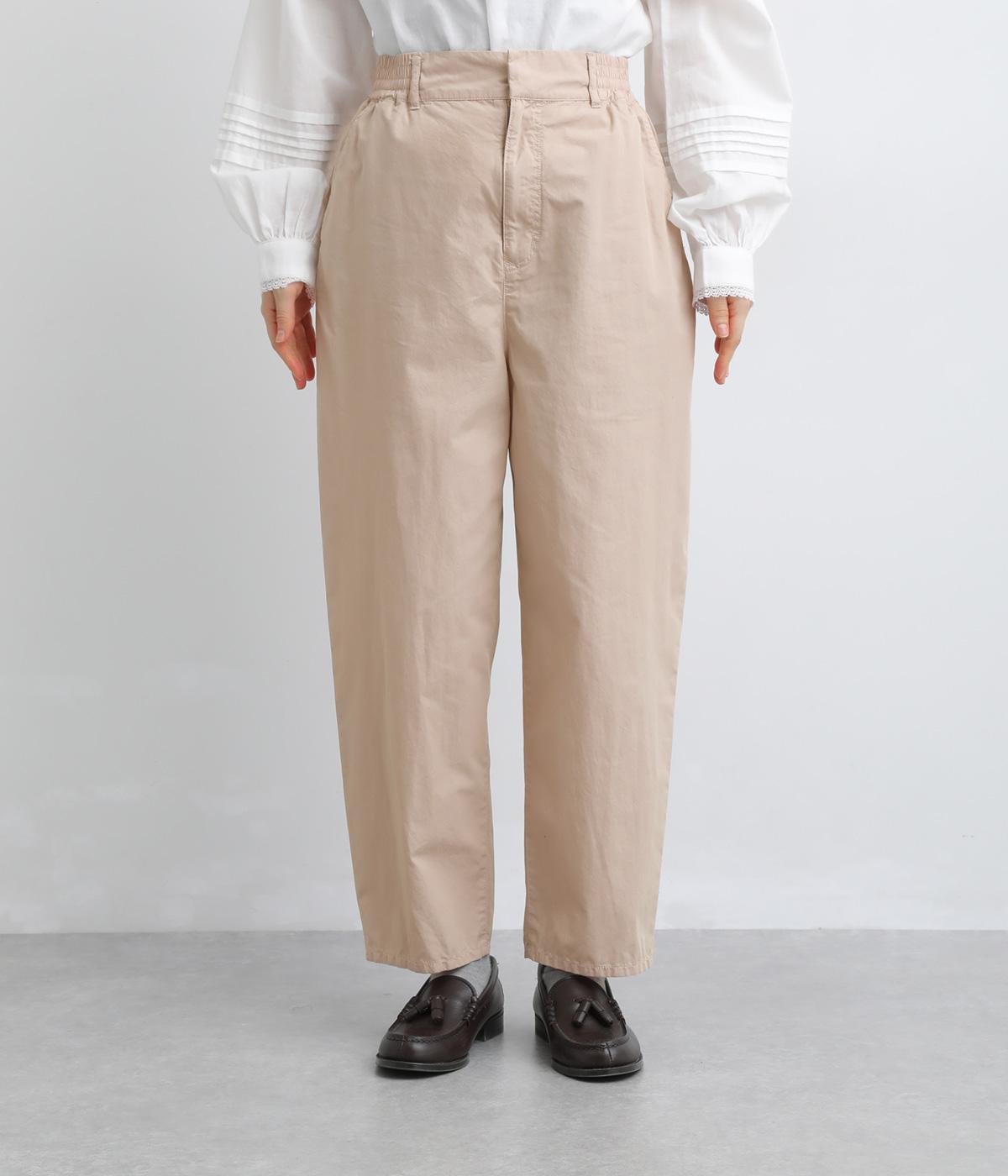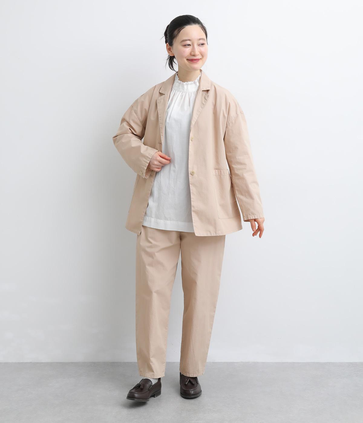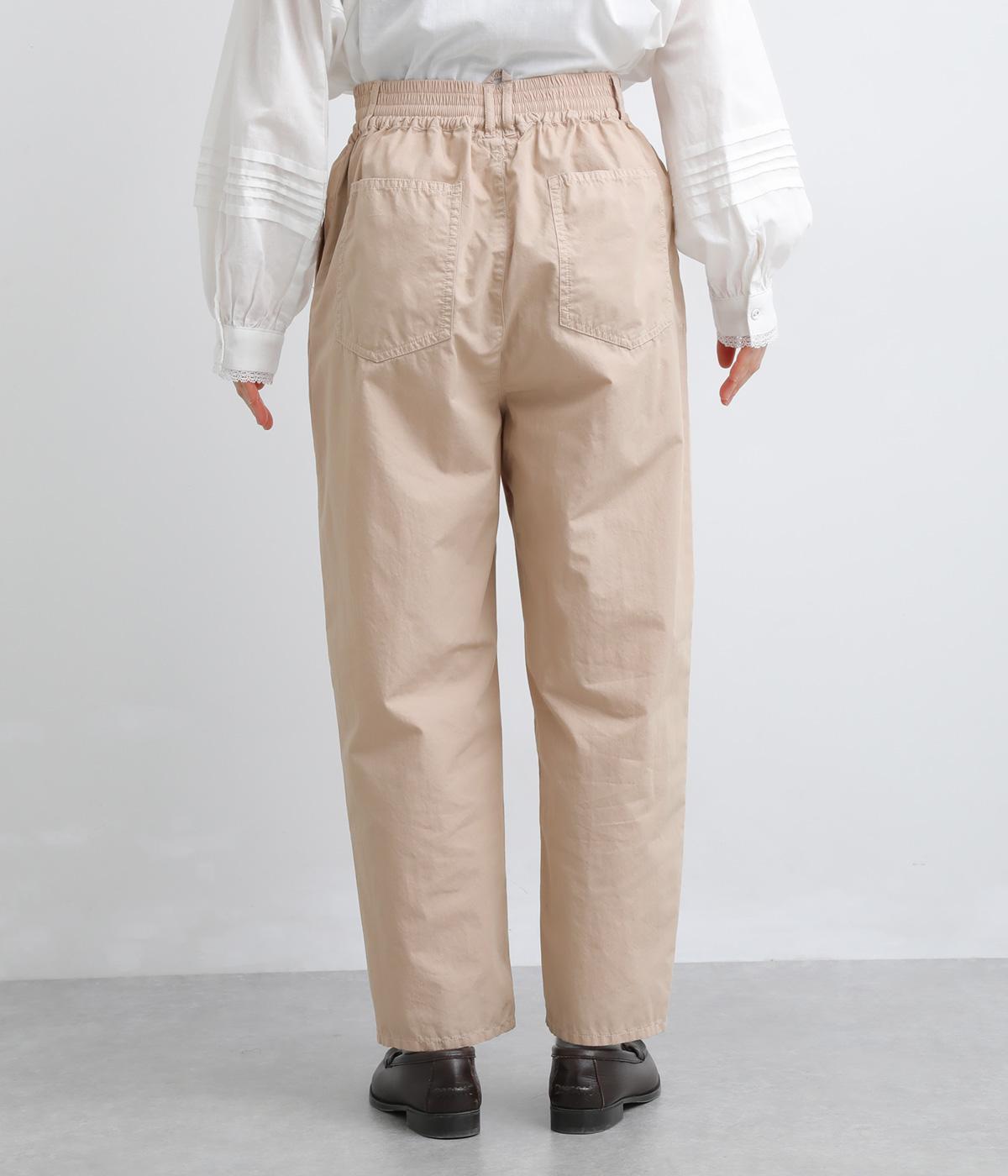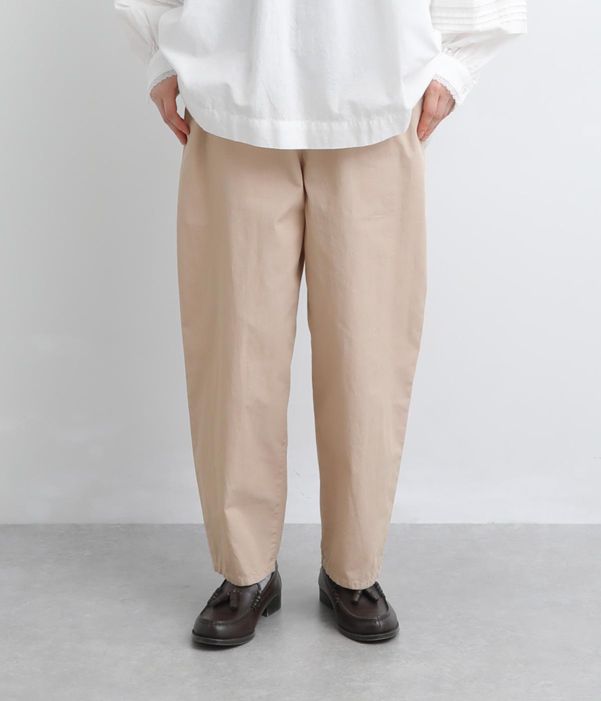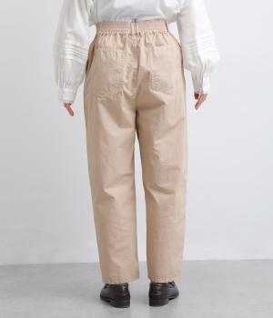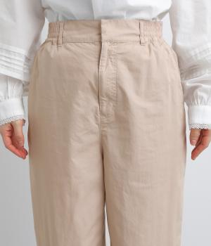 腰まわりをゆったりさせて大人のこなれ感を演出したテーパードパンツ。シンプルな仕立てが素材の風合いを惹きたて、気負わず洗練された装いに。前あきでお腹まわりはすっきりと、後ろゴム&調整紐でフィット感も◎。同素材のジャケット合わせもおすすめ。