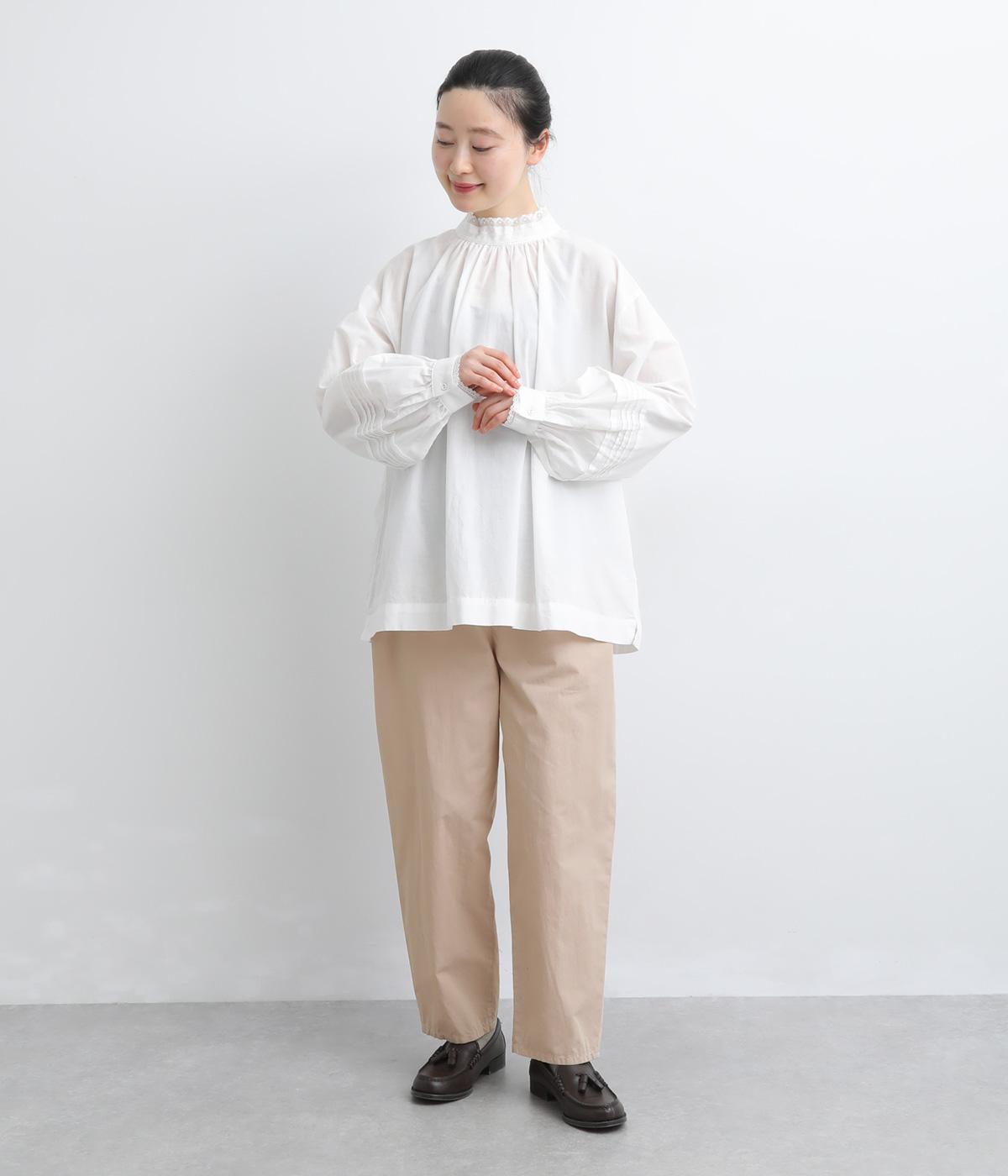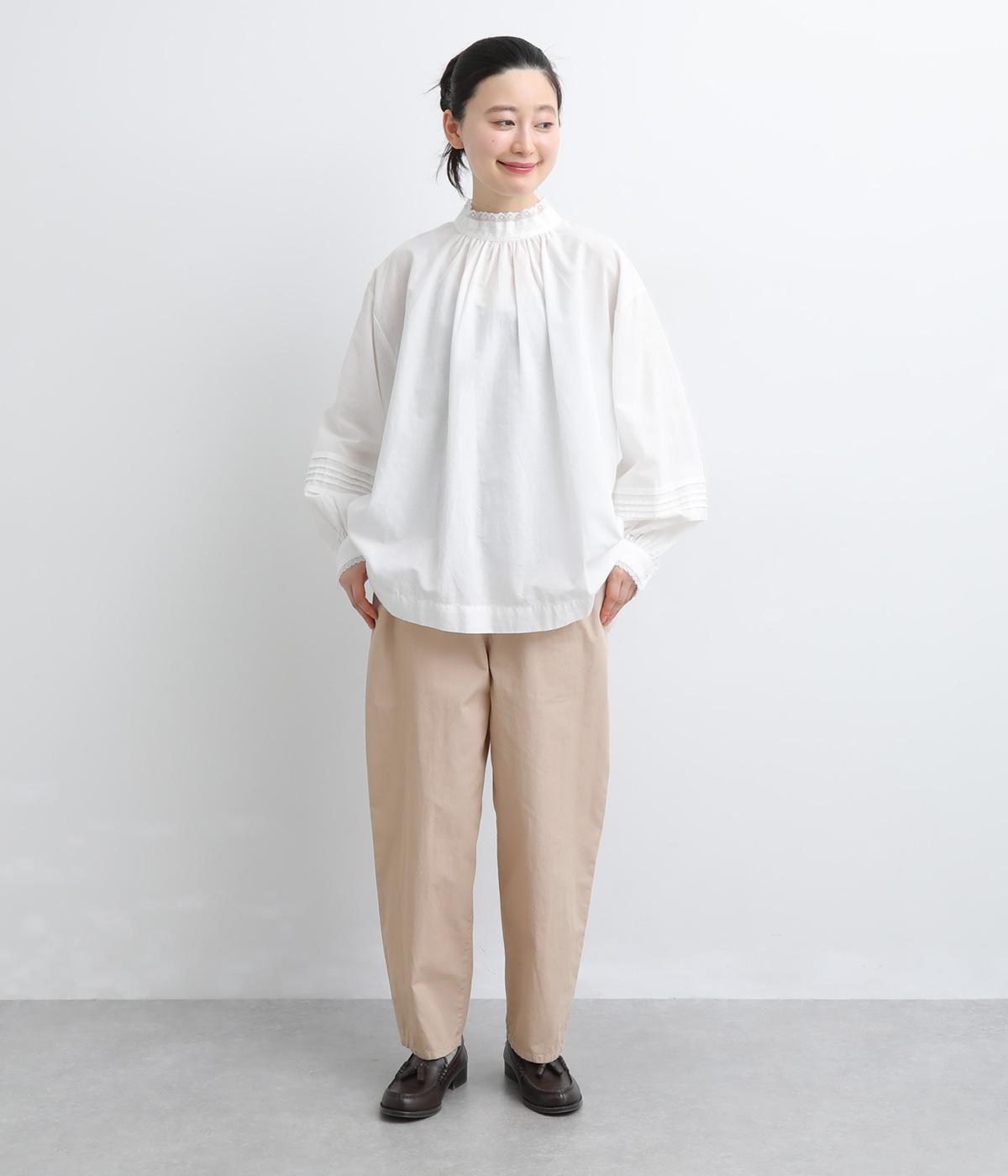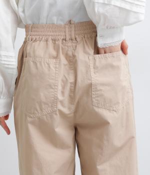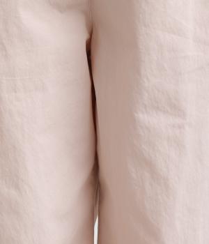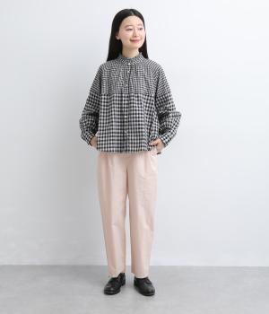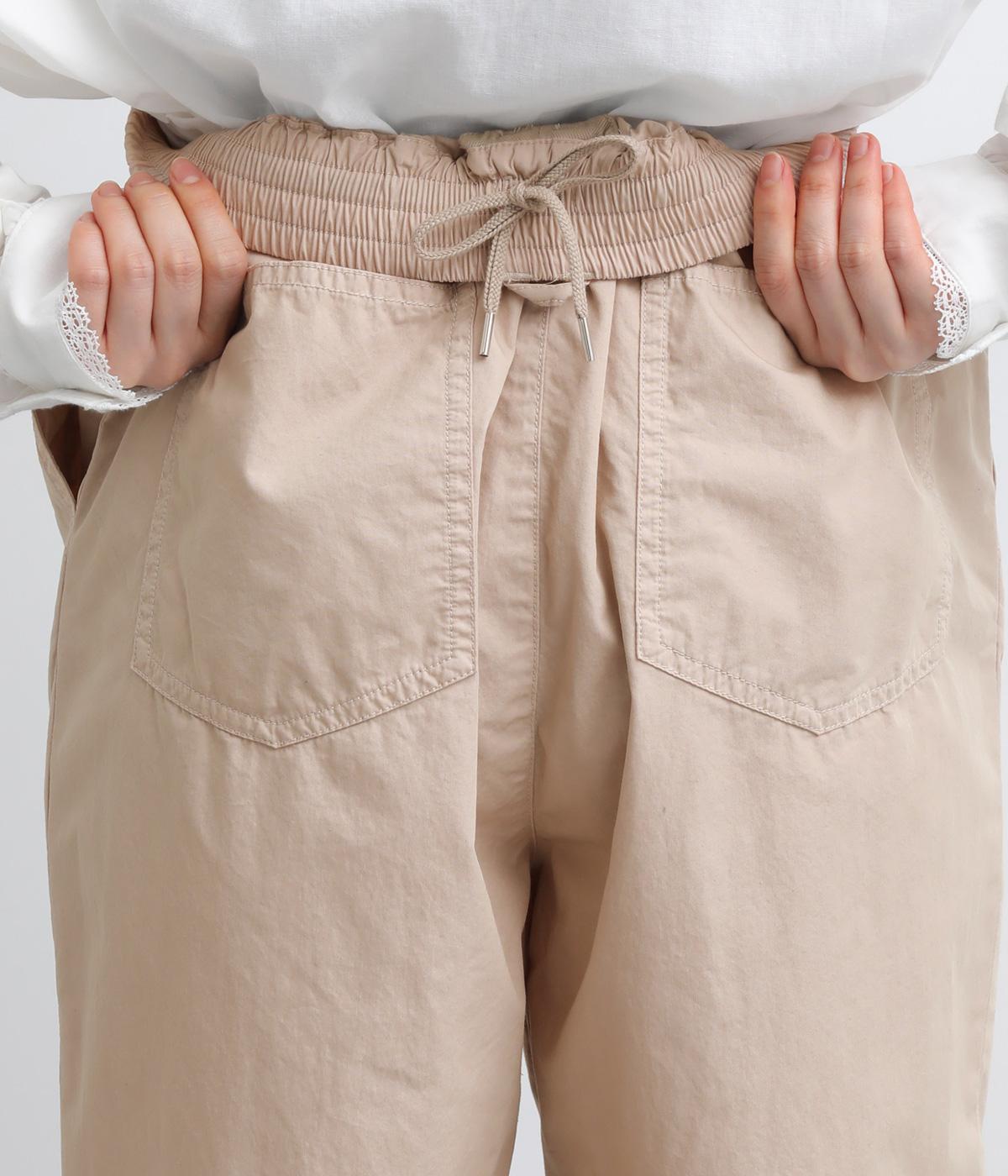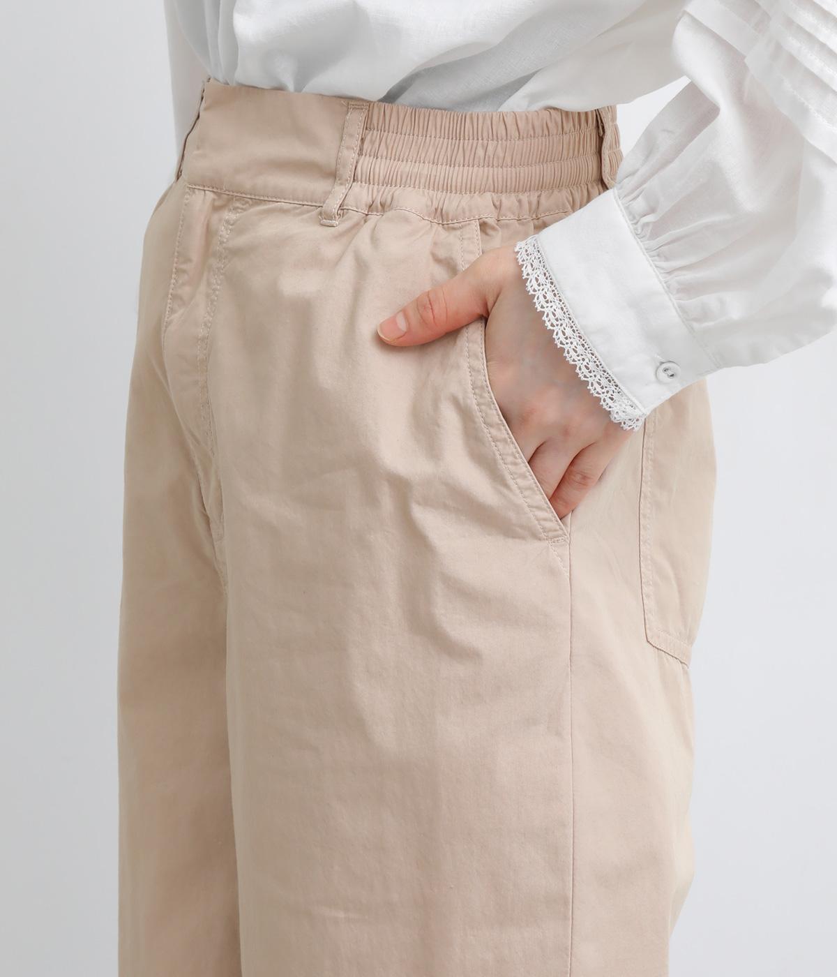 腰まわりをゆったりさせて大人のこなれ感を演出したテーパードパンツ。シンプルな仕立てが素材の風合いを惹きたて、気負わず洗練された装いに。前あきでお腹まわりはすっきりと、後ろゴム&調整紐でフィット感も◎。同素材のジャケット合わせもおすすめ。