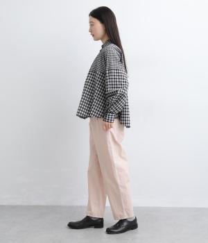 パリッとしたペーパーライクな風合いが特徴的な綿ナイロンの高密度生地を使用。コットンならではのふくらみや製品染め加工によるなじみの良さが魅力です。