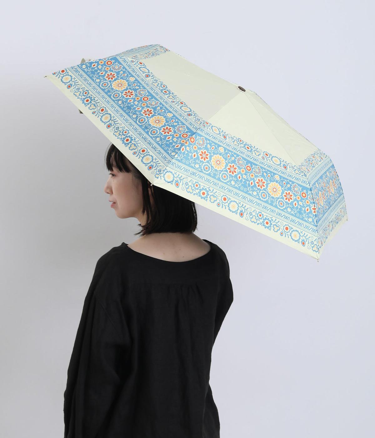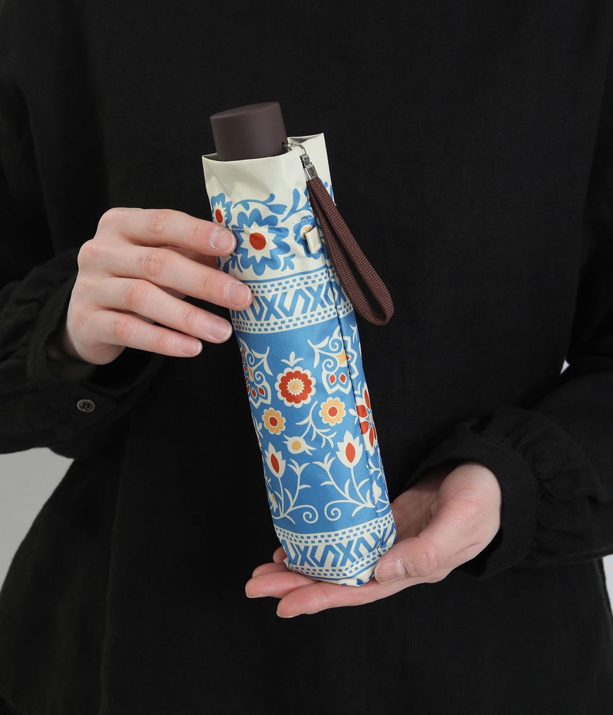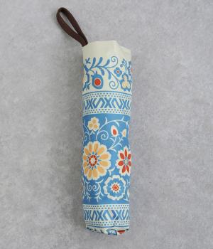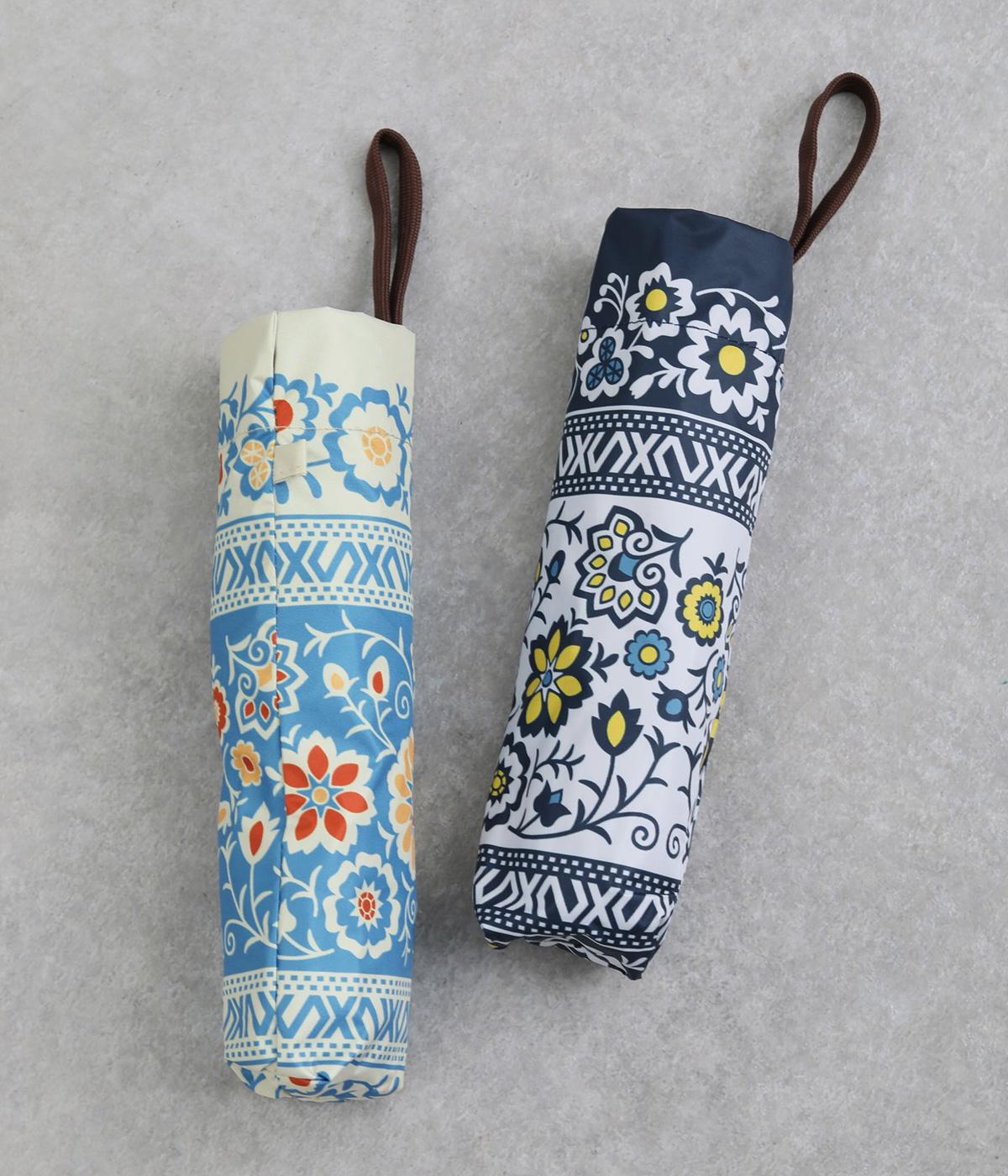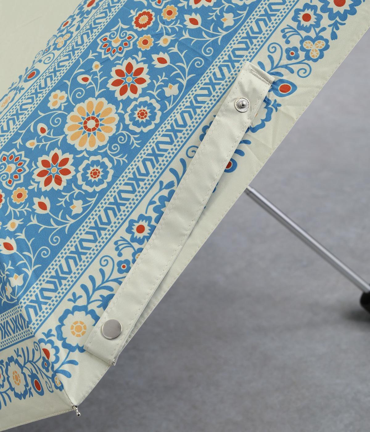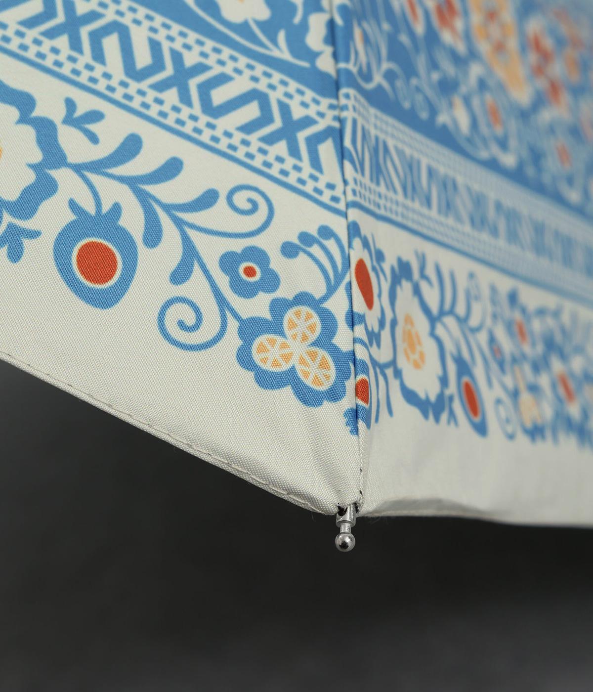 晴雨兼用で使える、便利な折り畳み傘。チェコのキヨフ地方に伝わる、民族衣装の刺しゅうをモチーフにしたデザインです。繊細なクロス模様を思わせるパターンが広がり、華やかさと落ち着きのある表情を演出し。持っているだけで気分が明るくなる柄は、コーディネートのアクセントとしても活躍します。