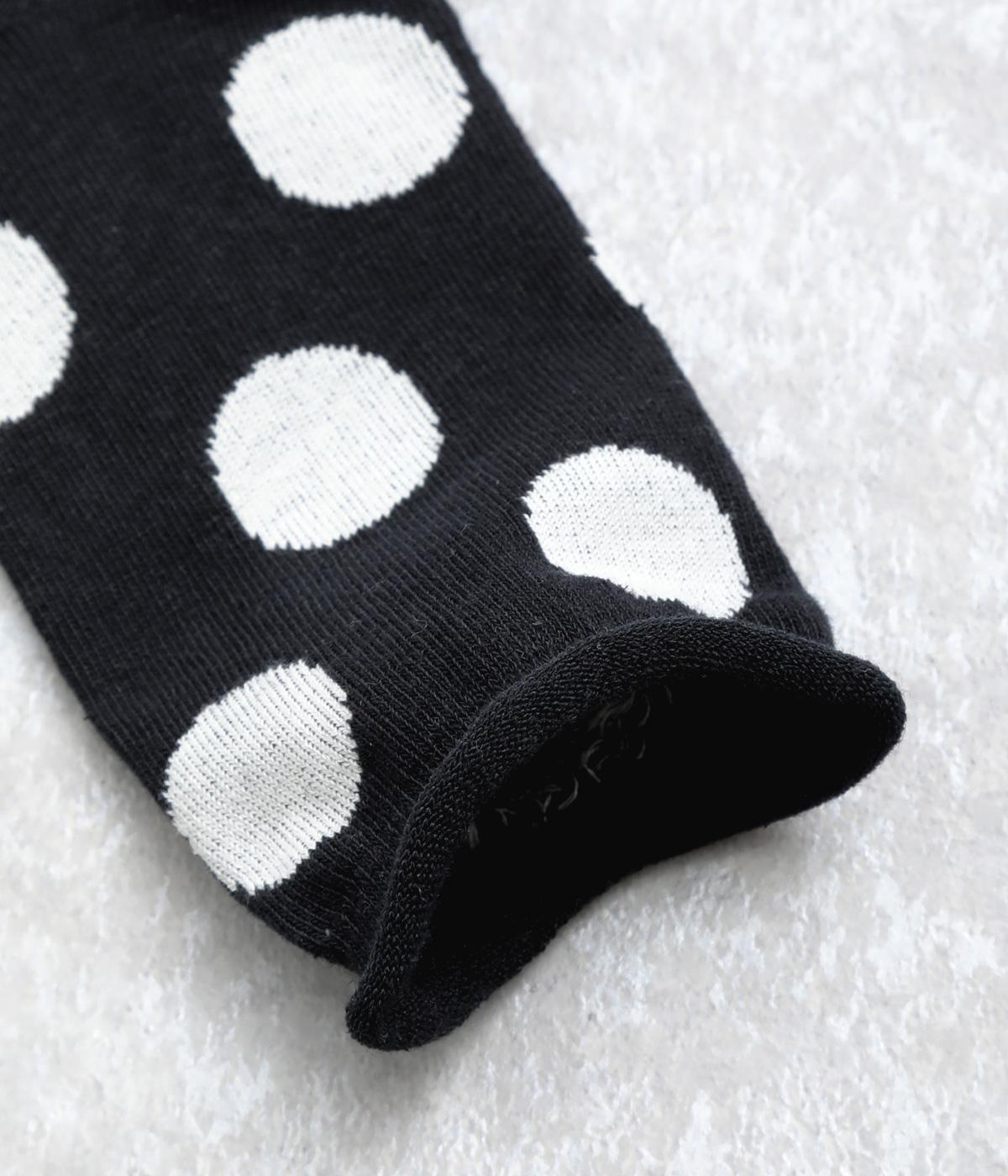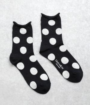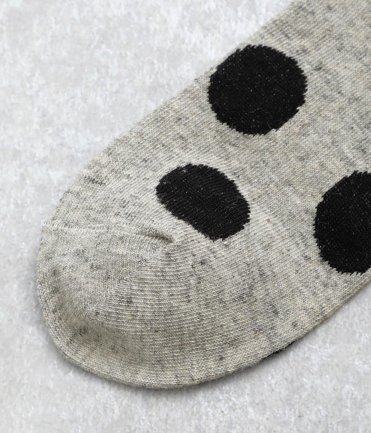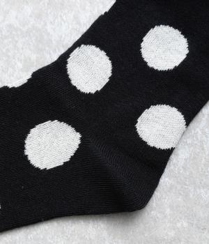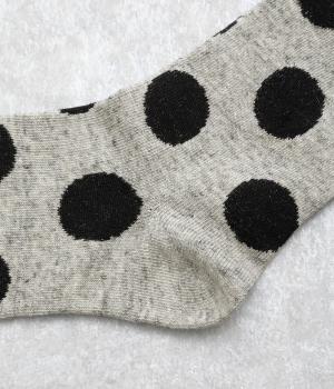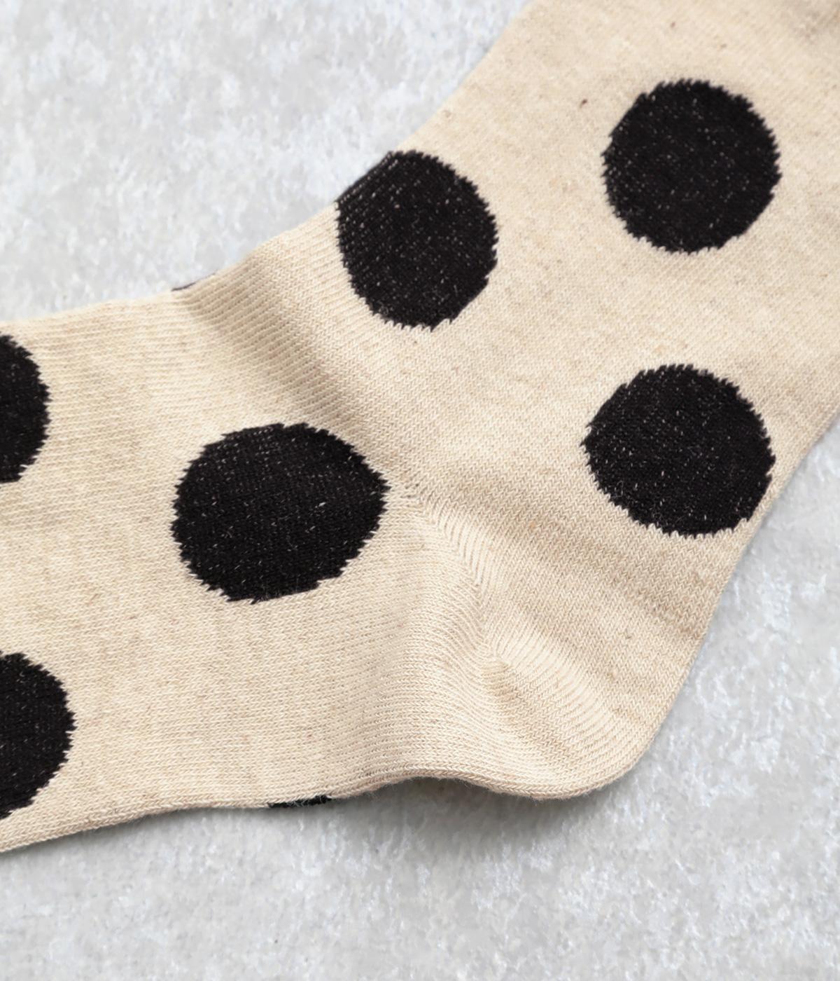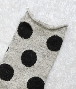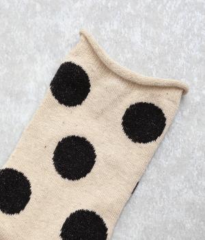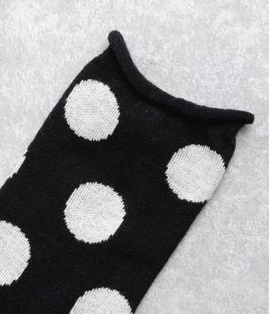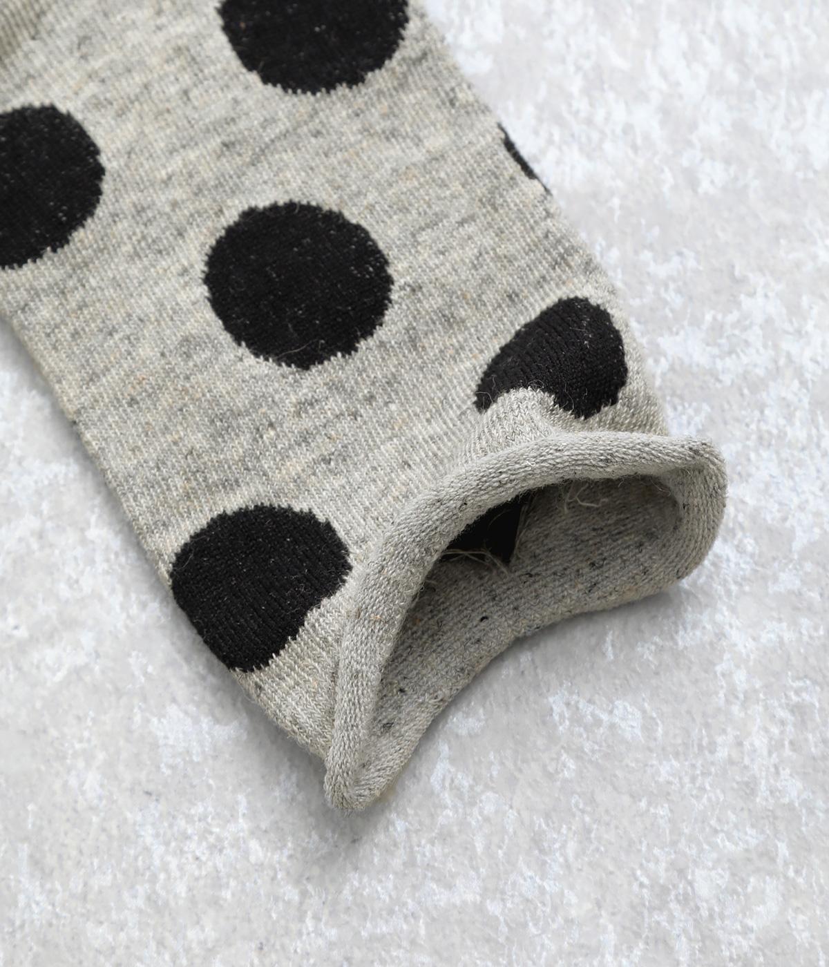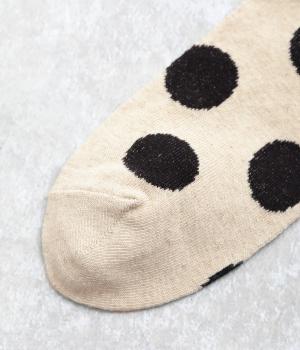 オリジナルの大きめドットを全体にほどこし、ポップ&レトロな雰囲気に仕立てました。落ち着いた配色でデイリースタイルに取り入れやすく、足元からちらりとのぞいてさり気なくワンポイントになります。