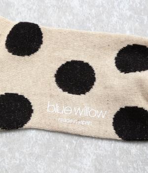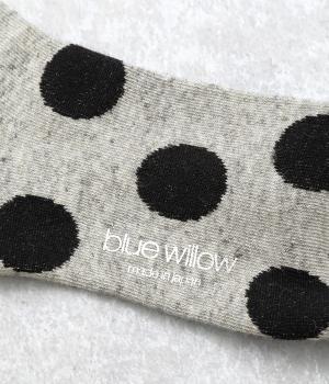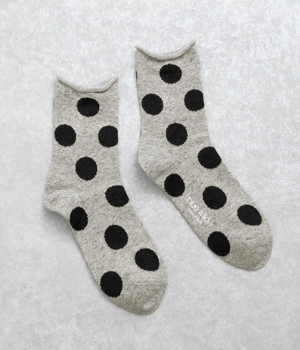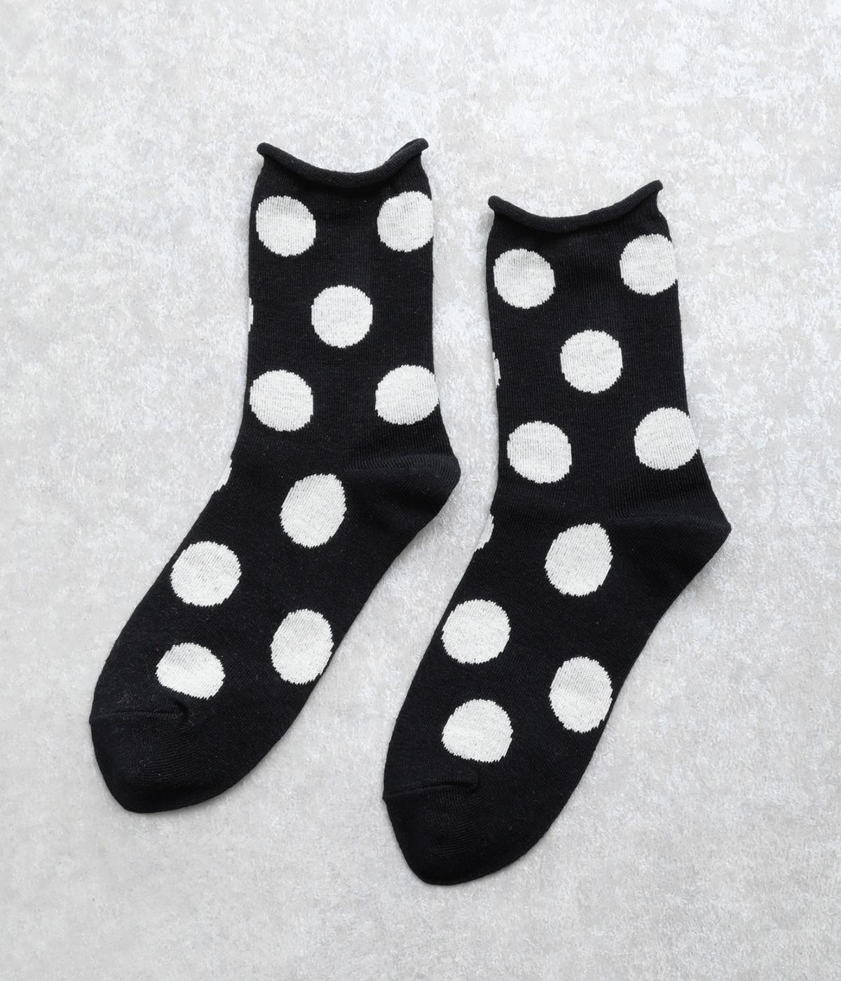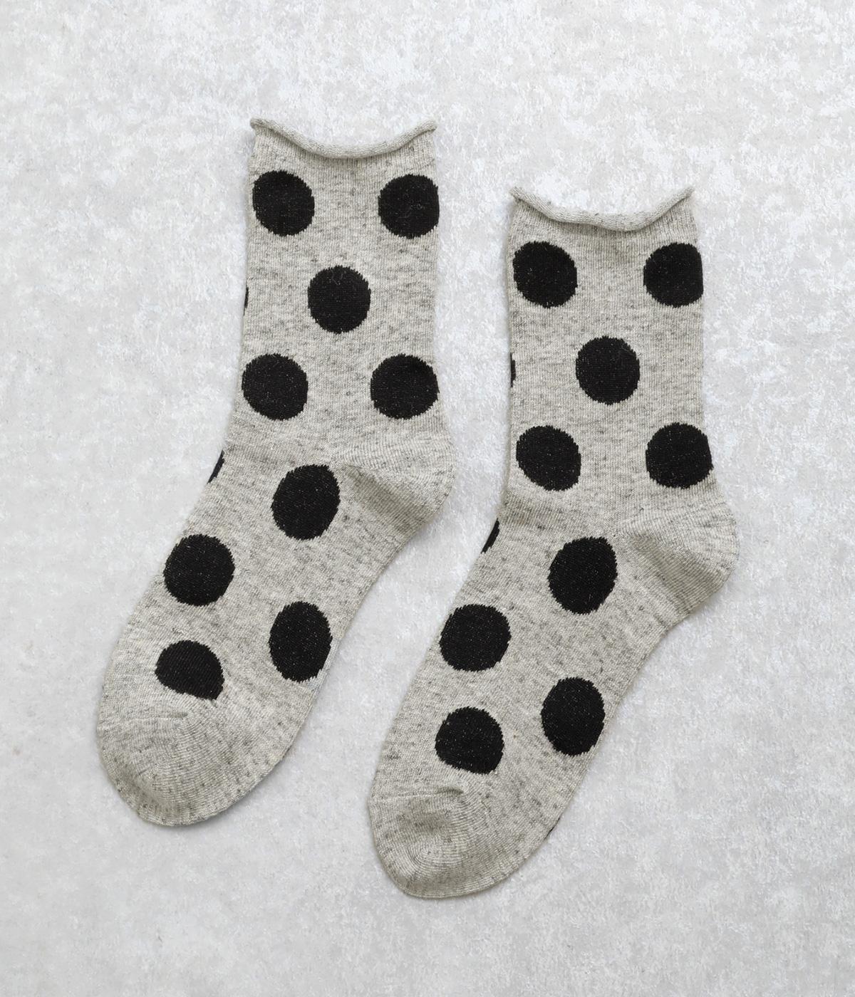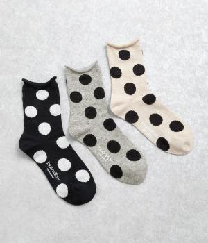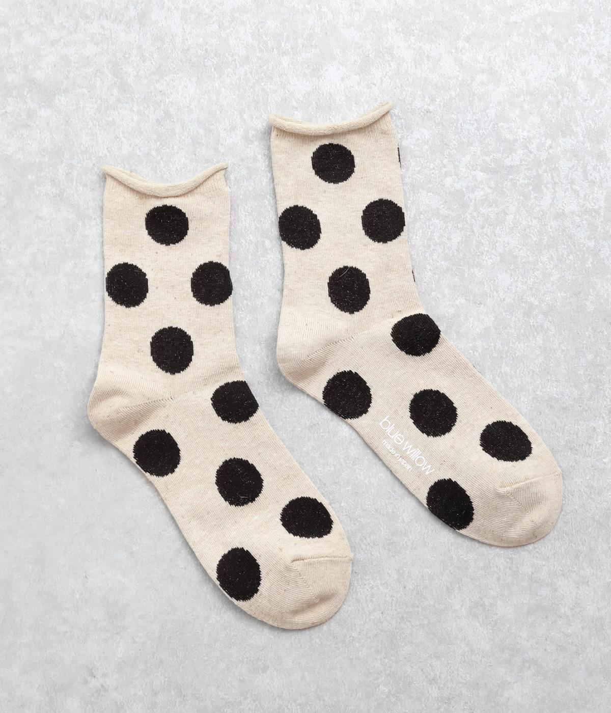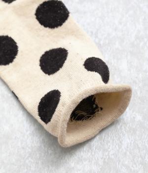 オリジナルの大きめドットを全体にほどこし、ポップ&レトロな雰囲気に仕立てました。落ち着いた配色でデイリースタイルに取り入れやすく、足元からちらりとのぞいてさり気なくワンポイントになります。