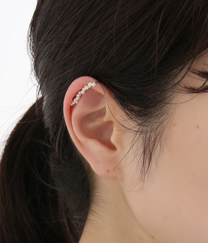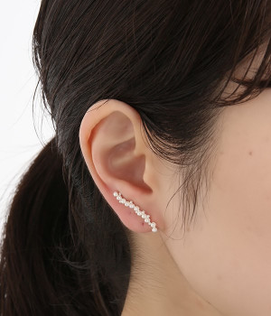 耳に下がるタイプ、耳に沿うタイプ、イヤーカフの3パターンのアレンジが楽しめるピアスです。月明かりのようなふんわりとしたメタルの品の良い華やかな輝きと、繊細なモチーフが耳元を上品に飾ります。デイリーにはもちろん、パーティーシーンなどよそいきスタイルにも対応できます。金属アレルギーが出にくいニッケルフリーで、お肌に優しい作りに。