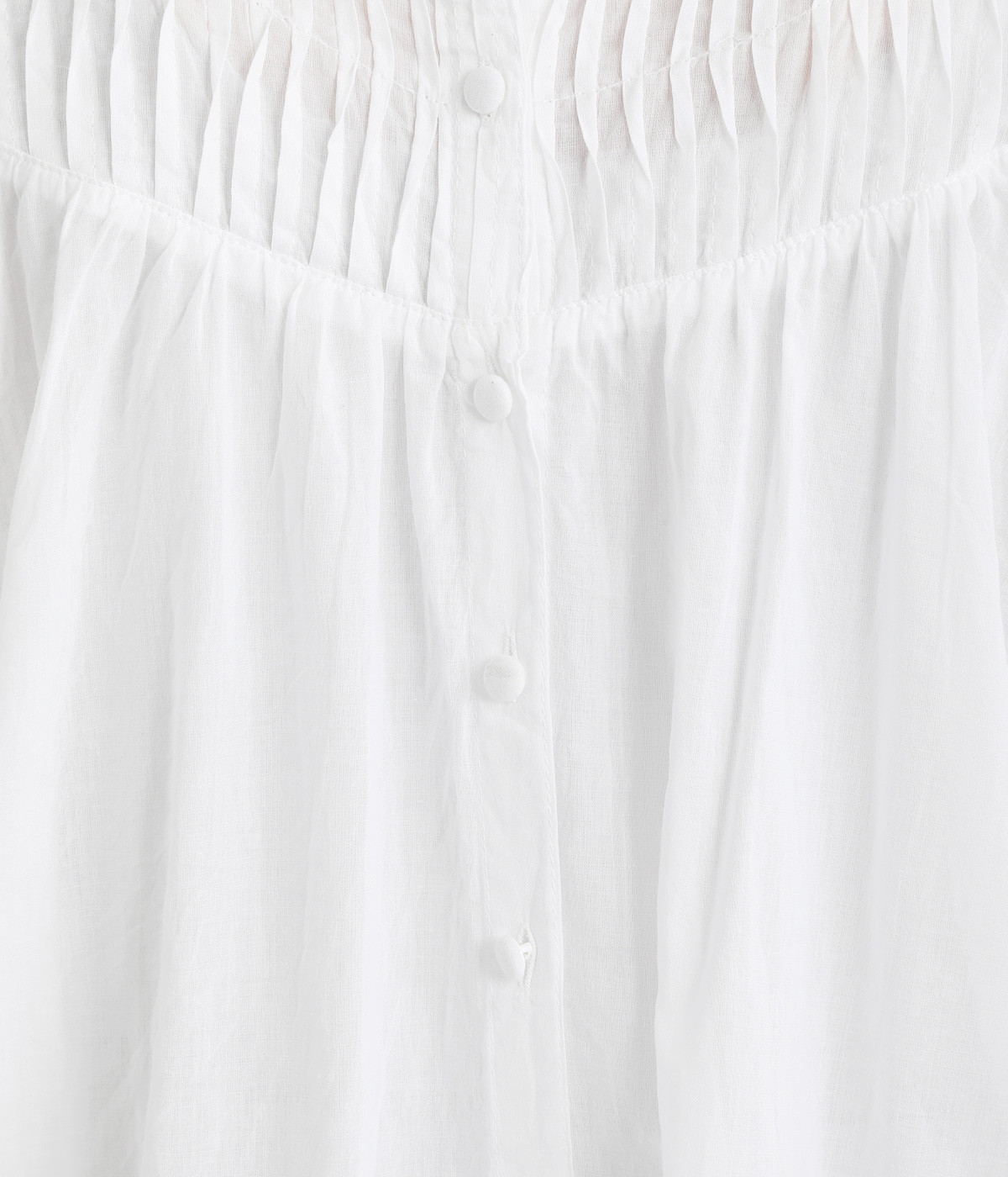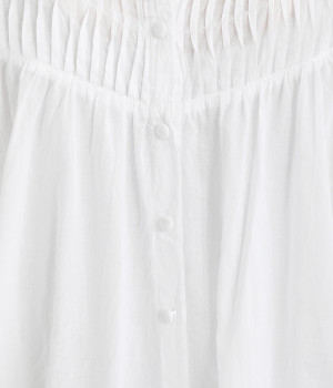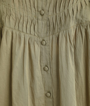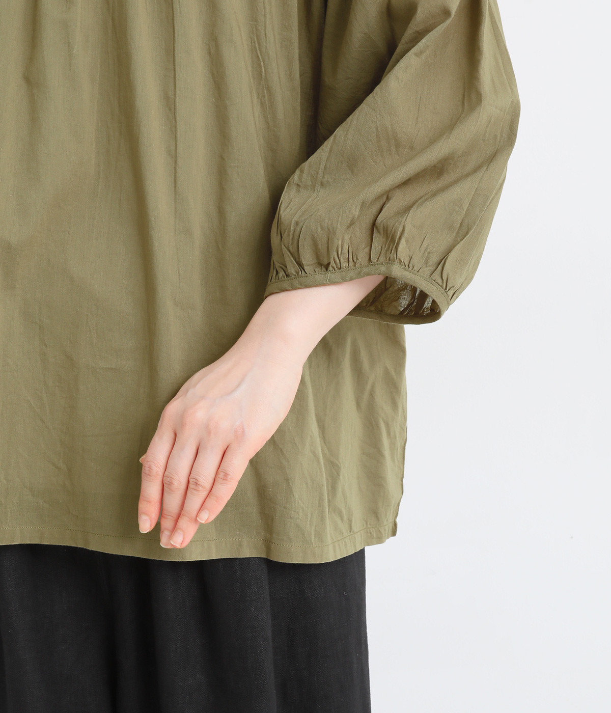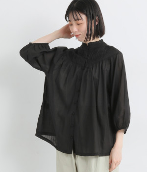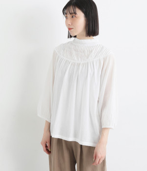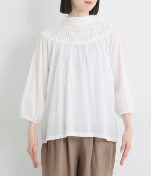 薄手に作られ、ふわりと風をはらむような軽い着心地のコットンボイル生地を使用。肌にやさしく触れ、ナチュラルな風合いを堪能できます。ほのかな透け感も品のよさを演出。