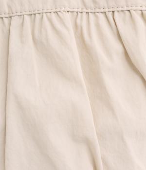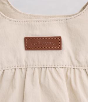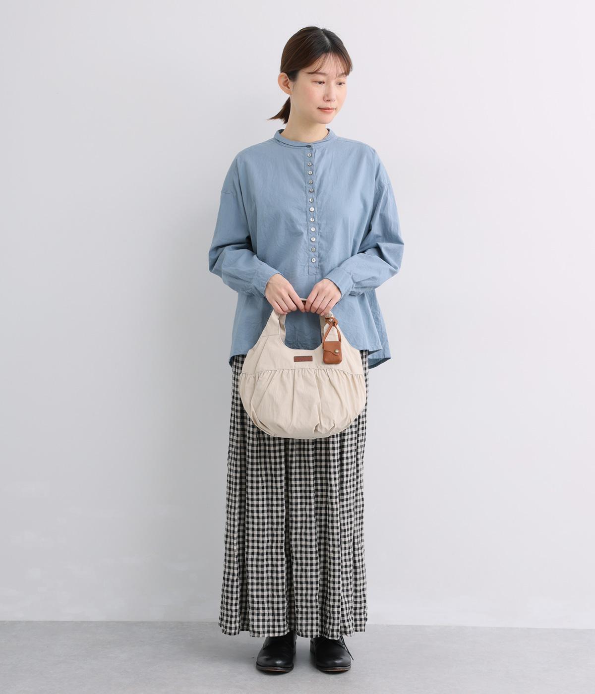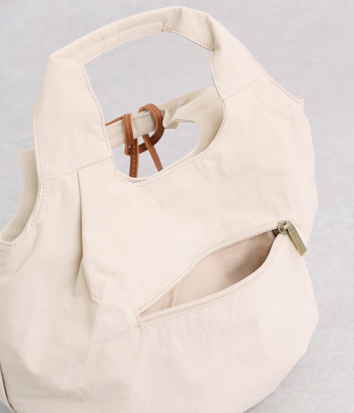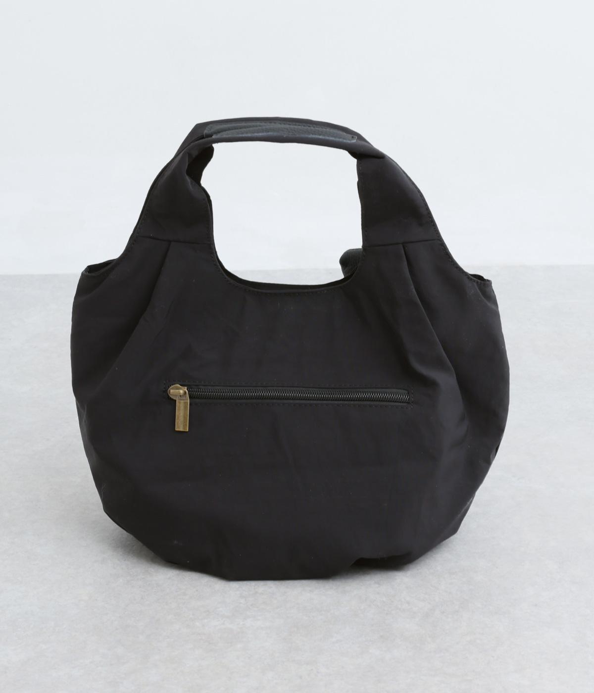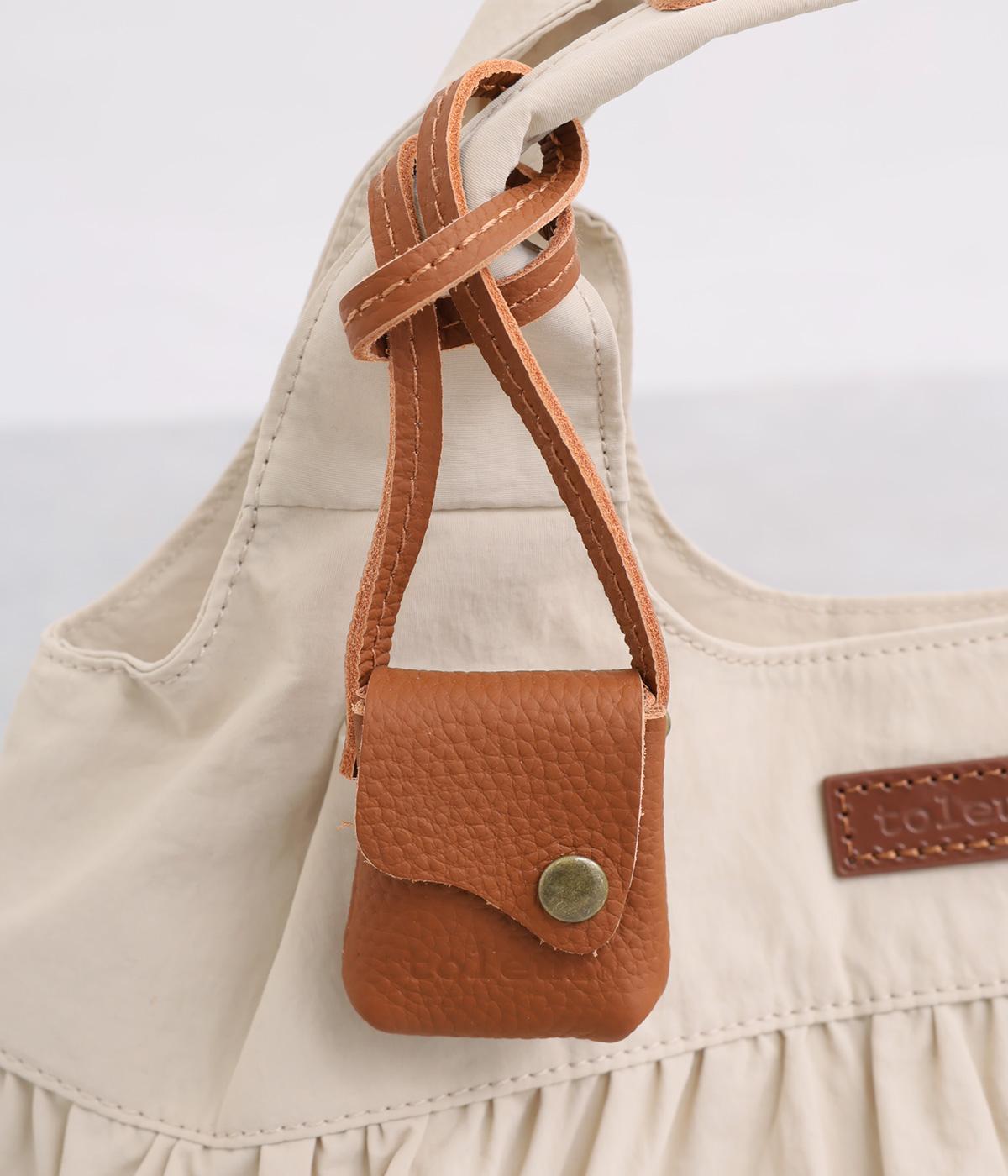 カジュアルな雰囲気のナイロン素材にギャザーを寄せて大人らしい表情に仕上げました。やや大きめなサイズ感に内外にポケットを配して抜群の収納力。コロンとしたフォルムで、手持ちでも肘にかけても愛らしいアクセントになります。かわいらしく揺れるミニレザーポーチ付きです。