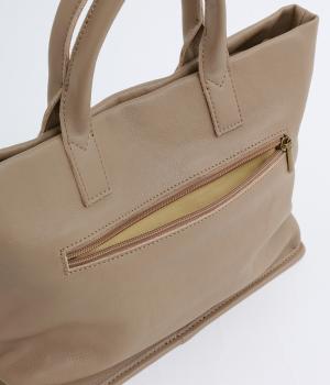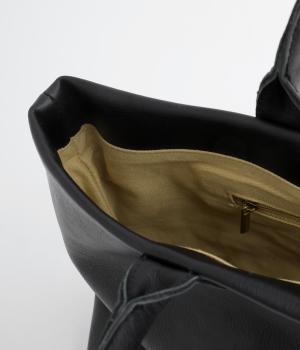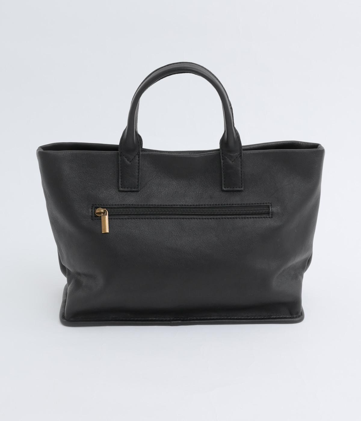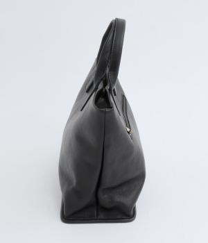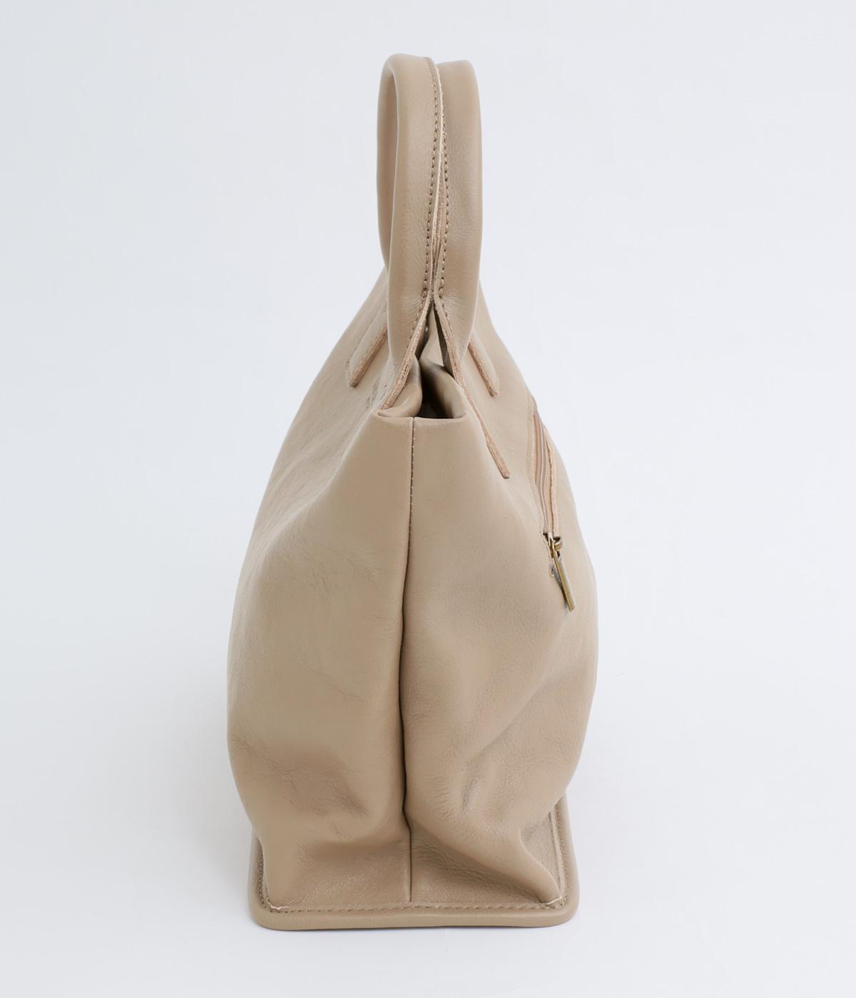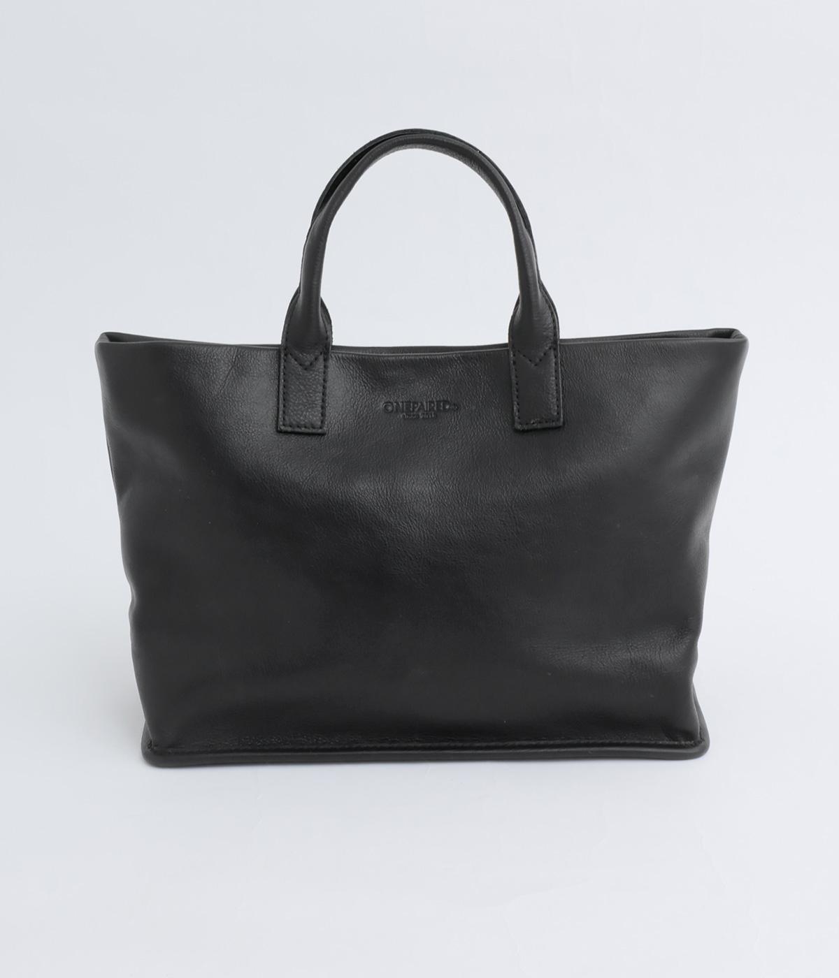 横広で収納力抜群のサイズ感です。内外にファスナー付きのポケットを配しました。しっかりしたマチがフォルムをきれいにキープします。上質な素材を引き立てるシンプルな型で、どんなスタイルにもマッチします。