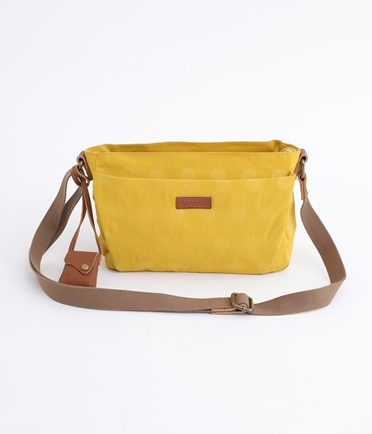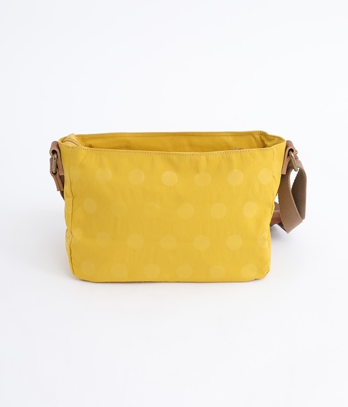 シャカシャカとした軽やかな素材とエンボスで表現したさりげないドット柄が素敵なミニショルダーバッグです。底部分にタックをとることで立体的で優しい印象に仕上げました。ところどころにレザーパーツを使用した品の良いあしらいもポイント。持っていることを忘れそうな軽さも魅力です。ショルダー部分は長さ調節が可能。
