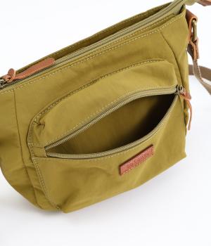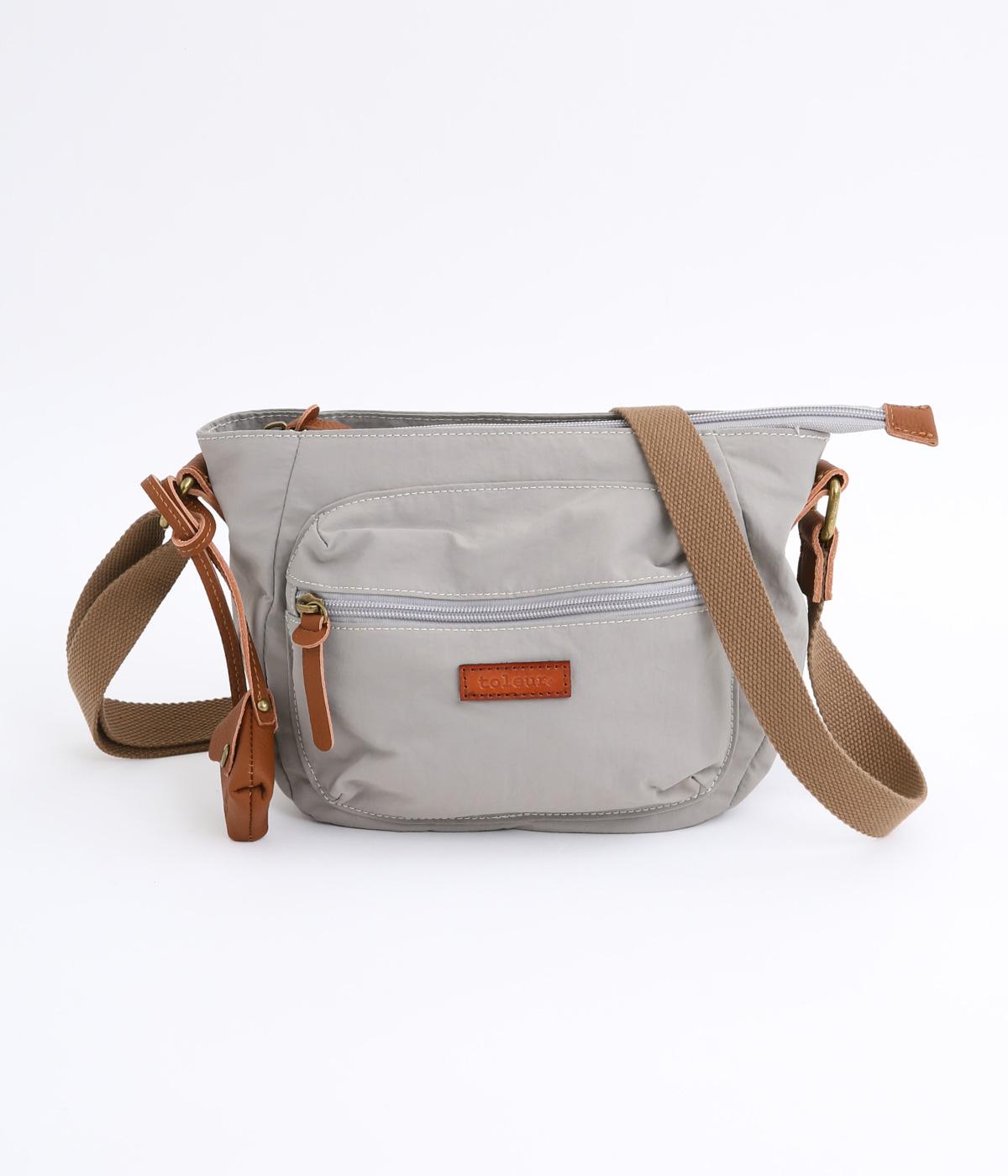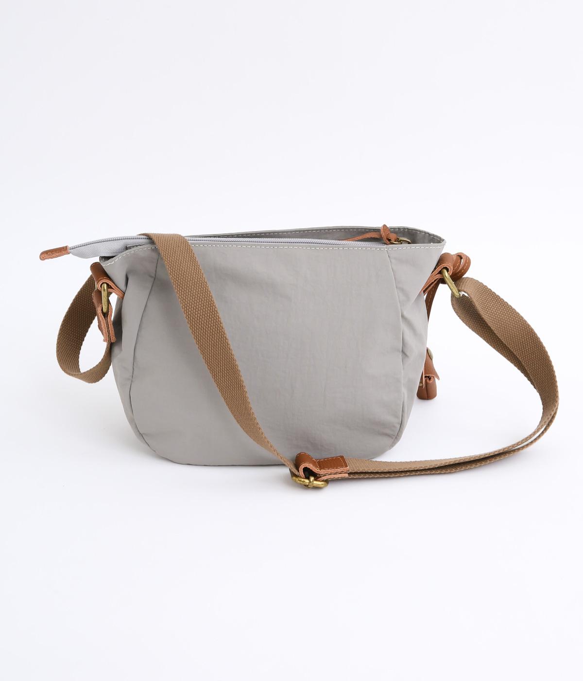 バッグ下部にまるみをつけたやわらかな雰囲気がポイントのショルダーバッグです。すぐに取り出したい小物の収納に便利なファスナーポケットを前面に配置しています。荷物が多いときのサブバッグとしても活躍。