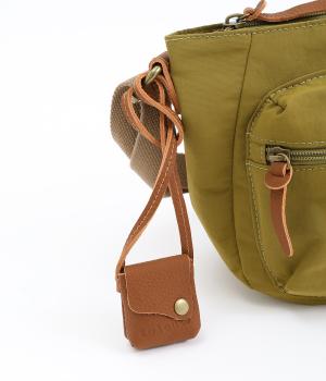 こなれ感を演出してくれる、うっすらと入ったシワが特徴的な撥水ナイロン生地を使用しました。随所に高級感のある本革をポイント使いしています。