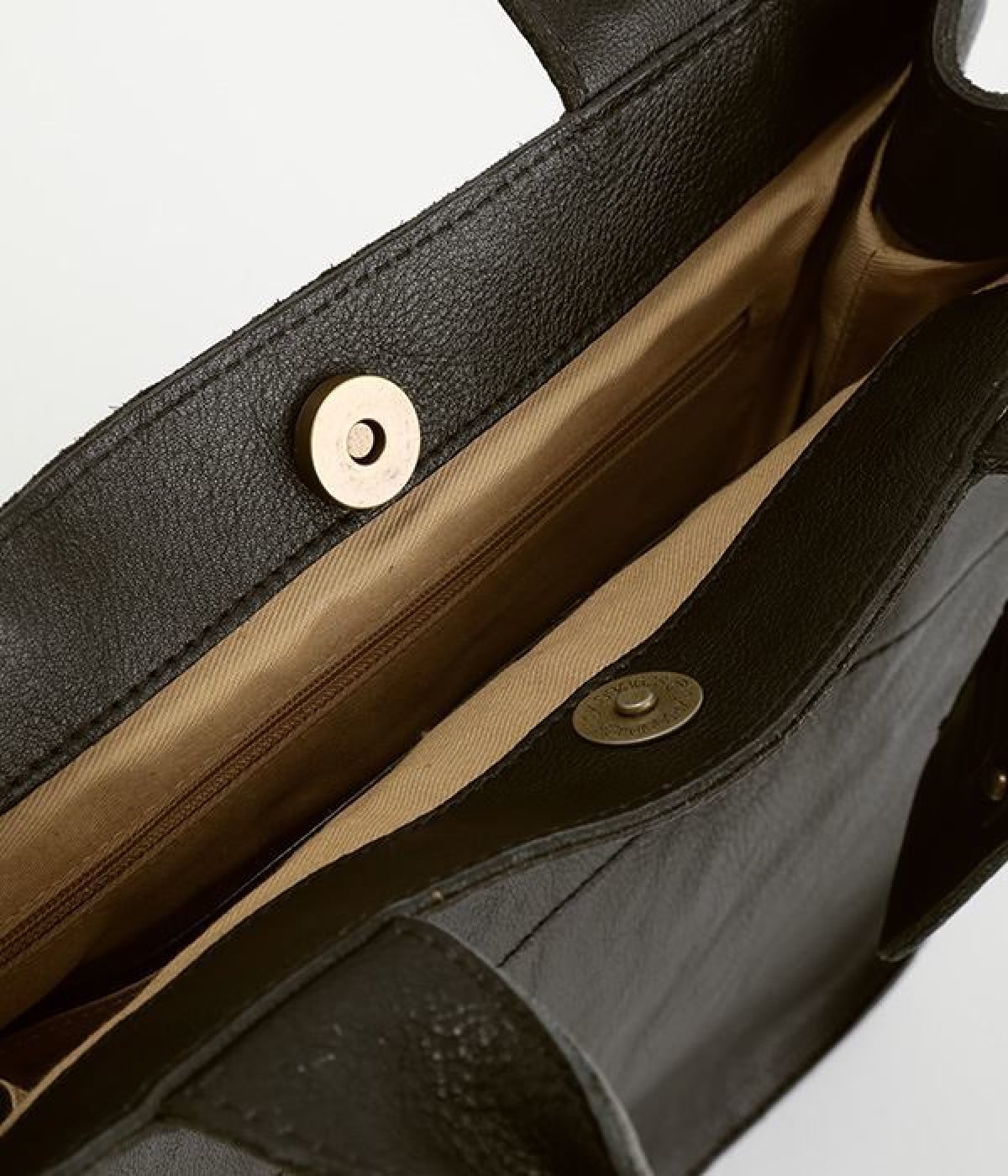 小さく見えてA4サイズの書類やファイルがぴったりと収まるのが特徴のトートバッグ。内部には複数のポケットが備わり、整理整頓も得意です。中身を取り出しやすい広々とした間口には、安心のマグネットボタンつき。ややラウンドさせたスクエア型でキリッとしすぎず、気軽に持ち歩きやすい一品です。