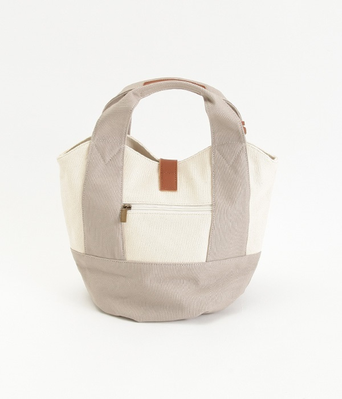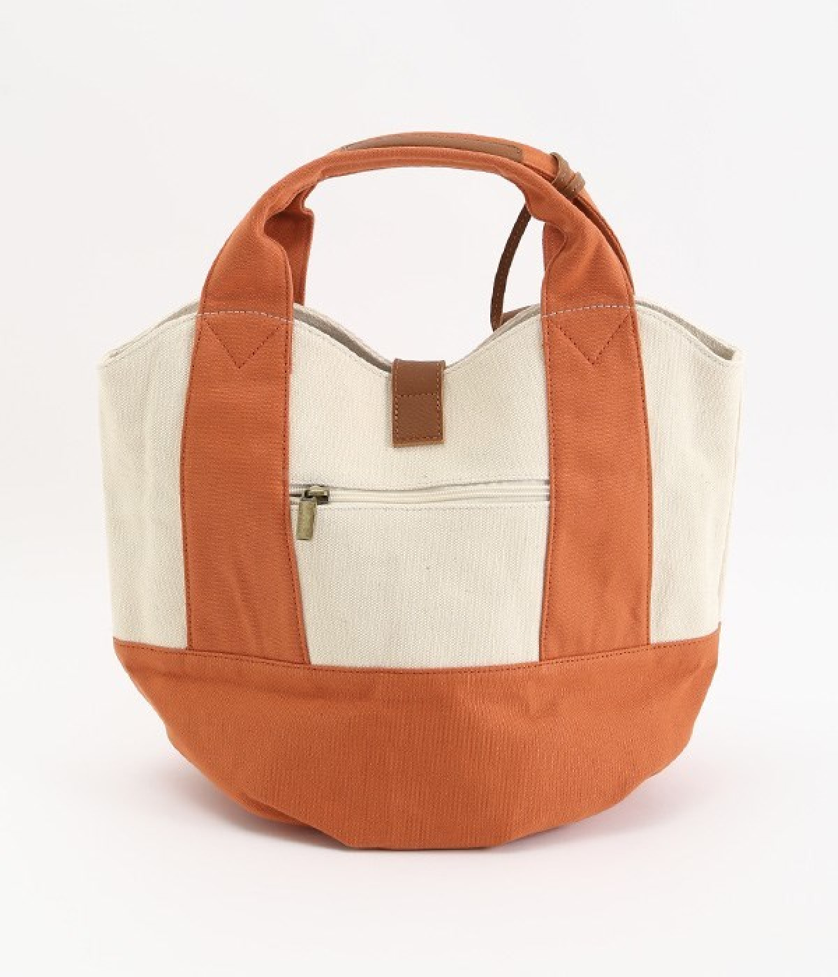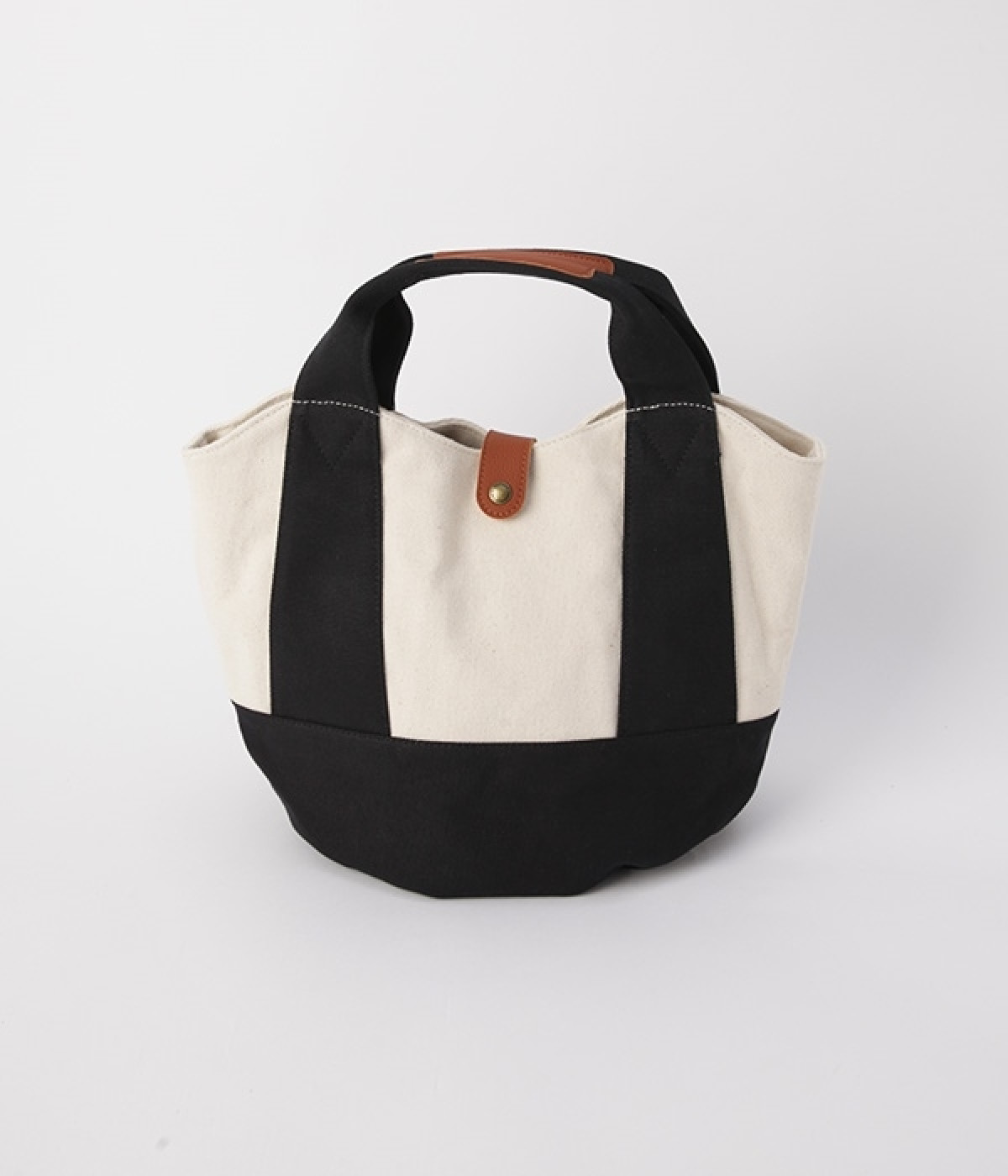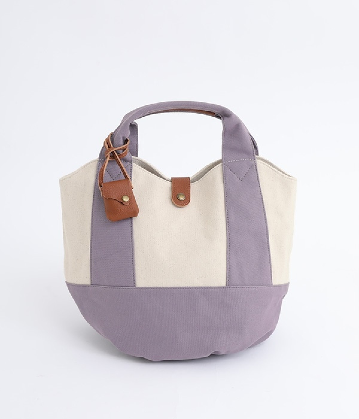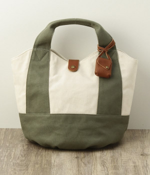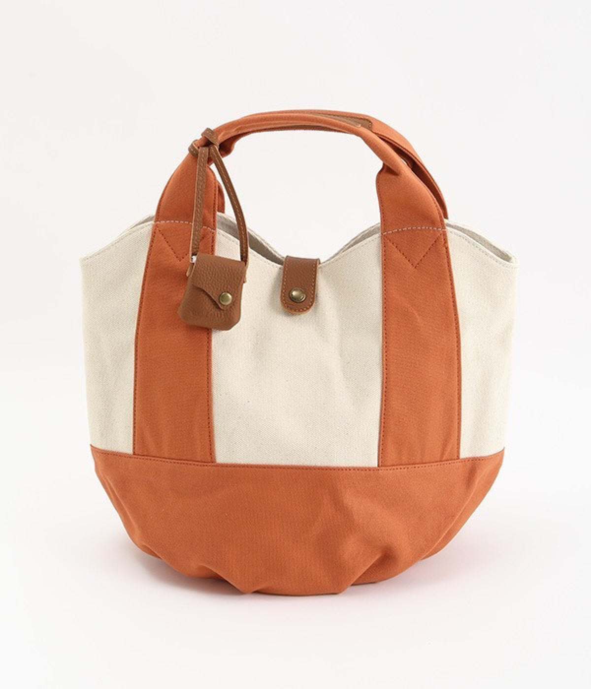 定番のキャンバス地トートバッグです。波打ったデザインの開閉口に、底板がタックの寄った丸みのある形で容量もたっぷり。内ポケットが充実していて使い勝手は抜群です。レザーのベルトボタンが大人らしいアクセントになっています。配色デザインもカジュアルで、デイリーに活躍するアイテムです。