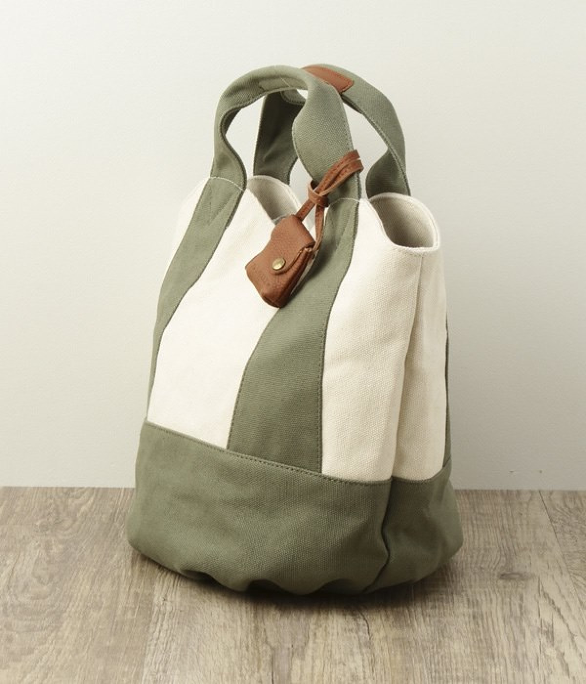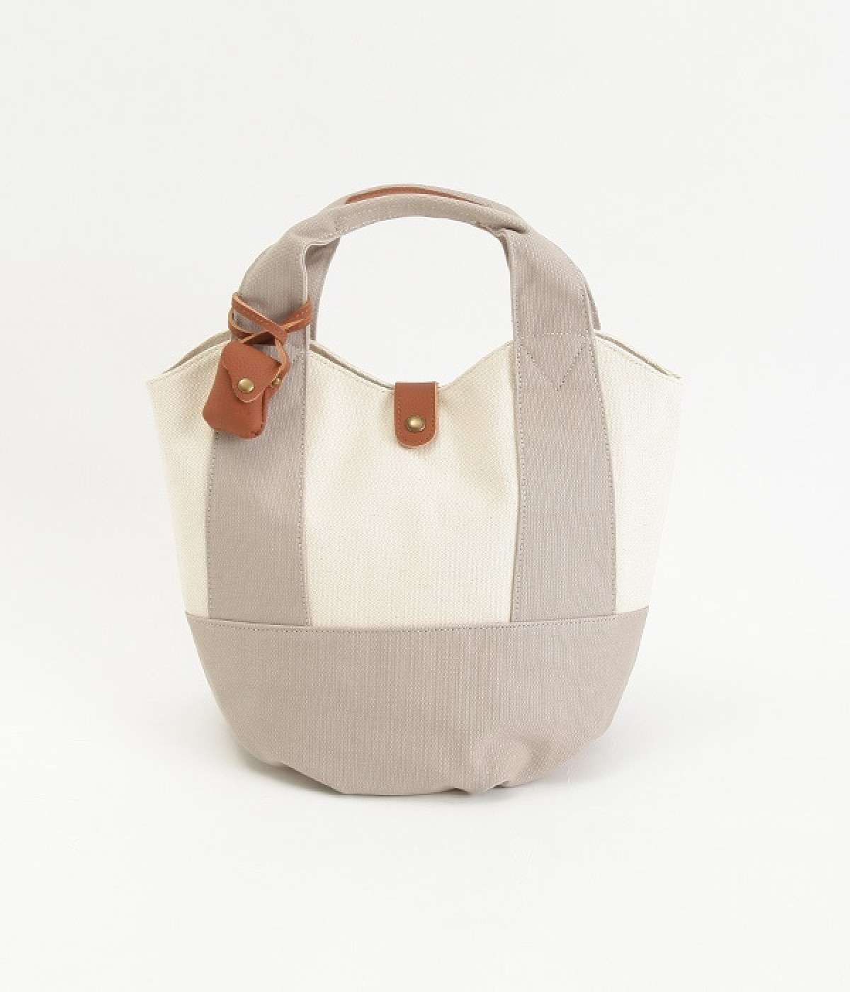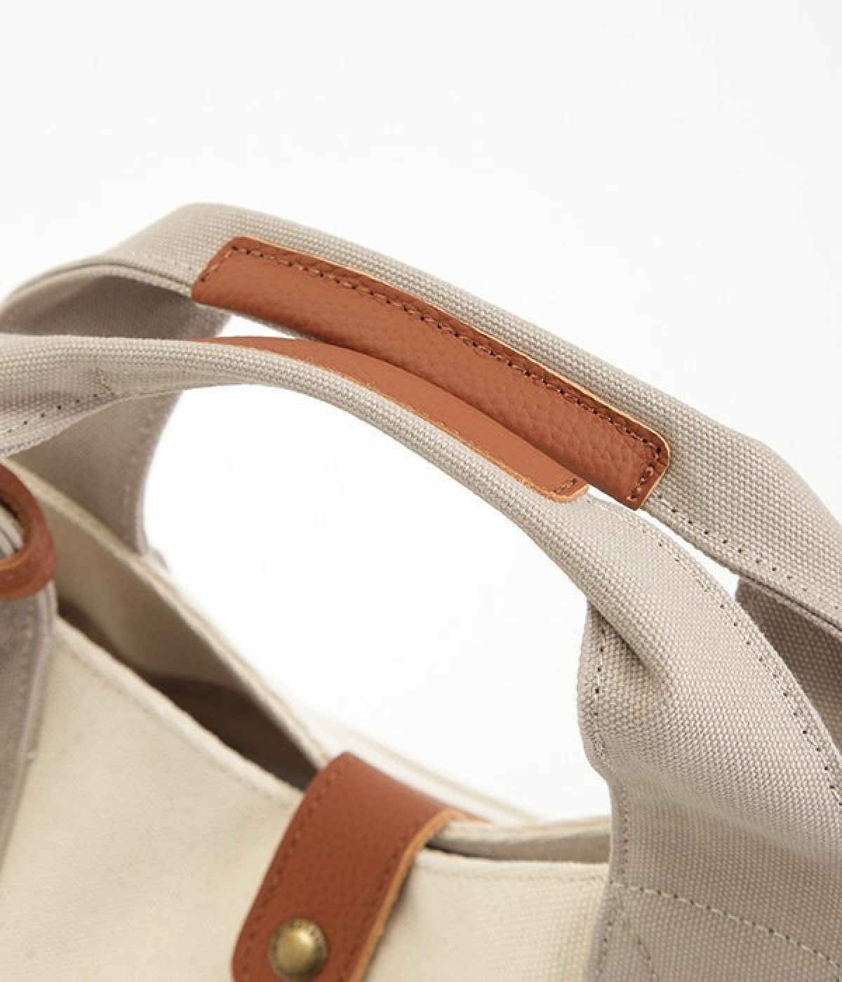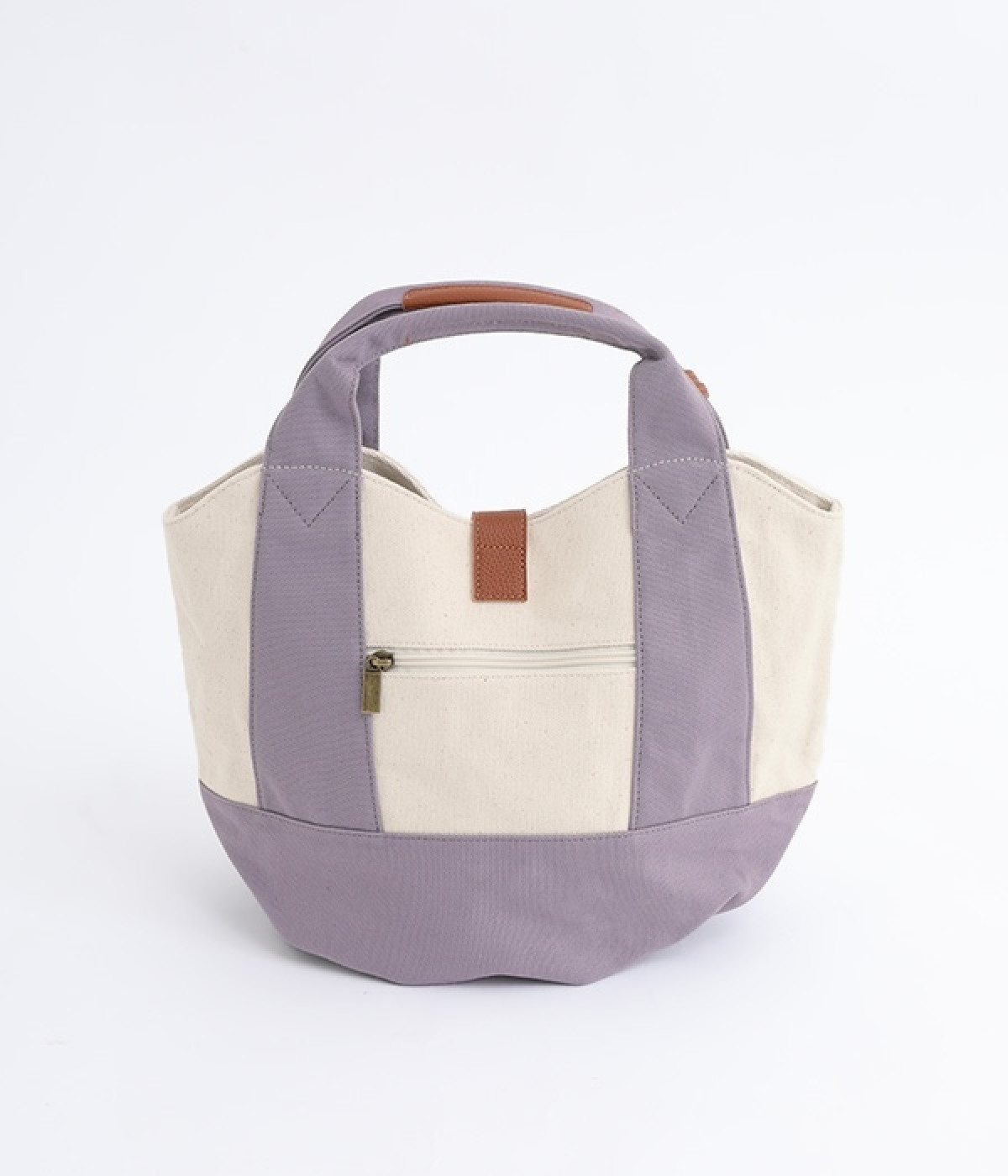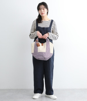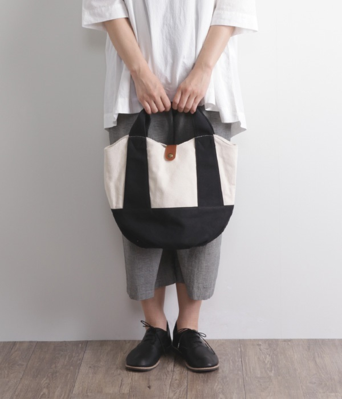 定番のキャンバス地トートバッグです。波打ったデザインの開閉口に、底板がタックの寄った丸みのある形で容量もたっぷり。内ポケットが充実していて使い勝手は抜群です。レザーのベルトボタンが大人らしいアクセントになっています。配色デザインもカジュアルで、デイリーに活躍するアイテムです。