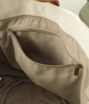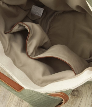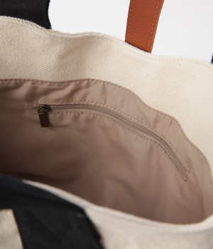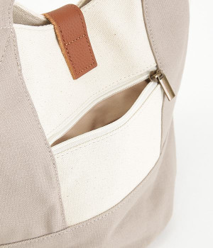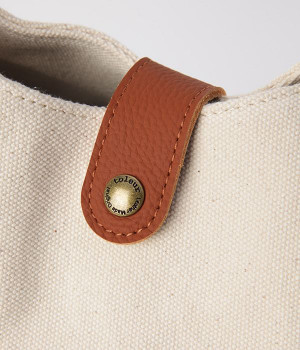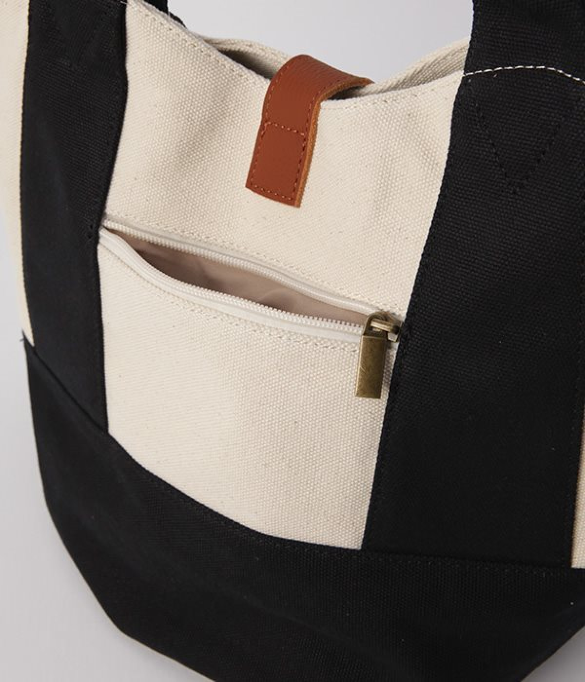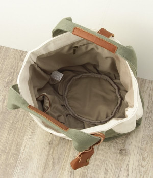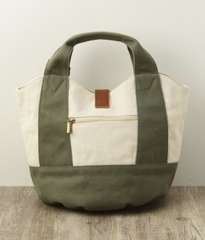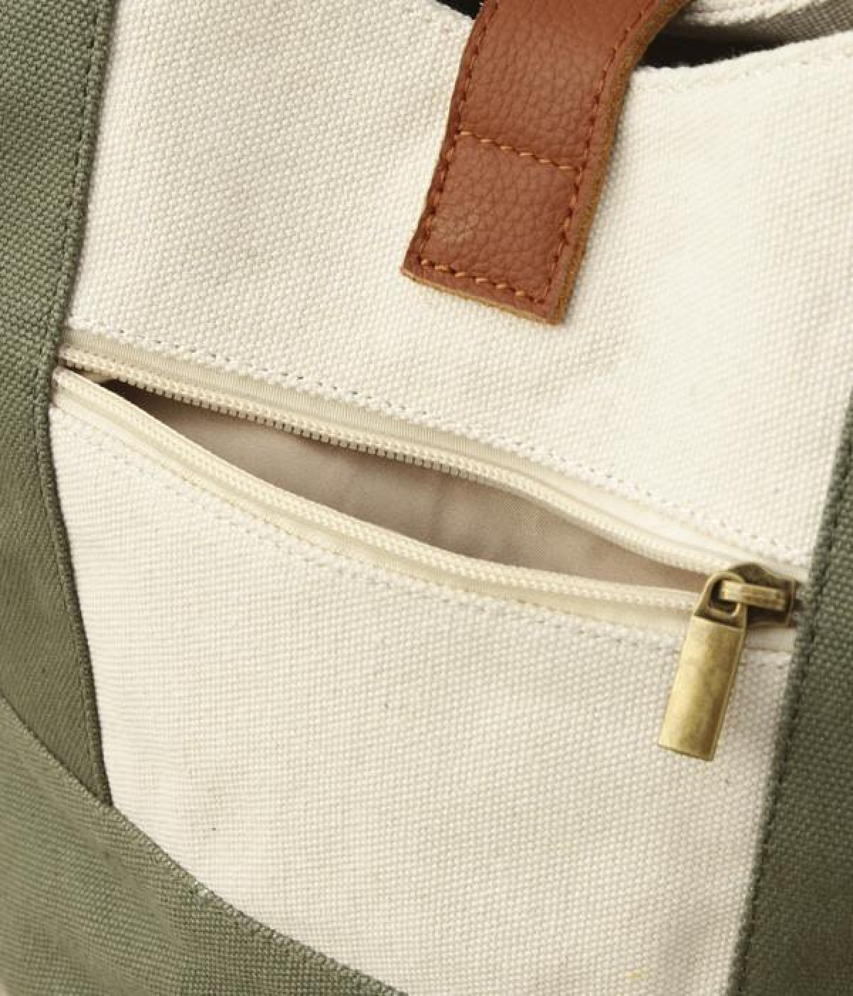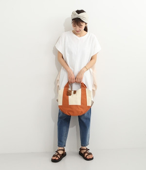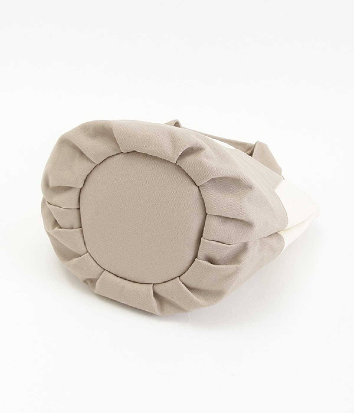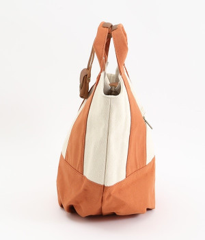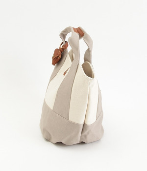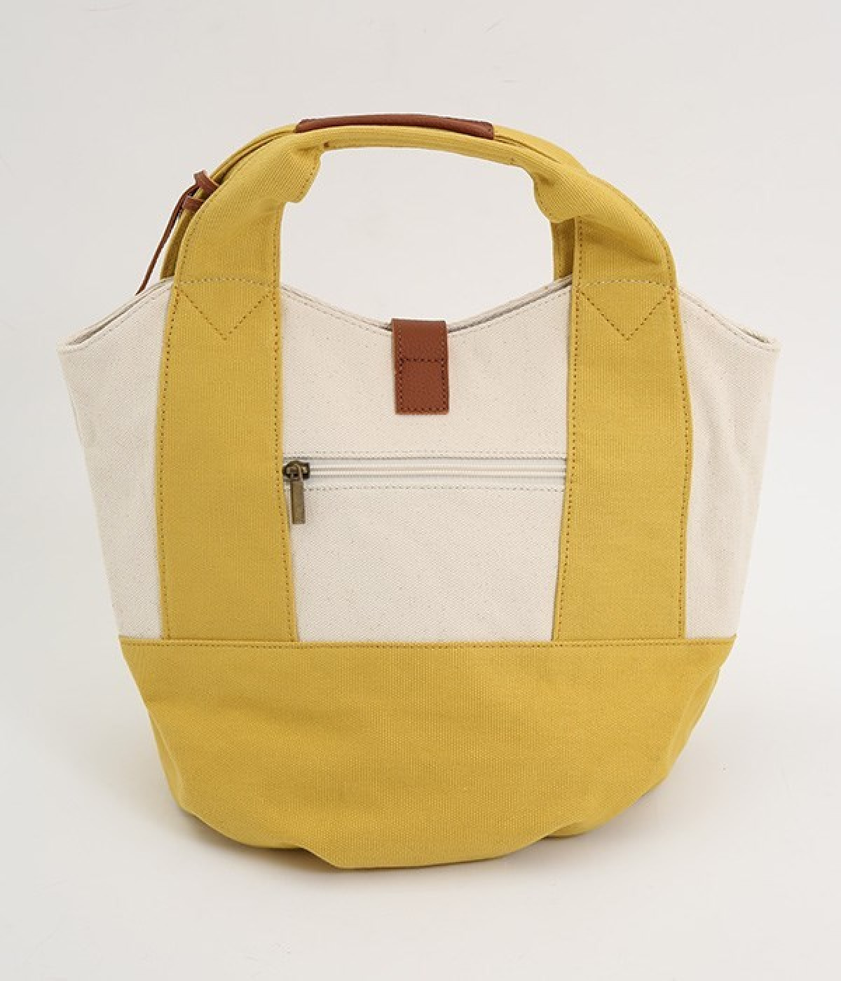 定番のキャンバス地トートバッグです。波打ったデザインの開閉口に、底板がタックの寄った丸みのある形で容量もたっぷり。内ポケットが充実していて使い勝手は抜群です。レザーのベルトボタンが大人らしいアクセントになっています。配色デザインもカジュアルで、デイリーに活躍するアイテムです。