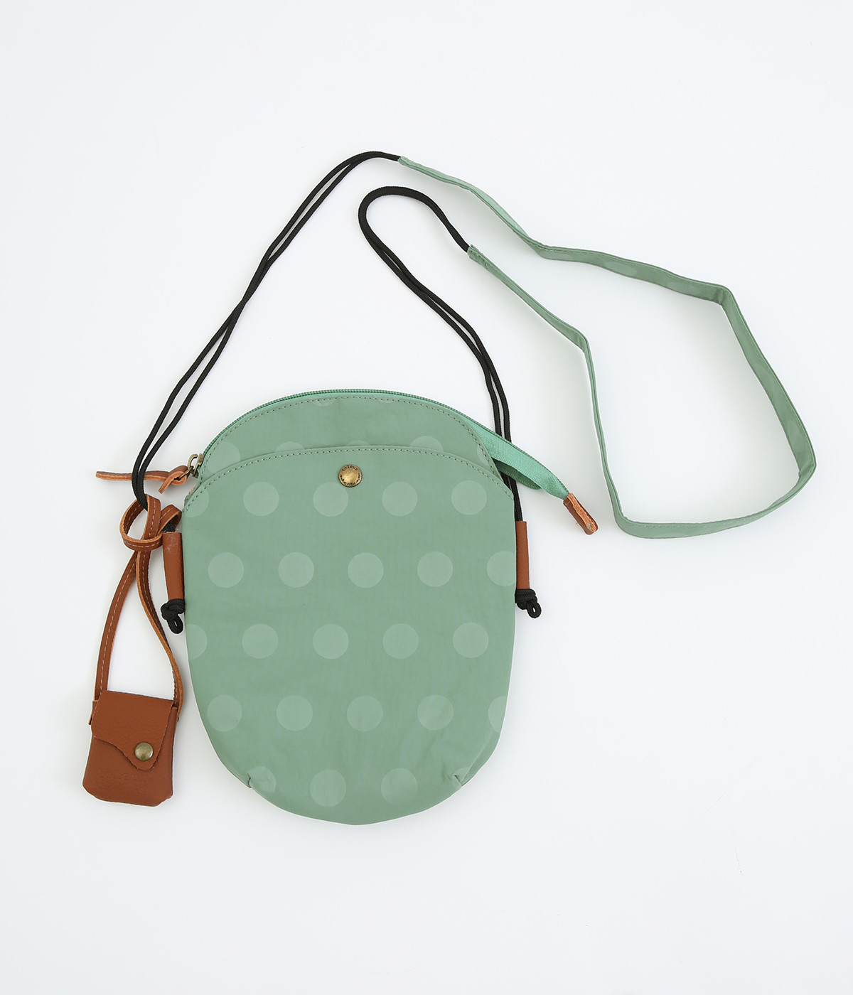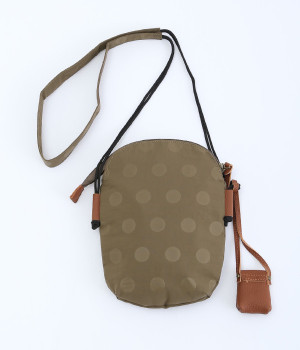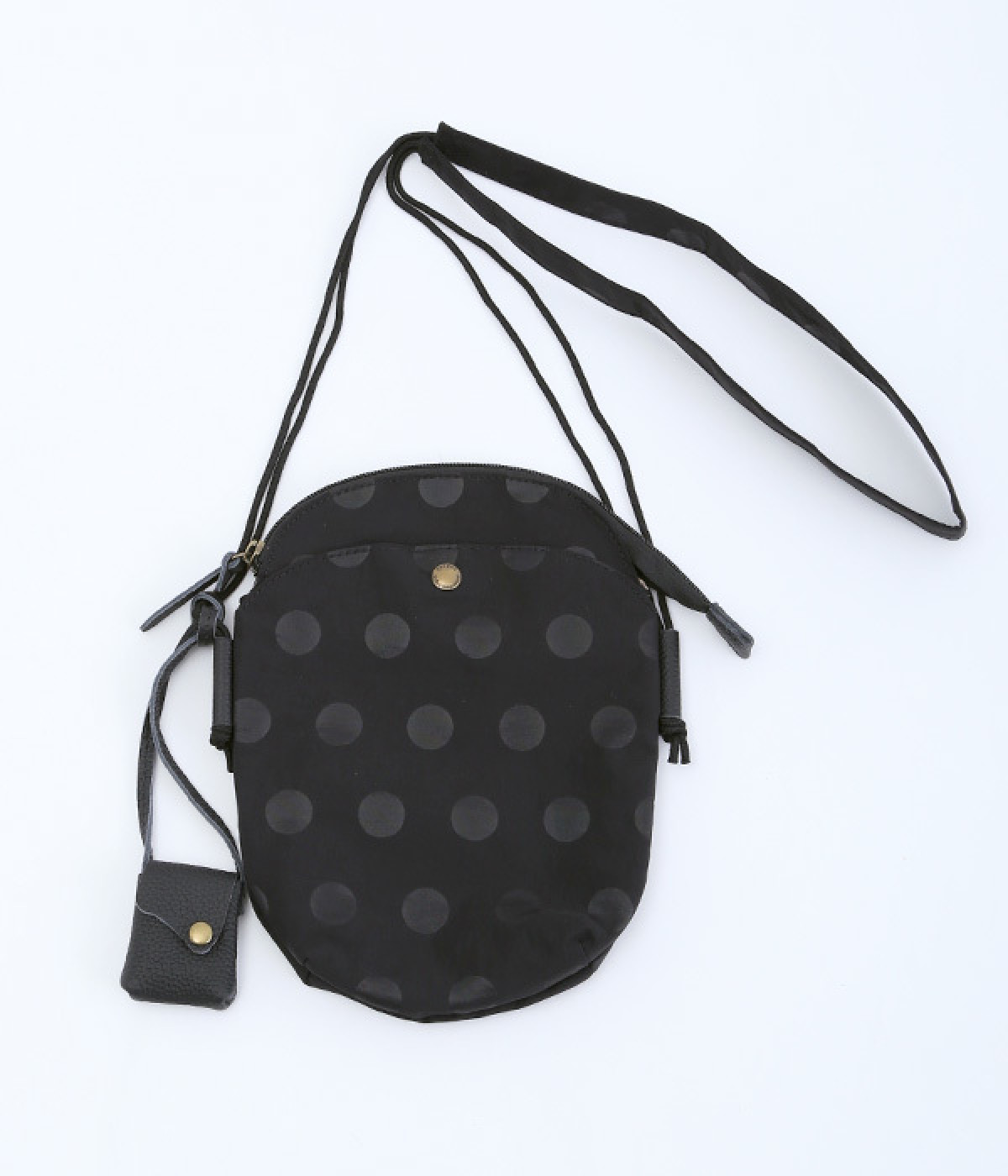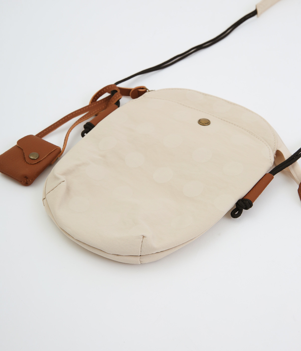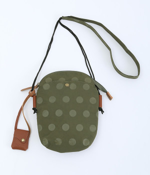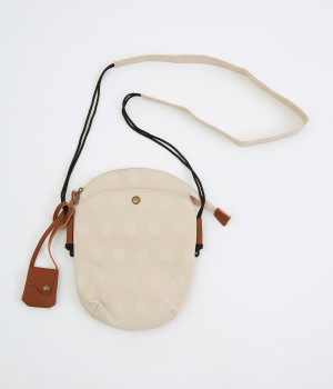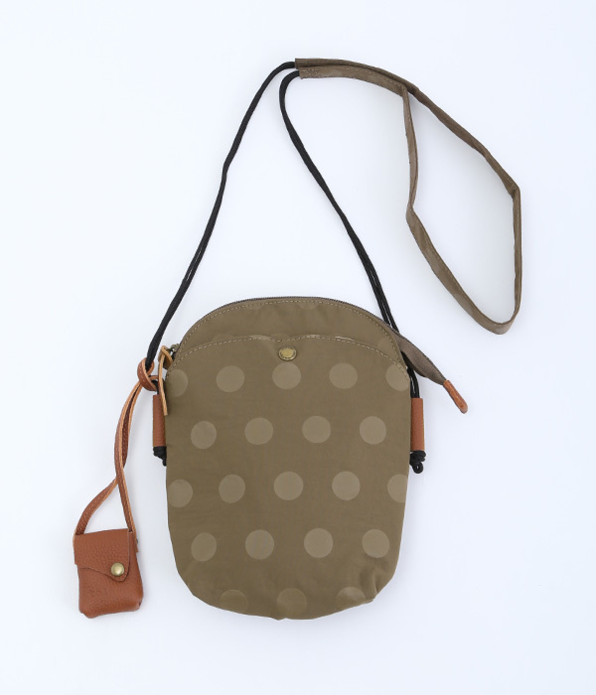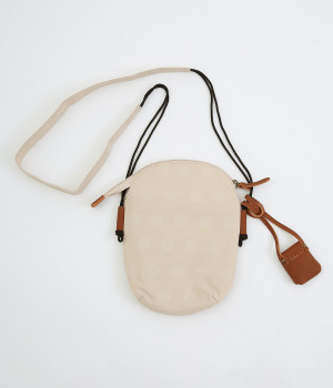 レザー仕立てのかわいらしいミニポーチがポイントに