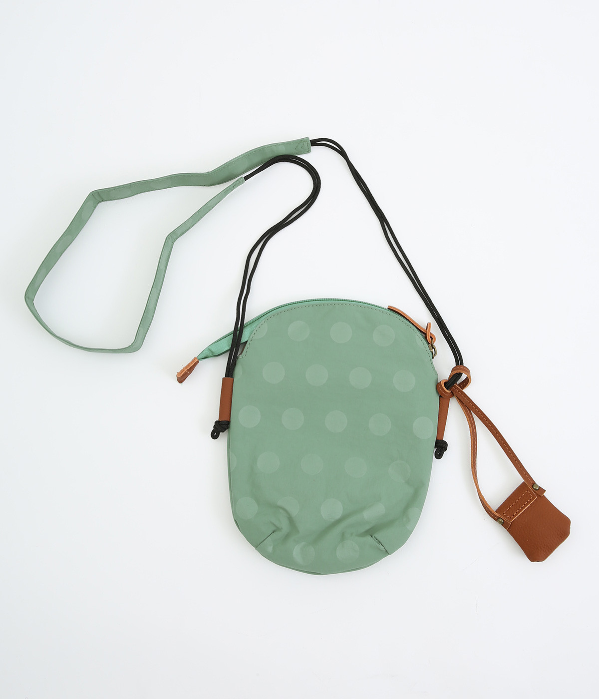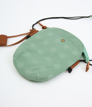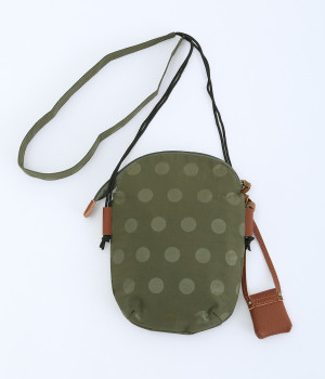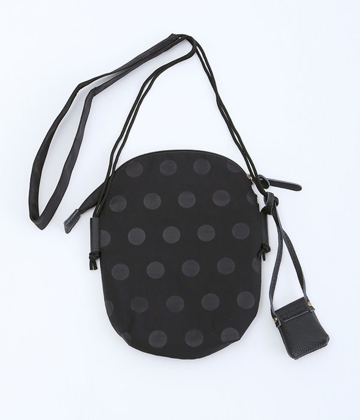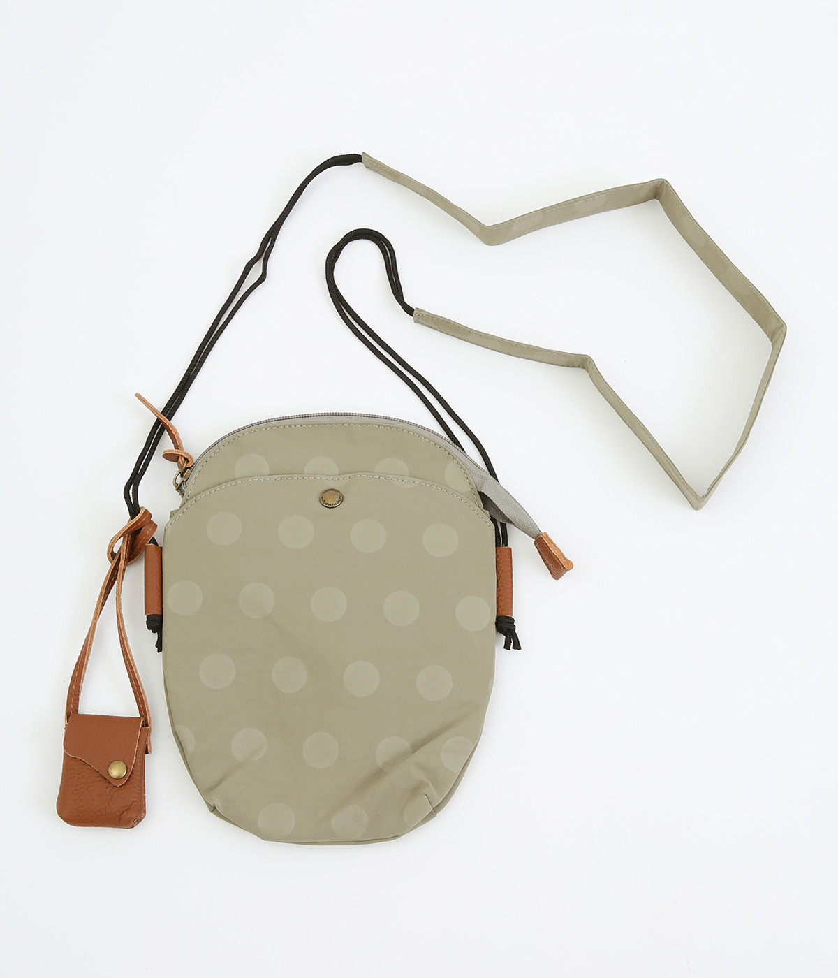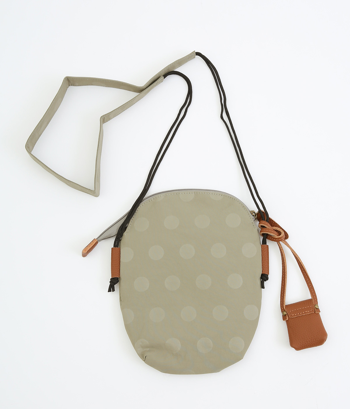 レザー仕立てのかわいらしいミニポーチがポイントに