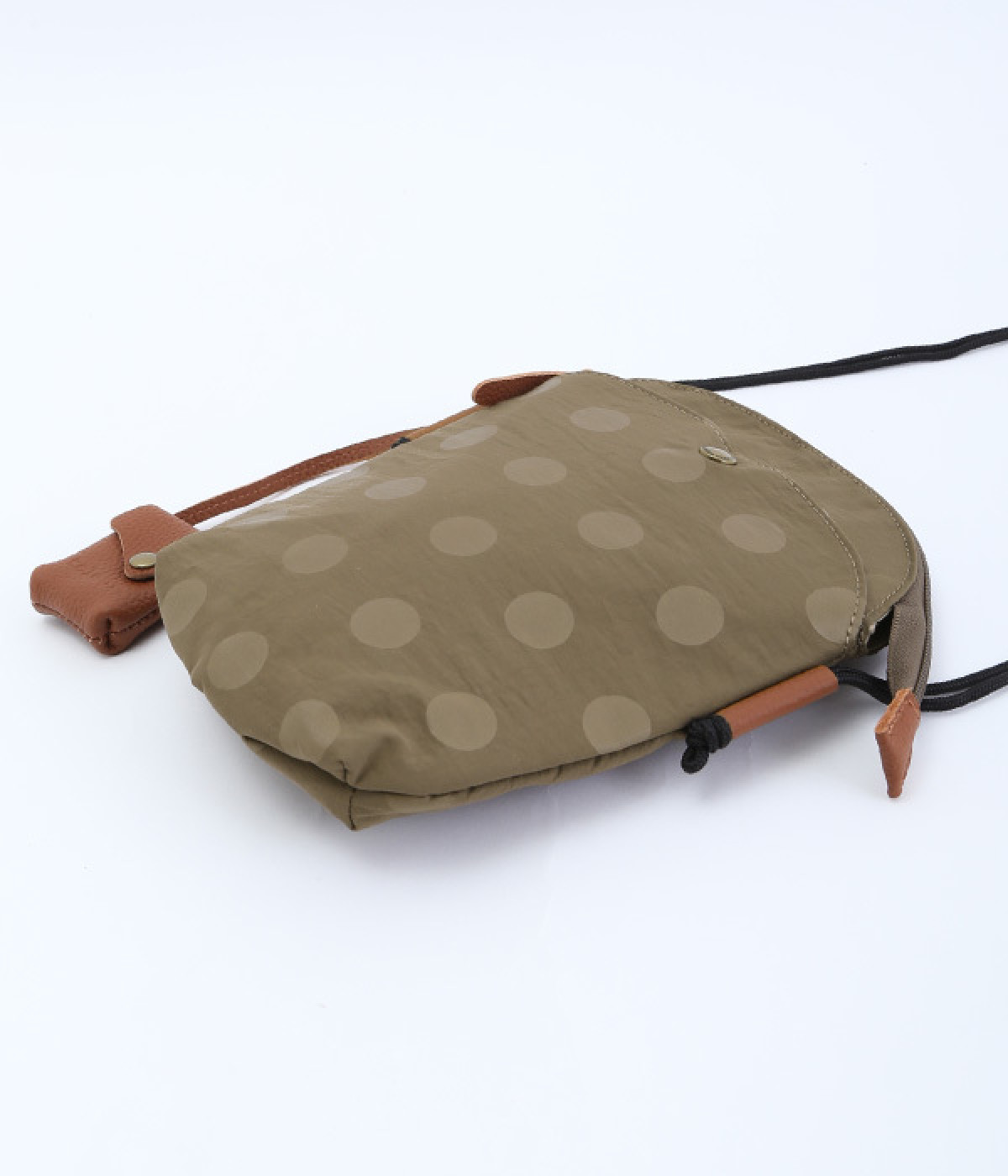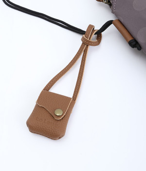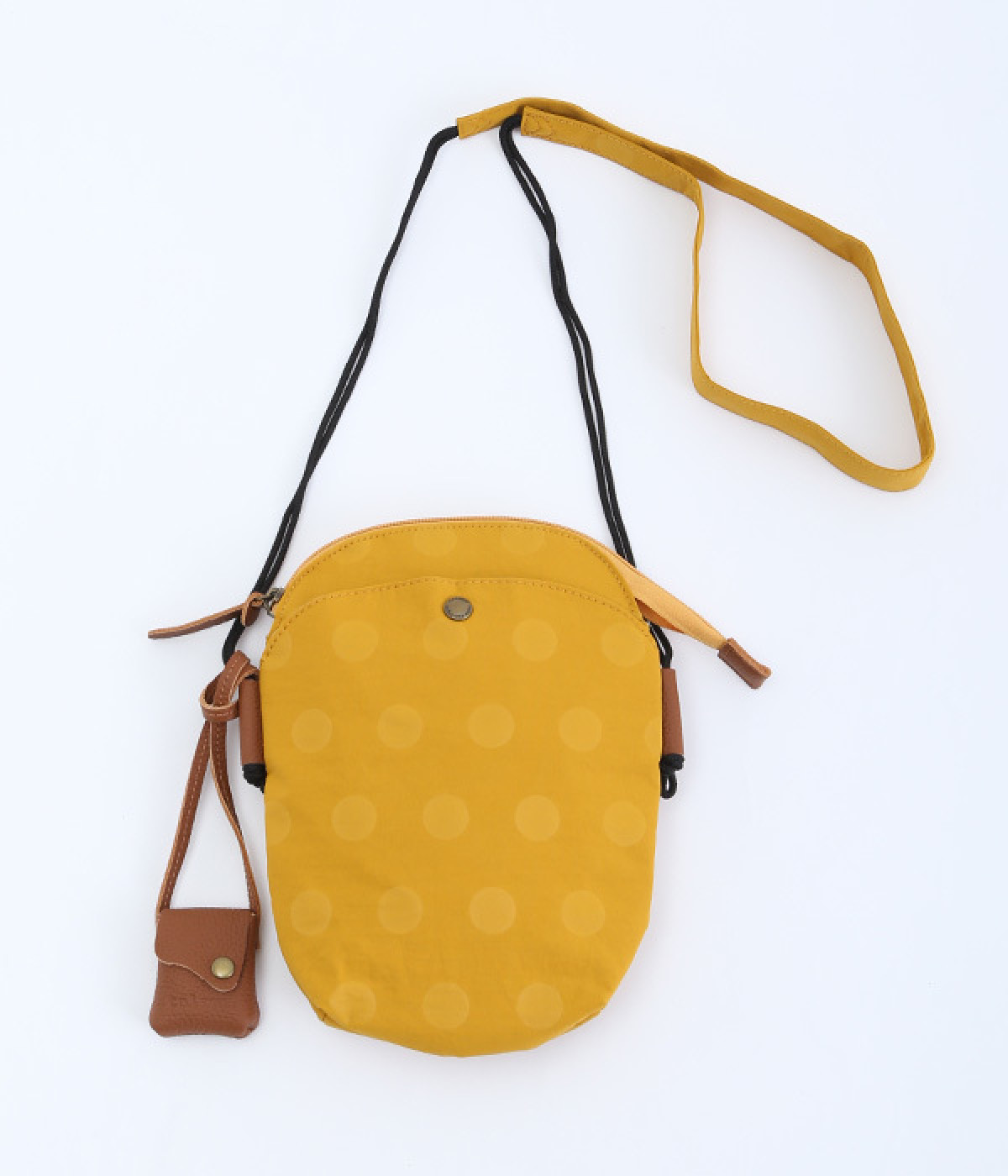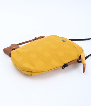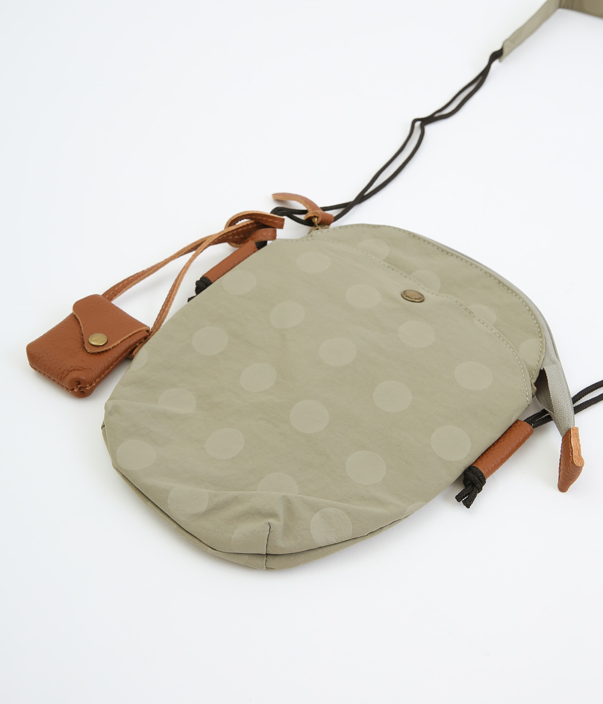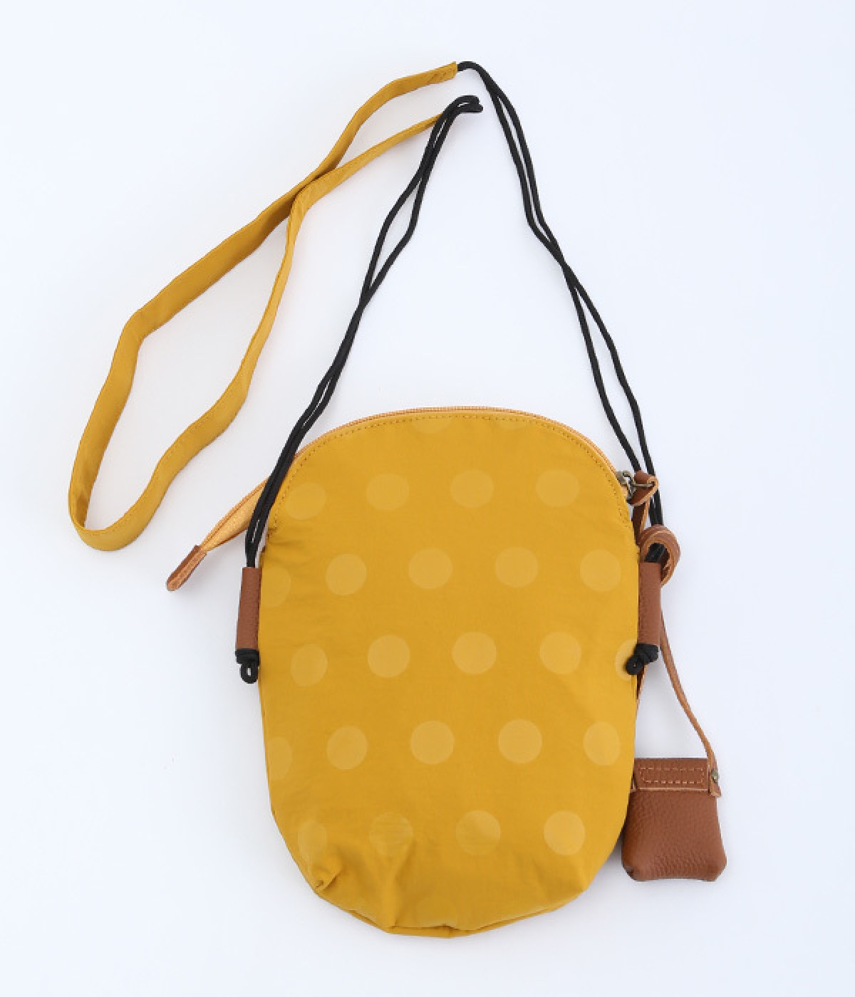 レザー仕立てのかわいらしいミニポーチがポイントに