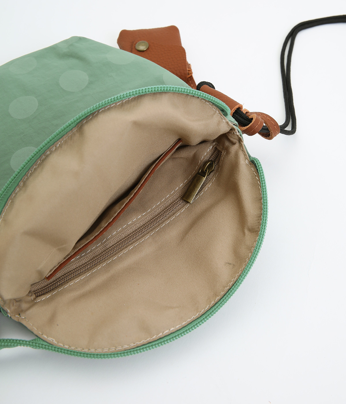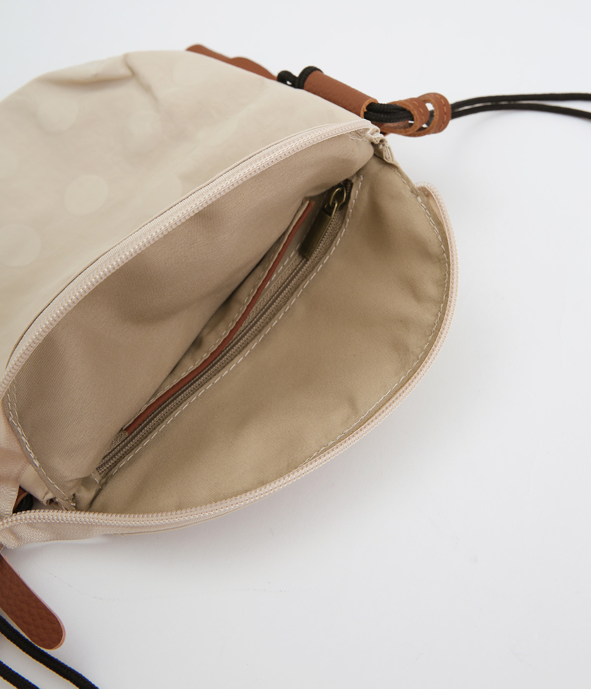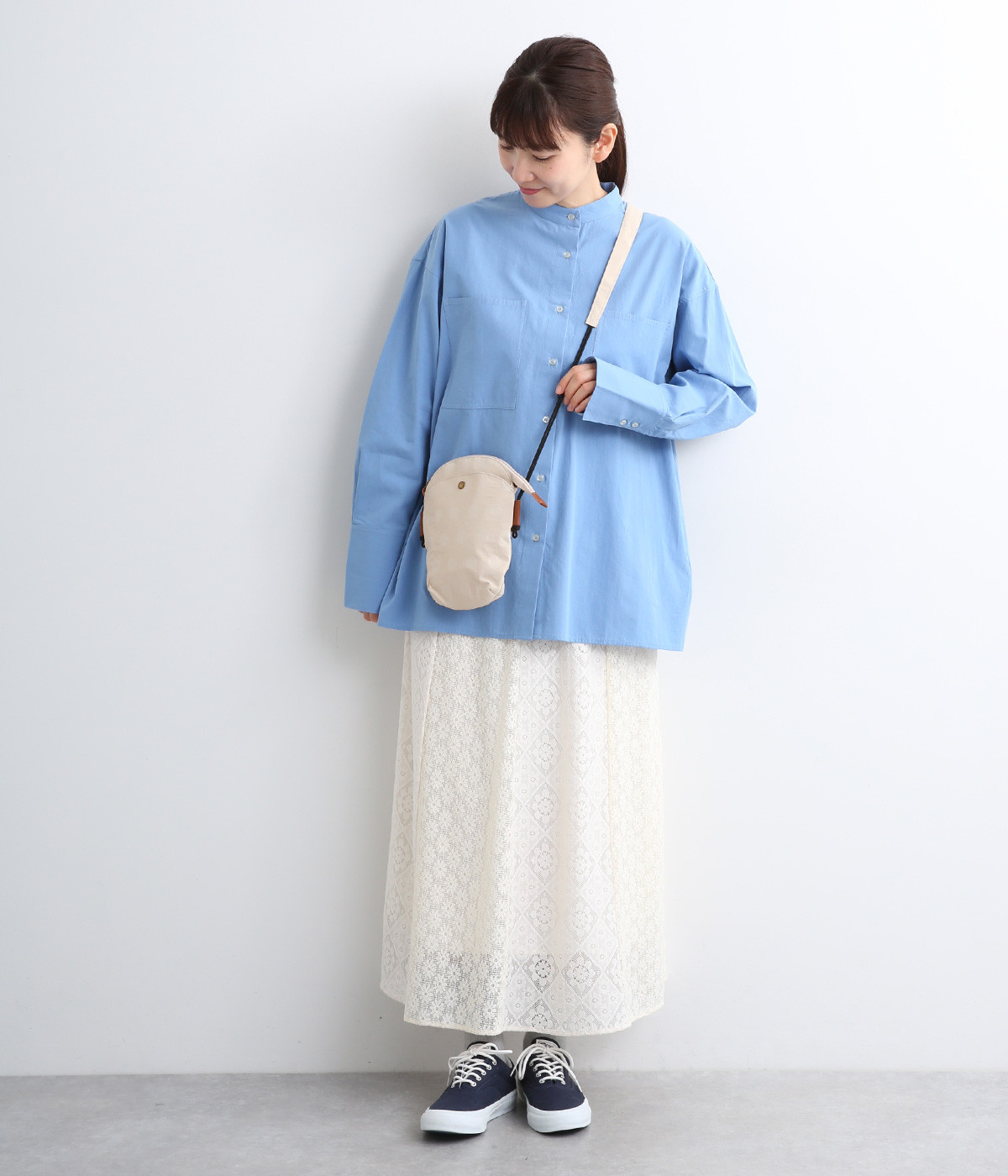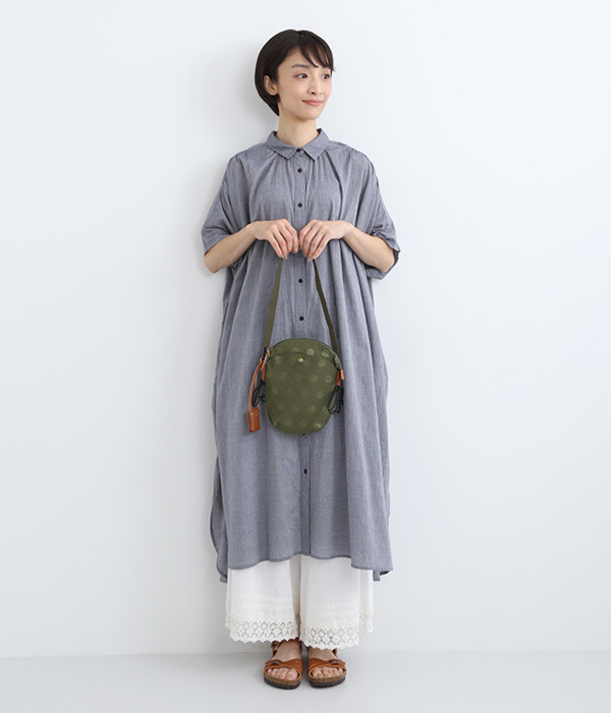 レザー仕立てのかわいらしいミニポーチがポイントに
