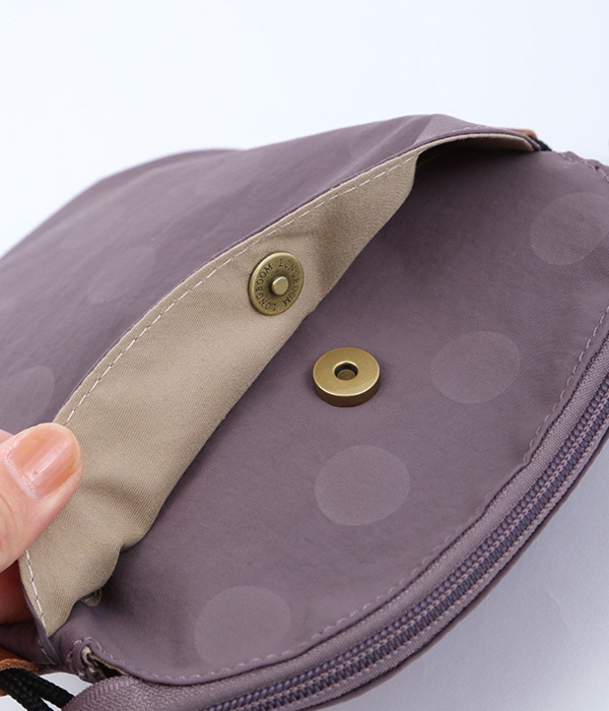 外ポケットには貴重品を入れていても安心のマグネットボタンつき