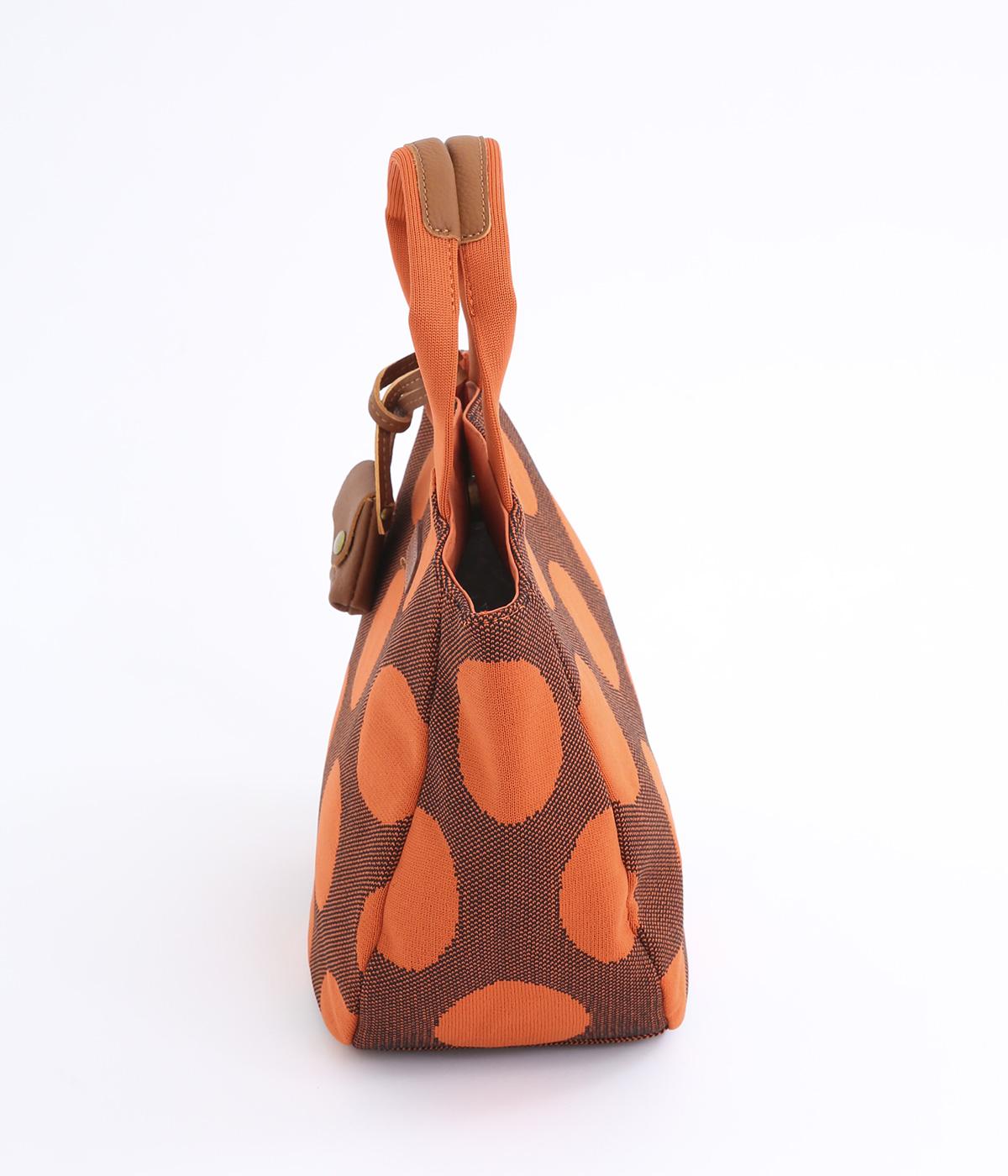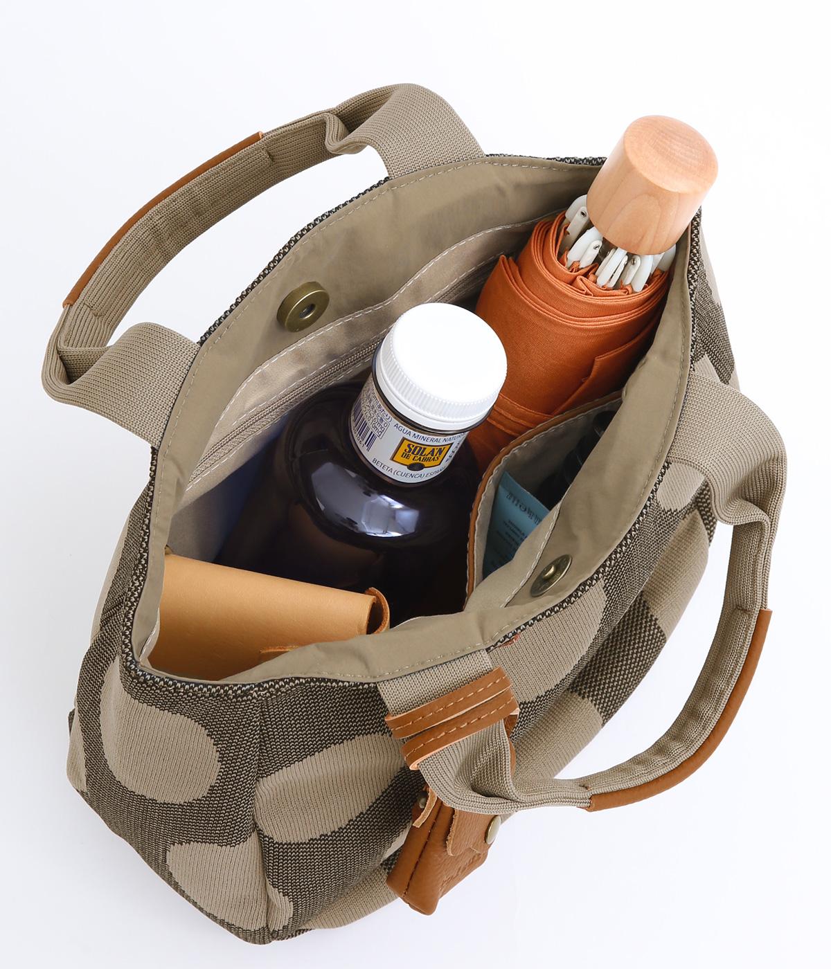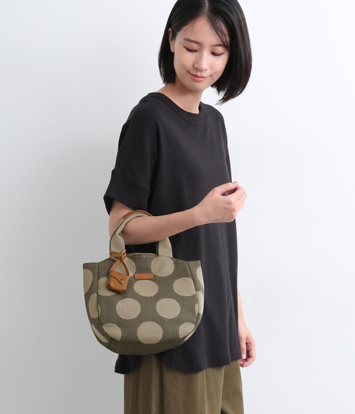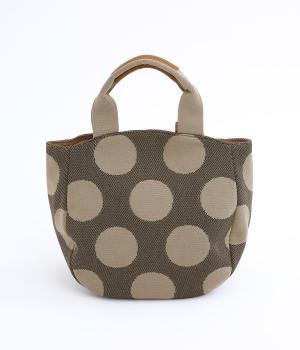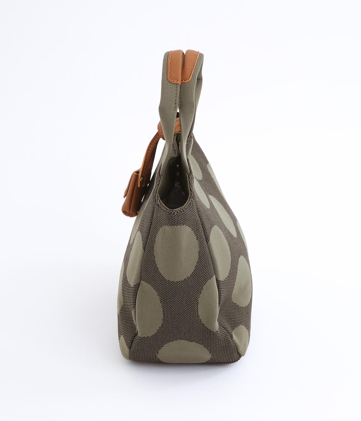 ドット柄に編み込んだポリエステルニット素材がスタイリングを盛り上げてくれます。パーツに牛革を配することで、カジュアルに寄りすぎず大人顔に。裏布もあてて強度&使い勝手の良さを高めました。