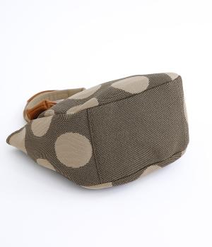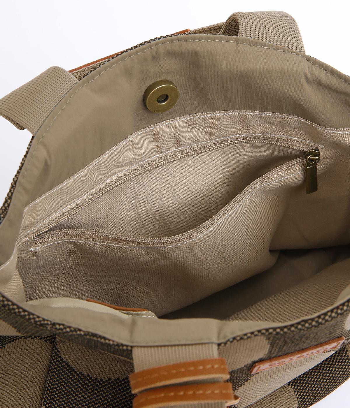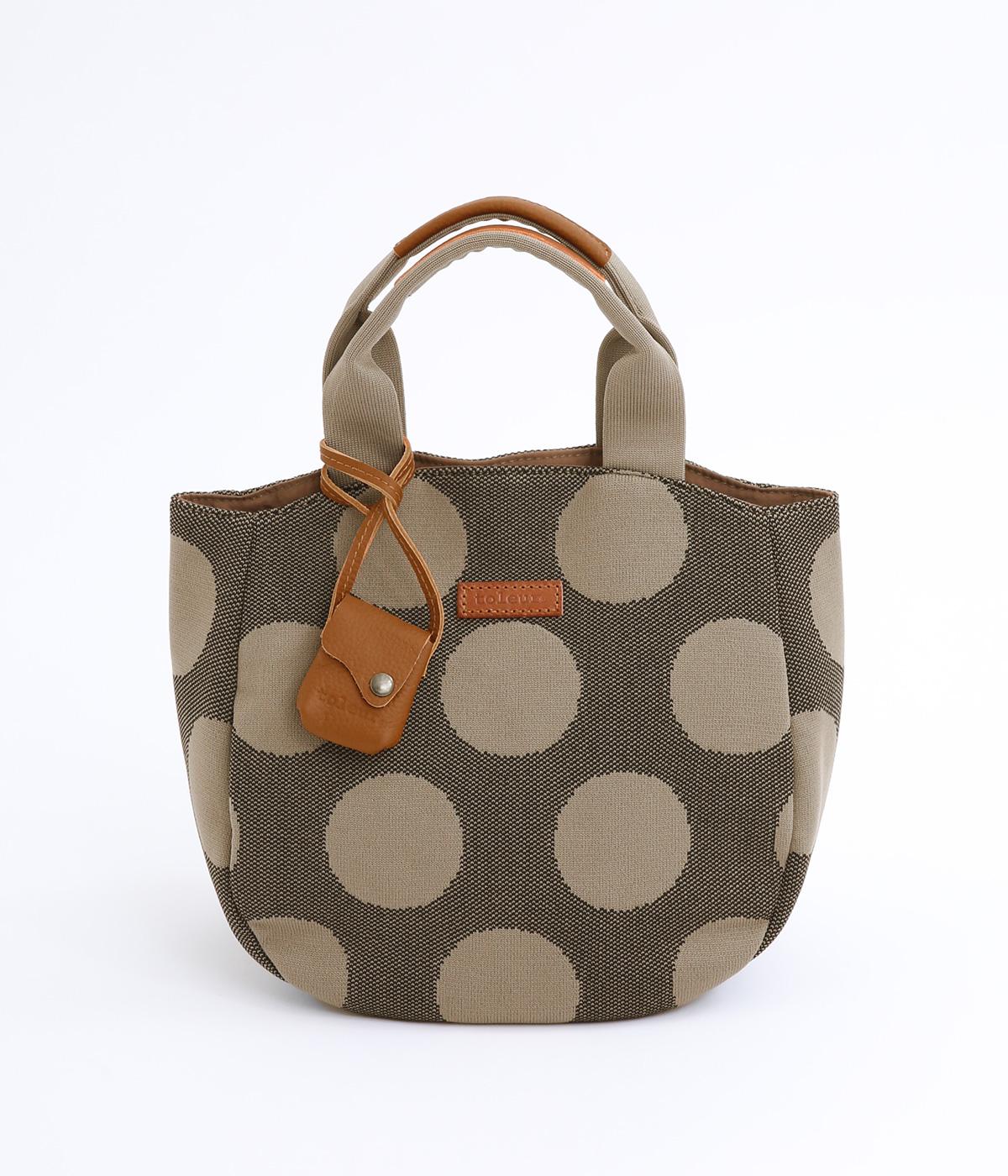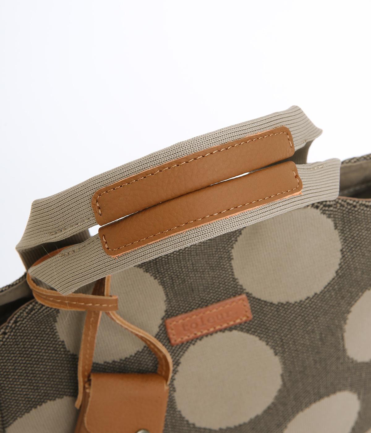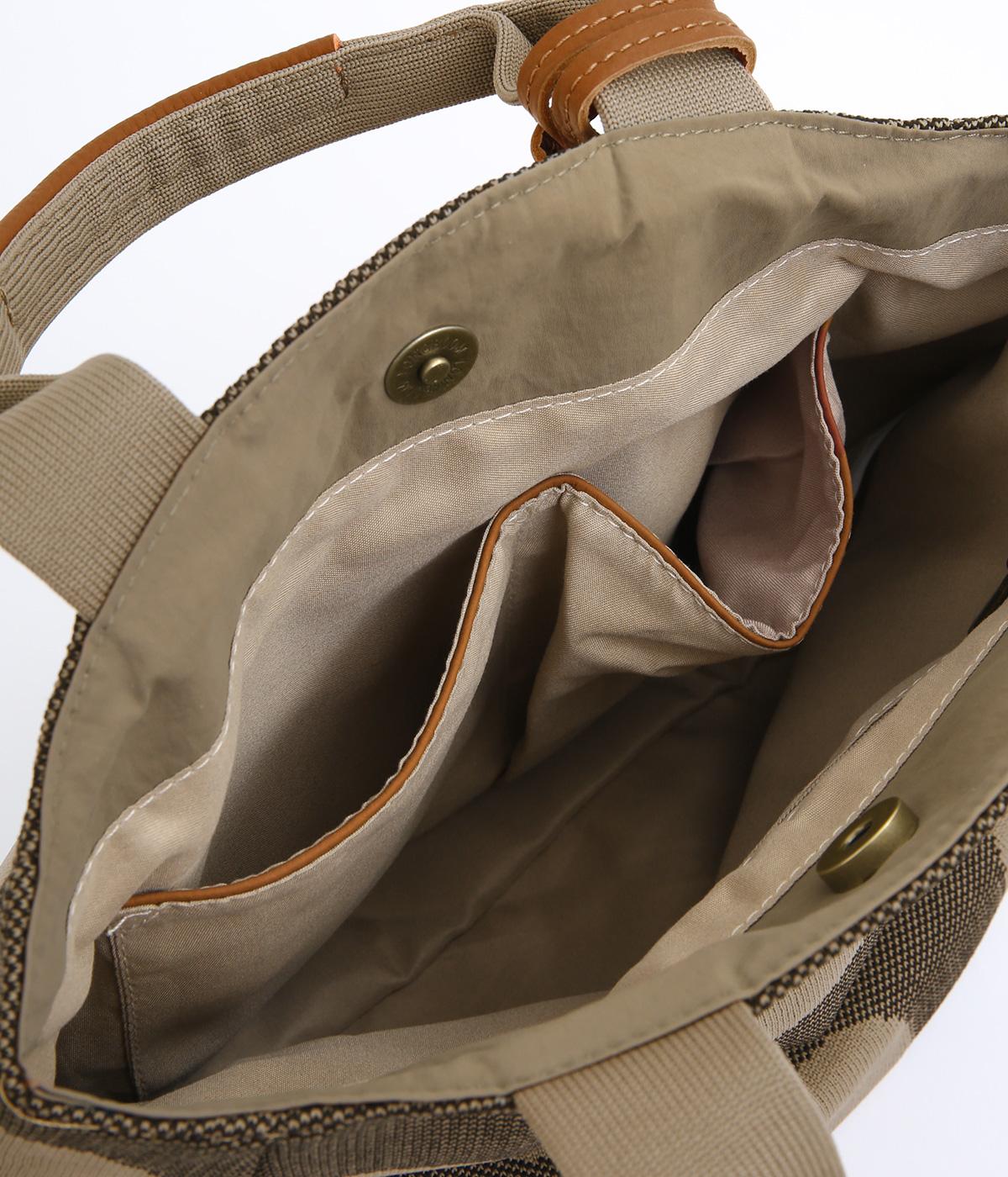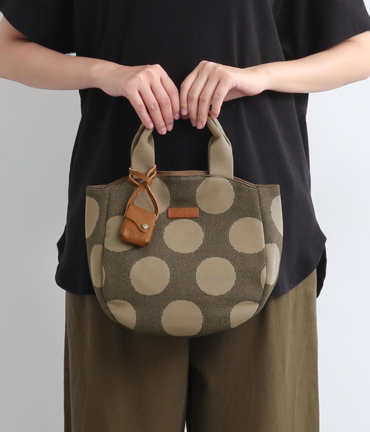 ドット柄に編み込んだポリエステルニット素材がスタイリングを盛り上げてくれます。パーツに牛革を配することで、カジュアルに寄りすぎず大人顔に。裏布もあてて強度&使い勝手の良さを高めました。