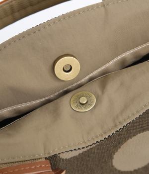 荷物整理しやすく使い勝手のいいスクエアシルエットをベースに、角を取った大人かわいいフォルムです。マチもしっかりあって、お出掛けに必要な荷物をすっぽり収納してくれます。内ポケットも充実していて、マグネットボタンで開閉もスムーズ。