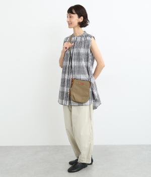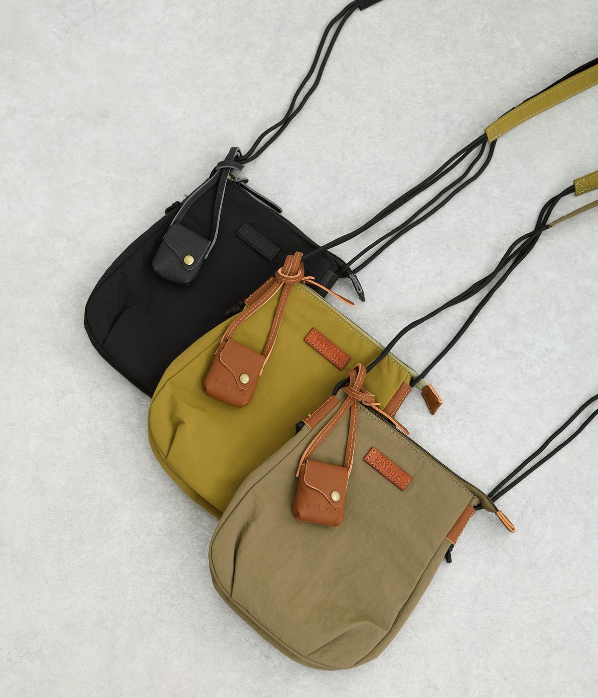 お出かけのお供にぴったりな縦型シルエットのミニサコッシュです。一般的な長財布やスマートフォンをすっきりと収納できるサイズ感。単独ではもちろん、リュックやトートバッグとの併用も◎。