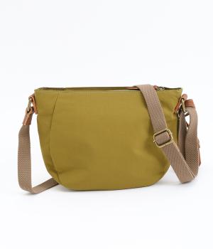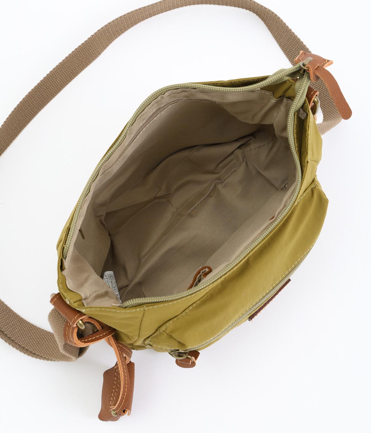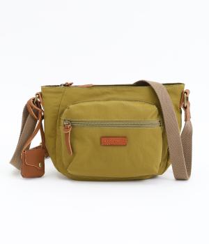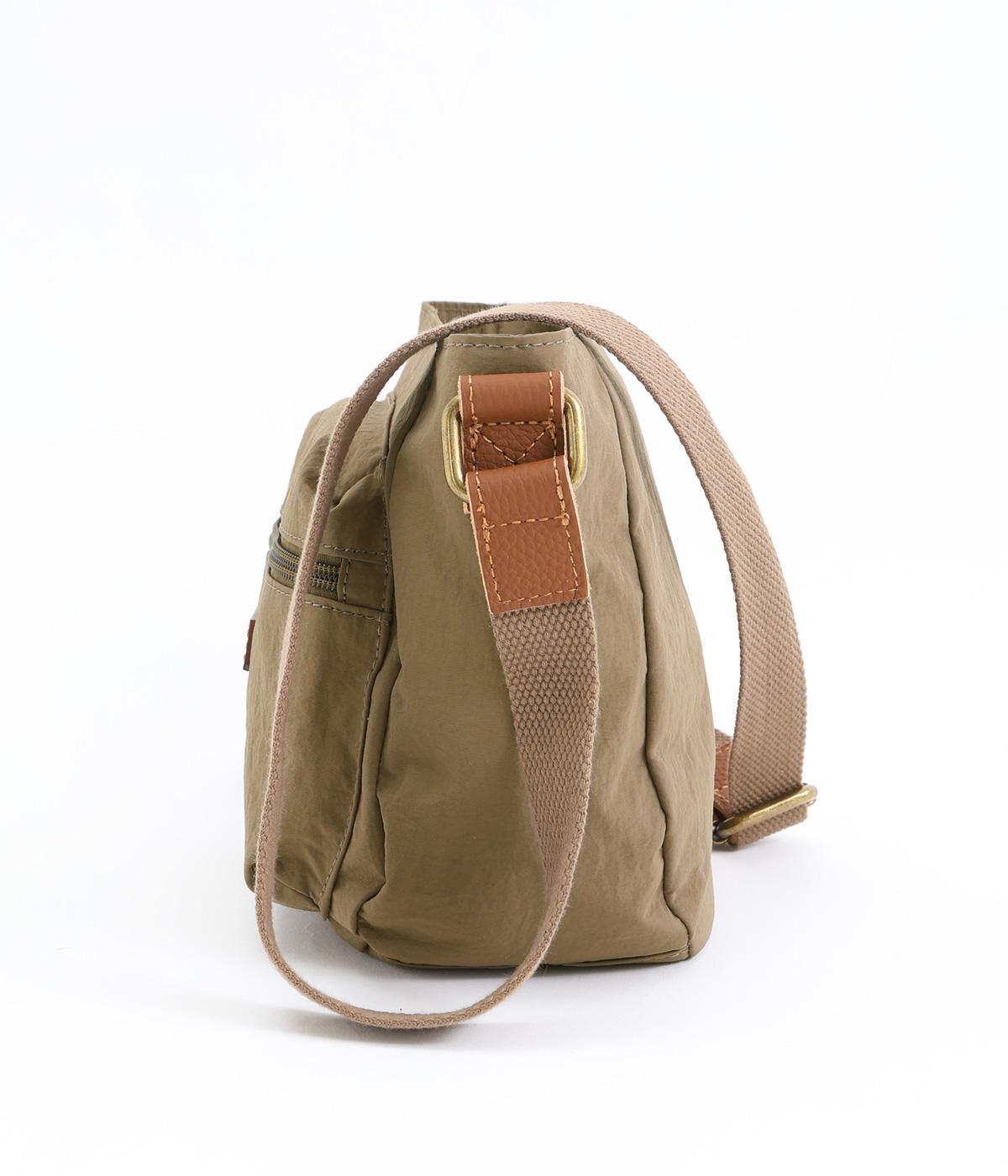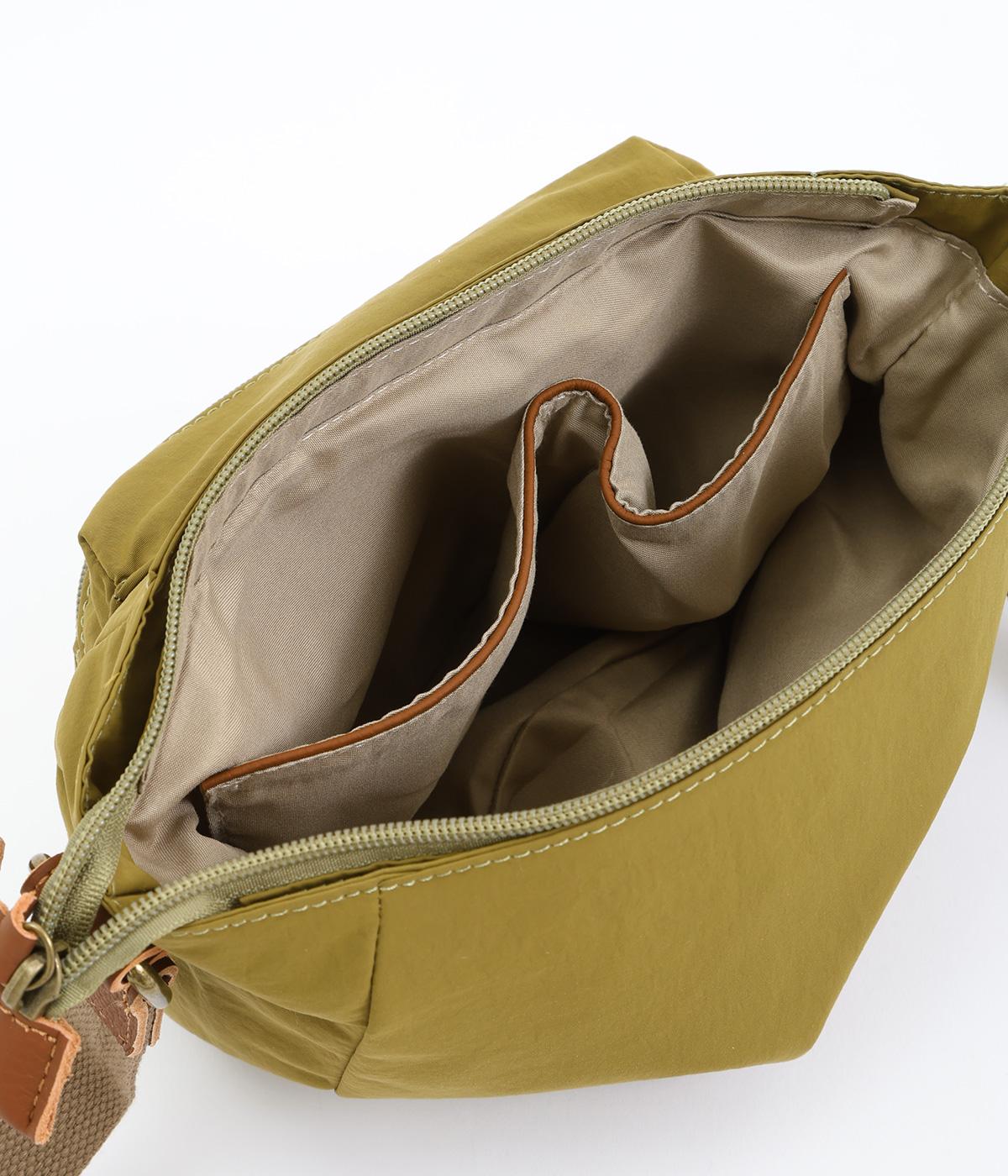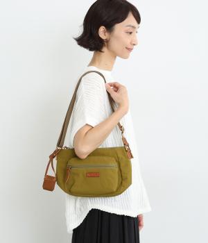 バッグ下部にまるみをつけたやわらかな雰囲気がポイントのショルダーバッグです。すぐに取り出したい小物の収納に便利なファスナーポケットを前面に配置しています。荷物が多いときのサブバッグとしても活躍。