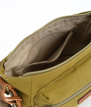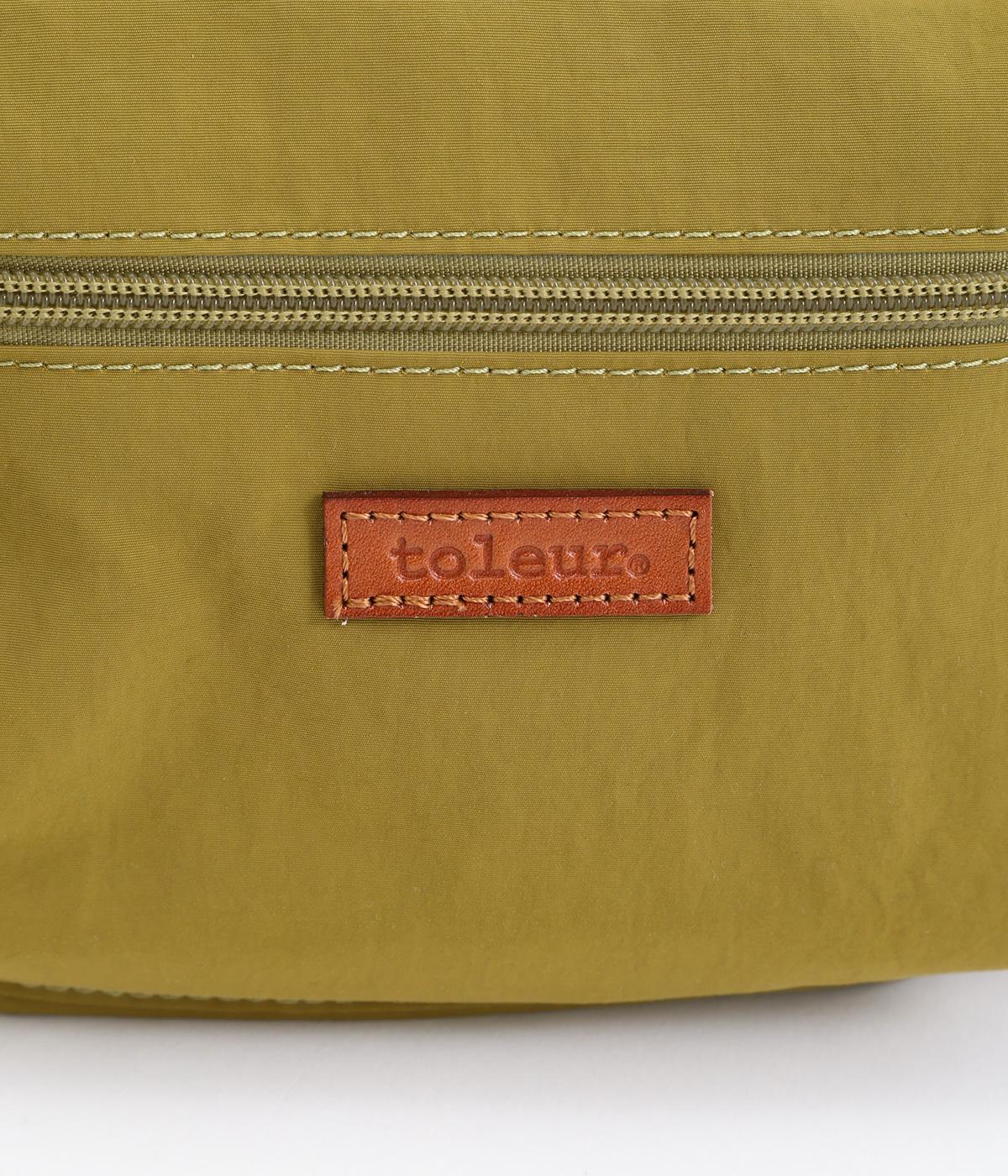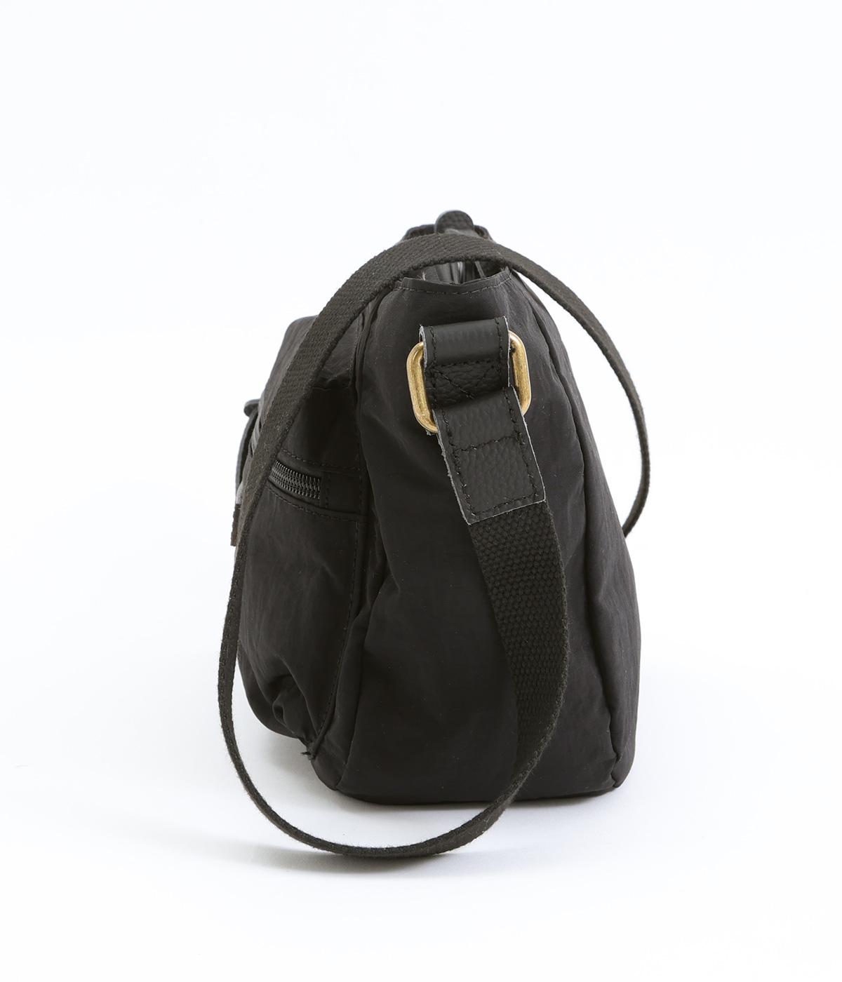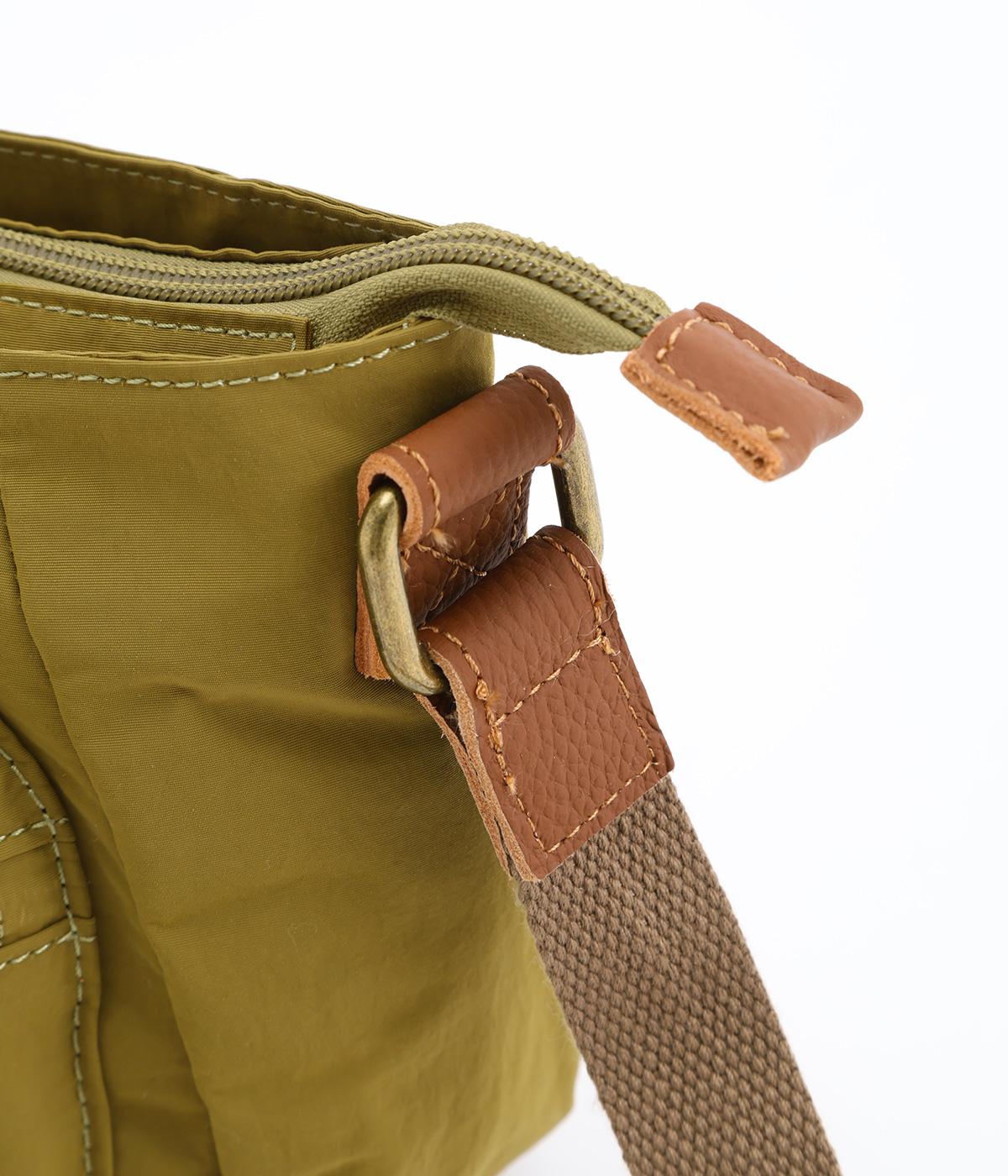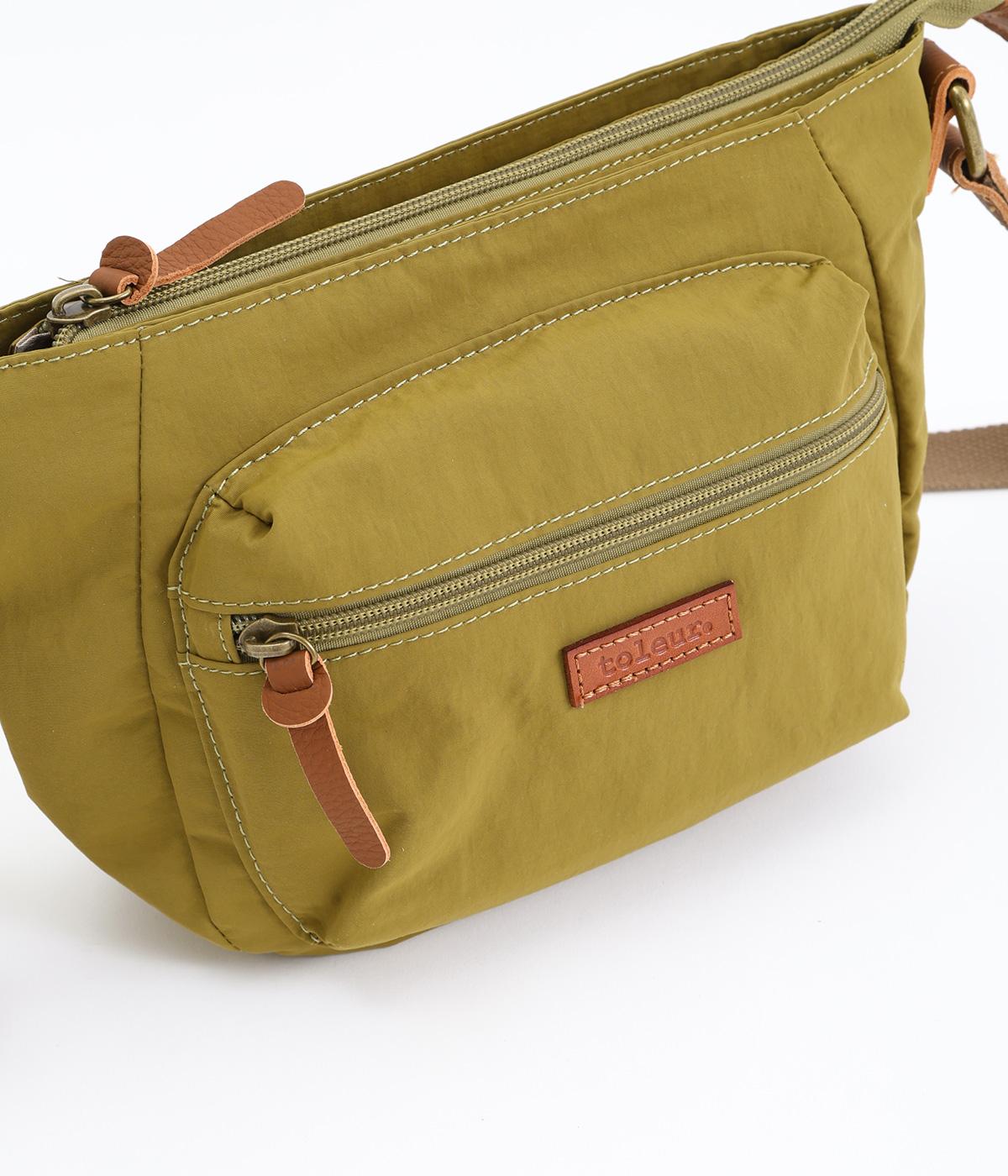 バッグ下部にまるみをつけたやわらかな雰囲気がポイントのショルダーバッグです。すぐに取り出したい小物の収納に便利なファスナーポケットを前面に配置しています。荷物が多いときのサブバッグとしても活躍。