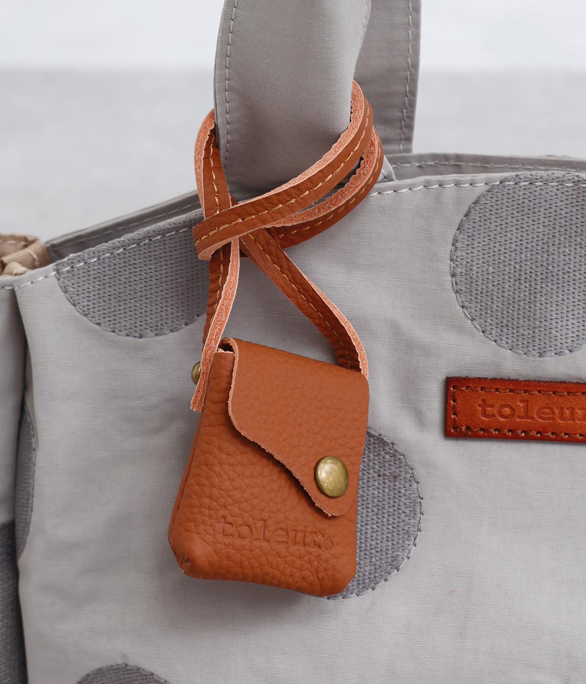 やや大きめなサイズ感に内外にポケットを配して抜群の収納力がうれしいトート。コロンとしたフォルムで、手持ちでも肘にかけても愛らしいアクセントになります。かわいらしく揺れるミニレザーポーチ付きです。
