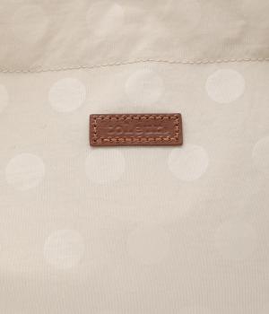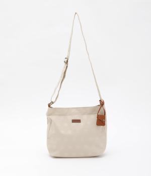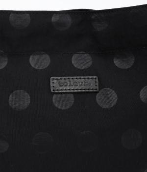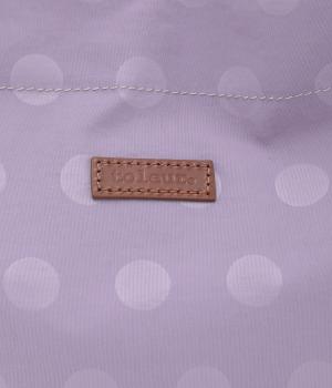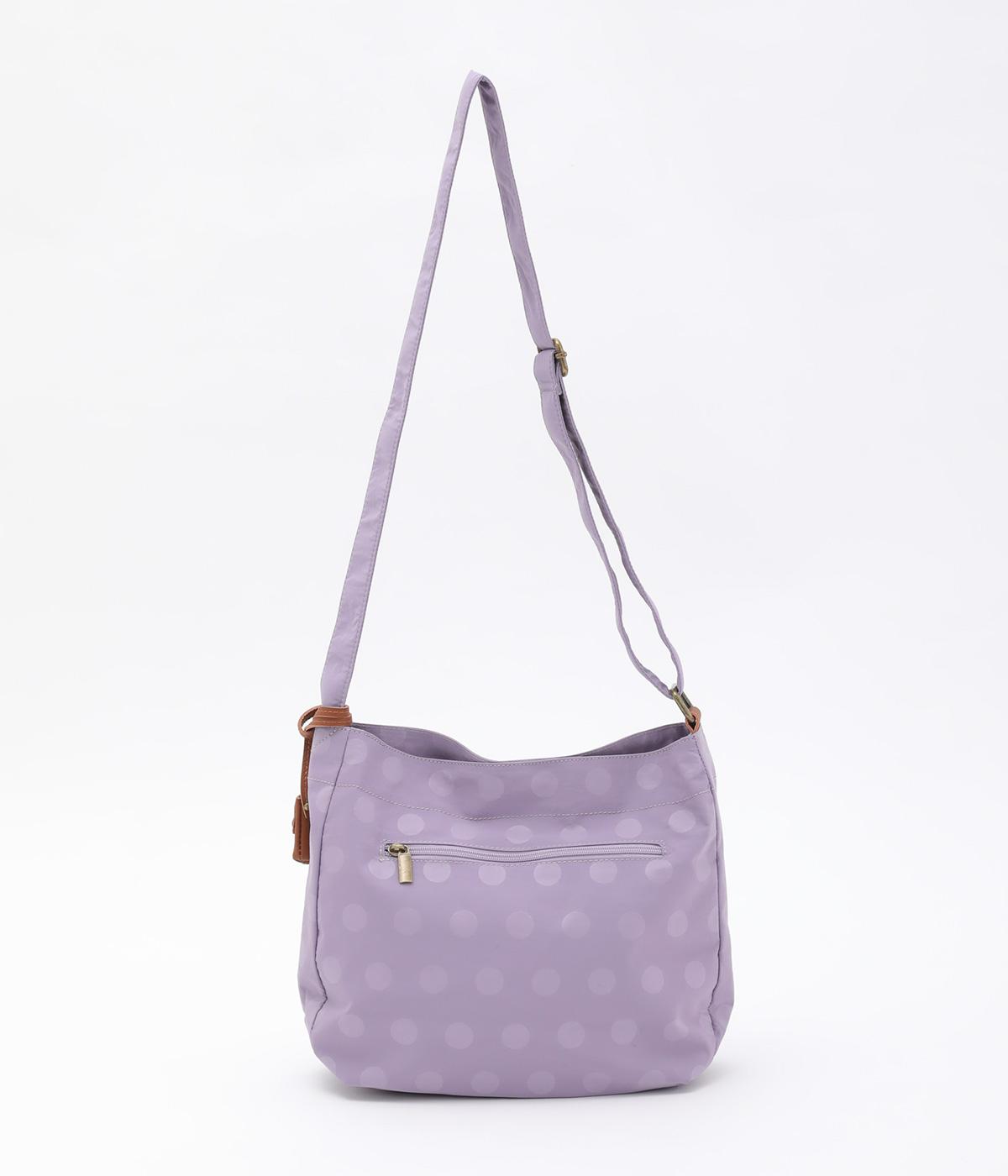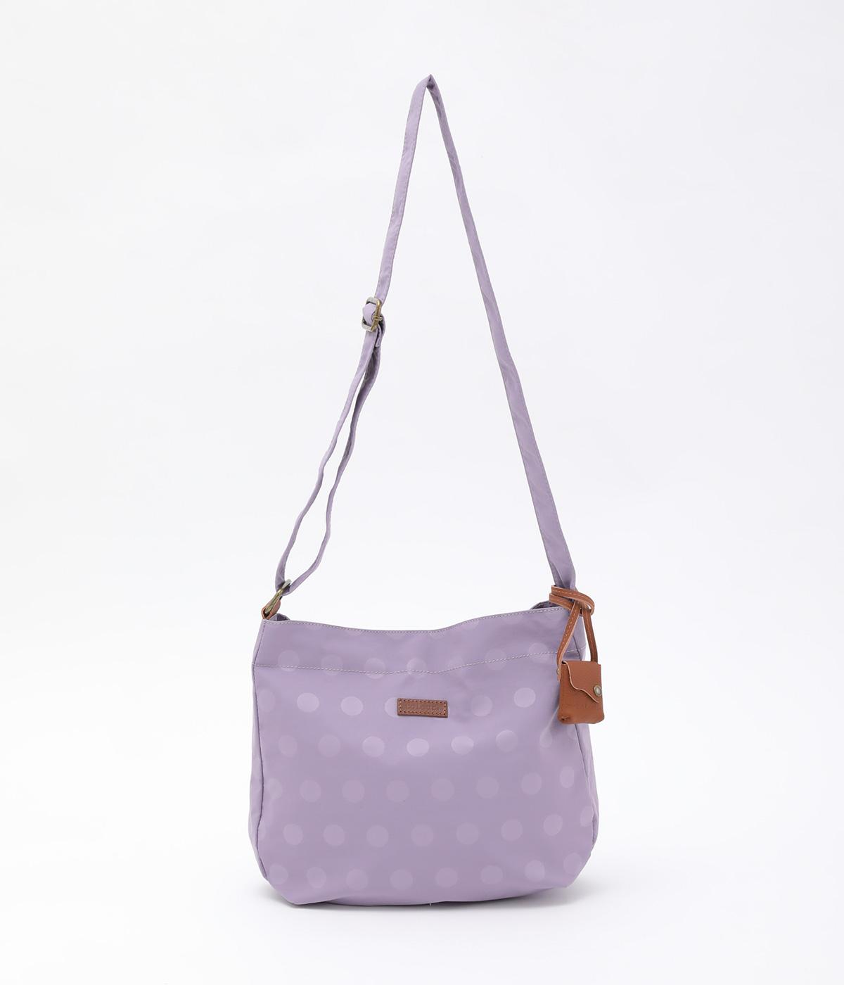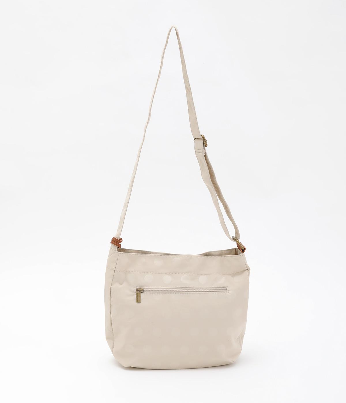 ひかえめな光沢のあるドットプリントが、さりげないアクセントに。落ち着いた雰囲気で、大人の装いにも合わせやすいデザインです。3つの内ポケットと外ポケットがついているので、小物もすっきり整理できます。ミニレザーポーチがさりげないポイントとなり、使うたびに愛着が深まるバッグです。