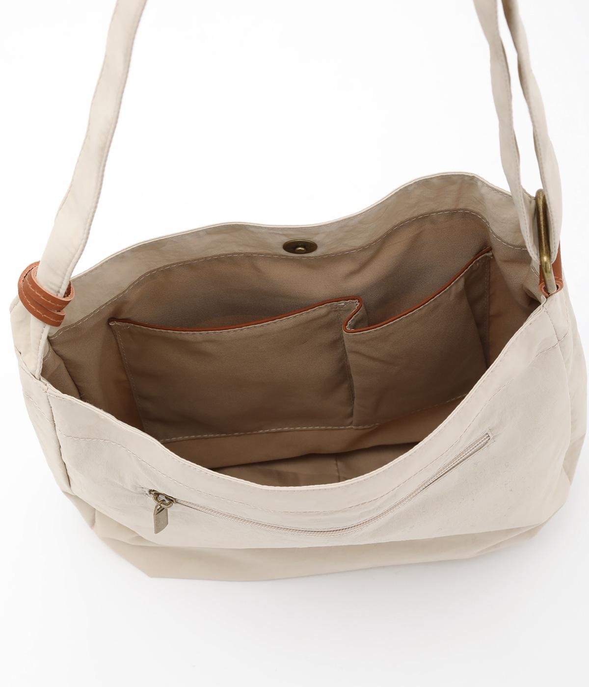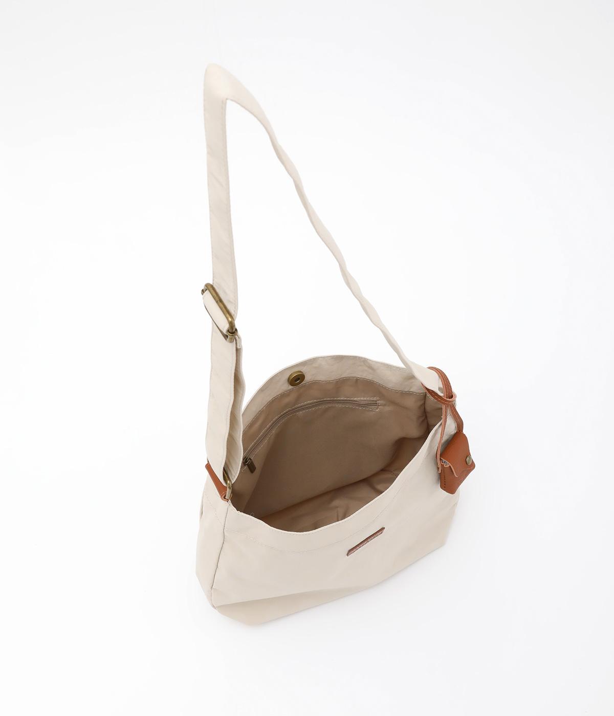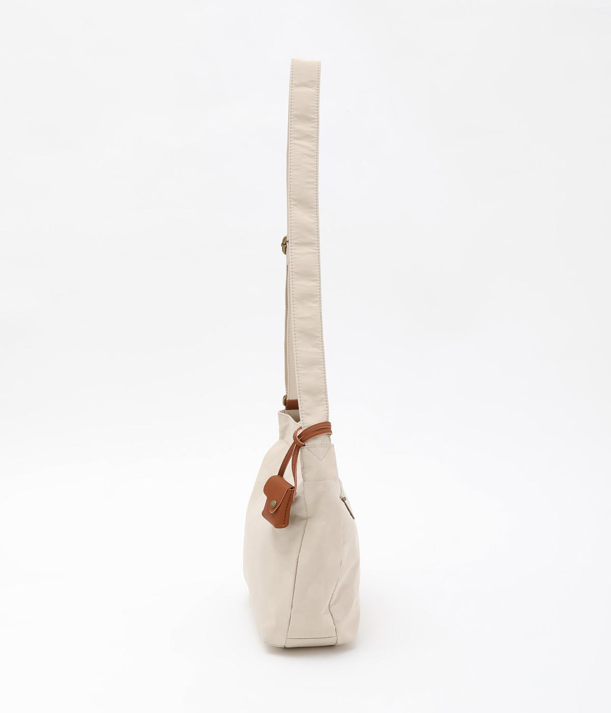 軽やかでタフなナイロン素材を使用し、さらりとした手ざわりに仕上げました。ほどよいハリ感があり、フォルムをきれいにキープしてくれるのもポイント。マットな質感が落ち着いた印象をつくります。