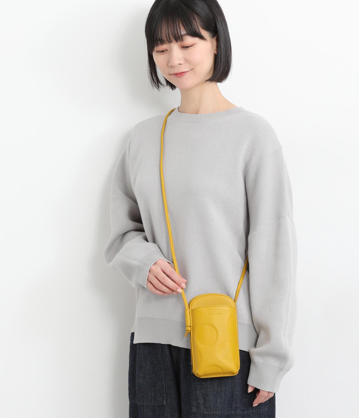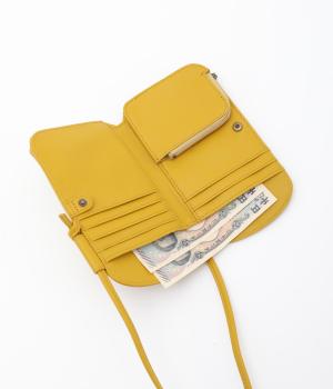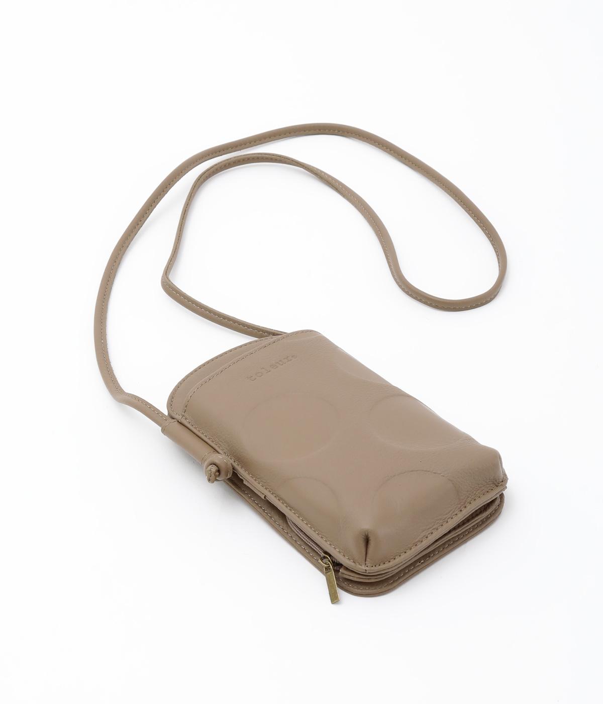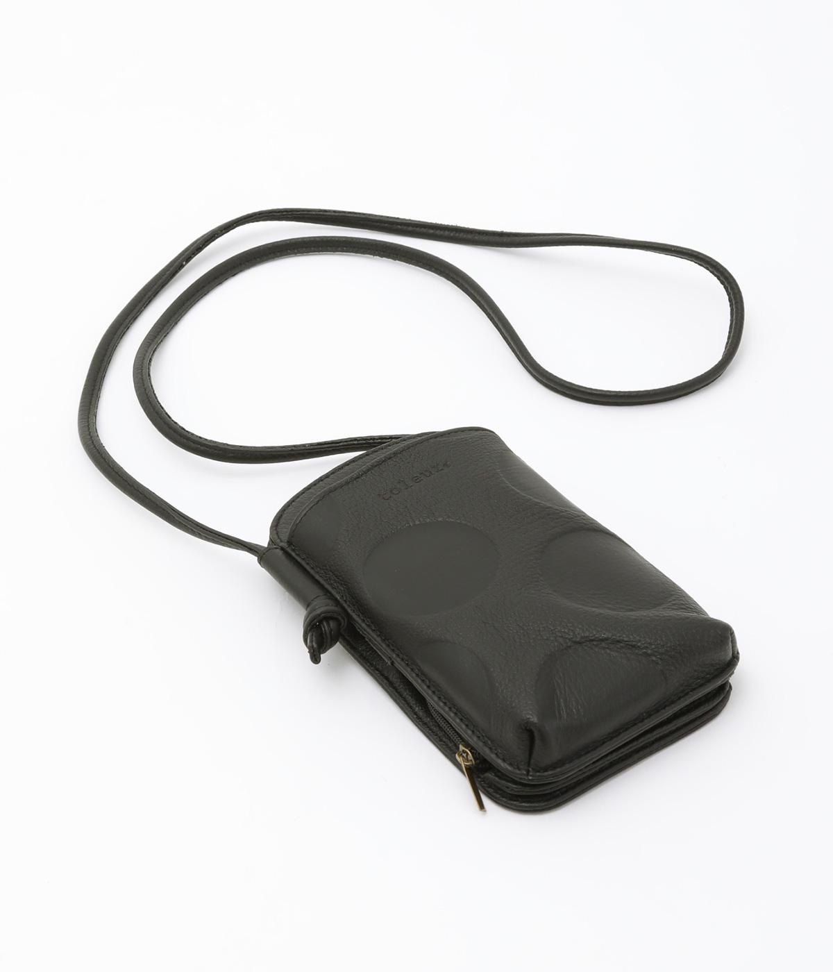 さっと掛けるだけで両手があく、デイリーユースにぴったりなショルダーウォレットです。上質なカウレザーに大きめのドット柄を型押しで表現し、ほどよいかわいらしさをプラスしました。内側は仕切りやカードポケットを備え、必要なものをすっきり分けて収納できます。ストラップは紐端を結び直すことで長さ調節が可能です。