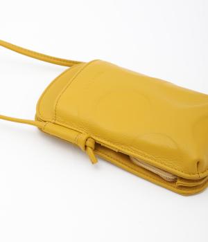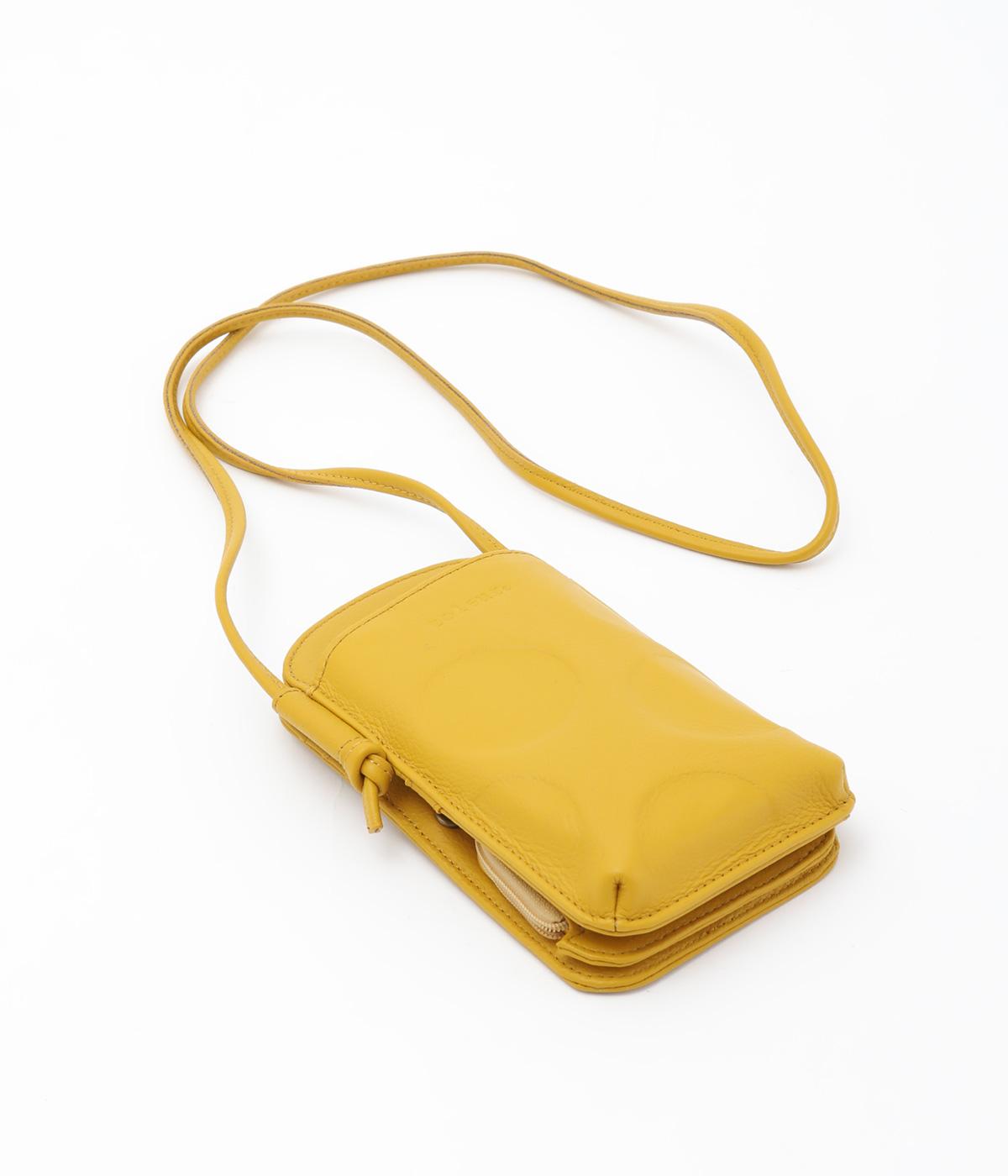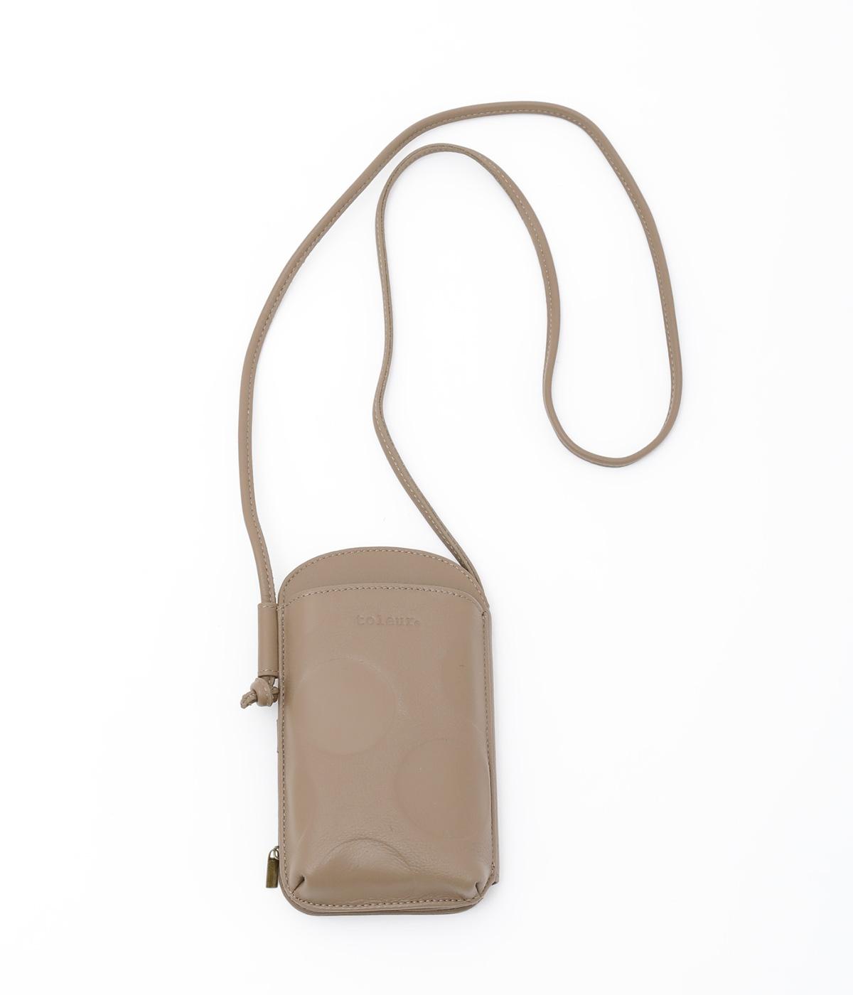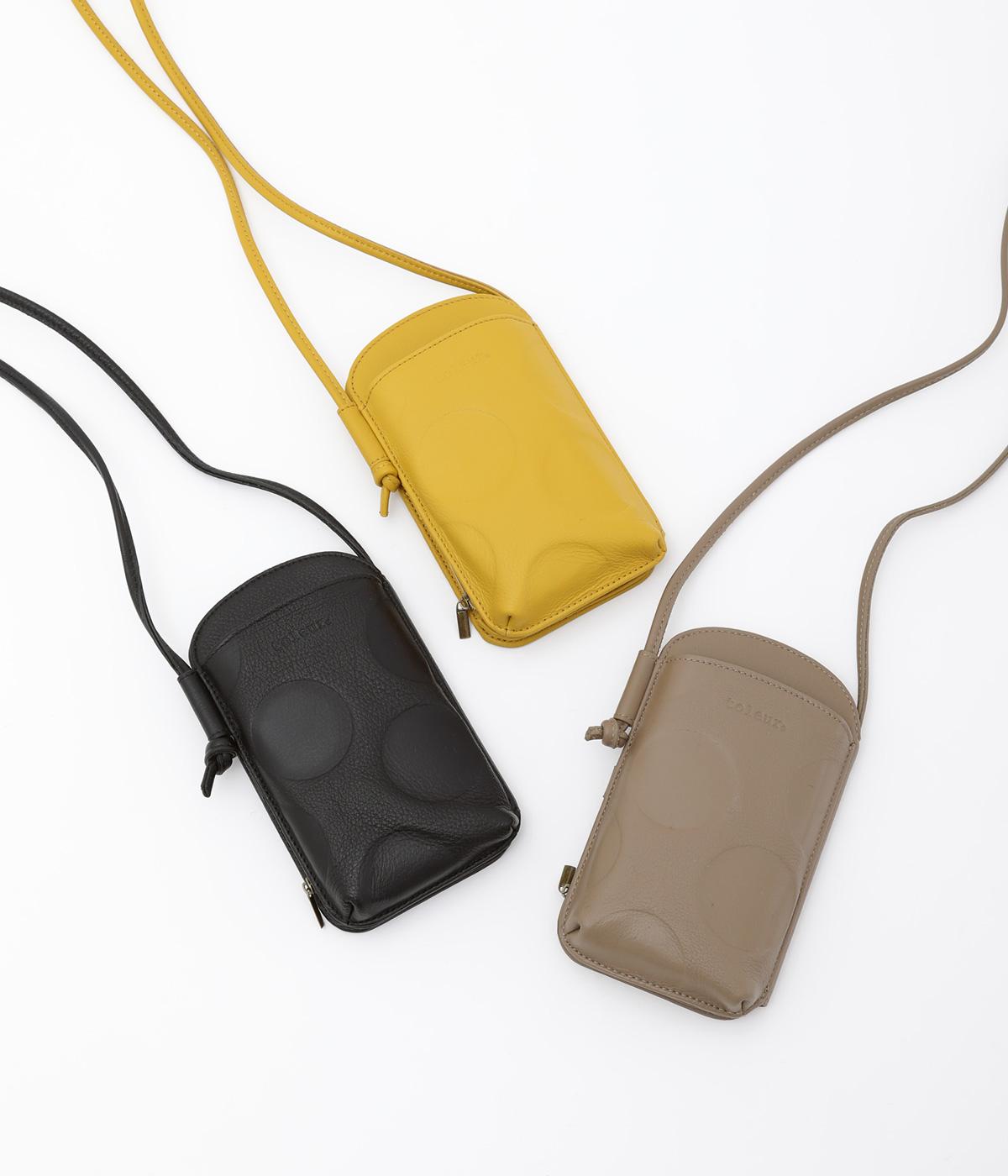 さっと掛けるだけで両手があく、デイリーユースにぴったりなショルダーウォレットです。上質なカウレザーに大きめのドット柄を型押しで表現し、ほどよいかわいらしさをプラスしました。内側は仕切りやカードポケットを備え、必要なものをすっきり分けて収納できます。ストラップは紐端を結び直すことで長さ調節が可能です。