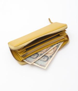 無駄のないシンプルなデザインが、上質な雰囲気を引き立てます。仕切りやカードポケットをたっぷり備え、スリムな見た目ながら収納力はばつぐんです。ラウンドファスナー仕様で大きくひらき、中身をひと目で確認できるのも◎。表側にはミニポケットを配し、レシートなどをさっと収納できるのもうれしいポイントです。