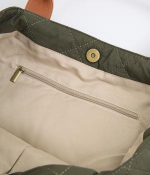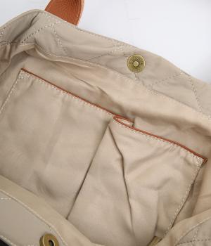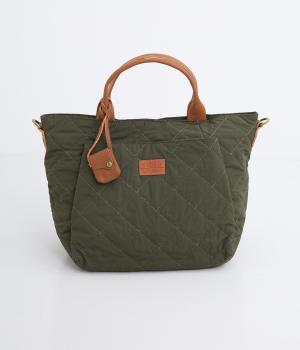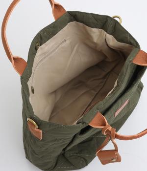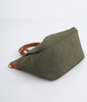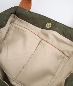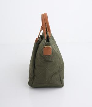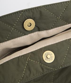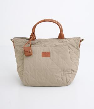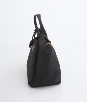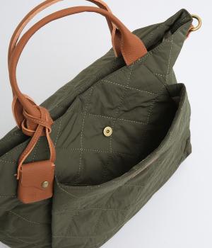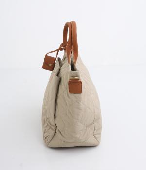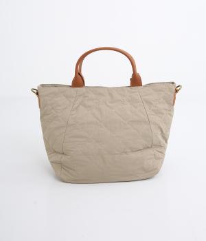 やや硬めなリンクルナイロンにキルティングを施すことで、こなれ感があるのに上品顔な一品。タグやハンドル部分は牛革で、高級感のある仕上がりです。
