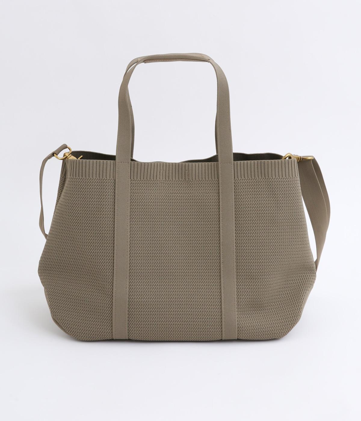 外すこともできる底板つきで、自立式が便利な大容量バッグです。トートでもショルダーでも使える2way仕様で、ベルトは取り外し可能で使い勝手もさらにアップ。ハンドルの中央部分やタグにはレザーを配してスマートに仕上げました。