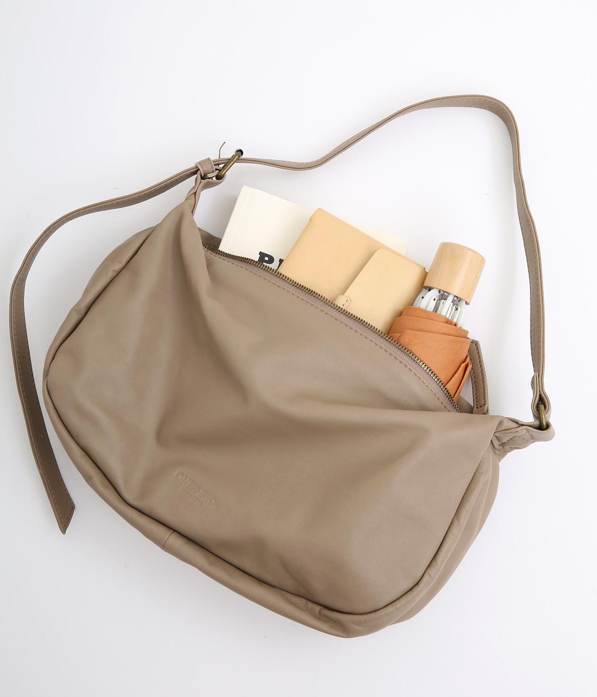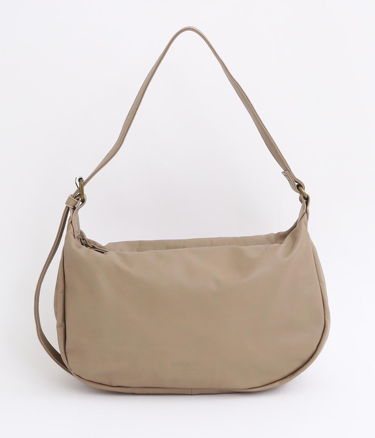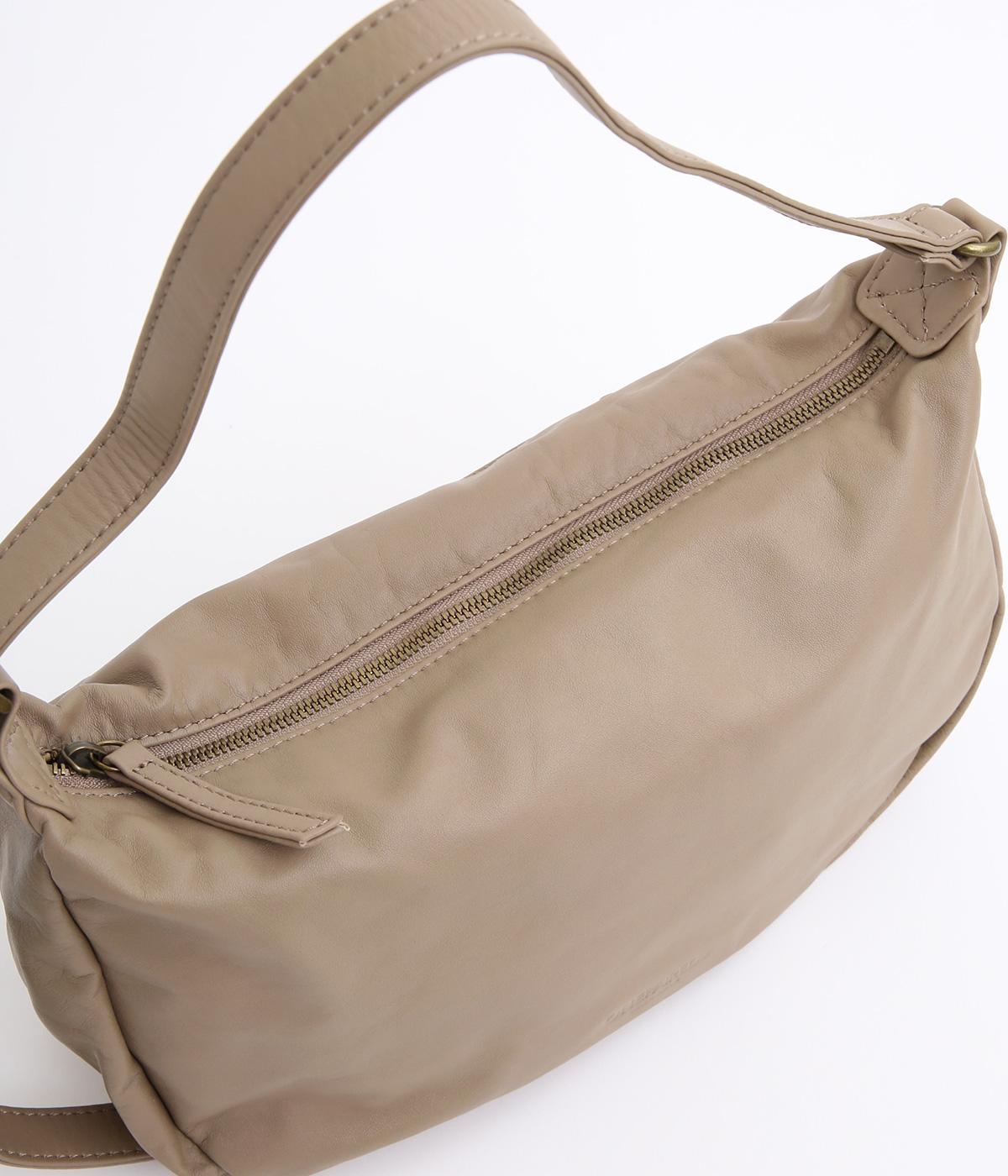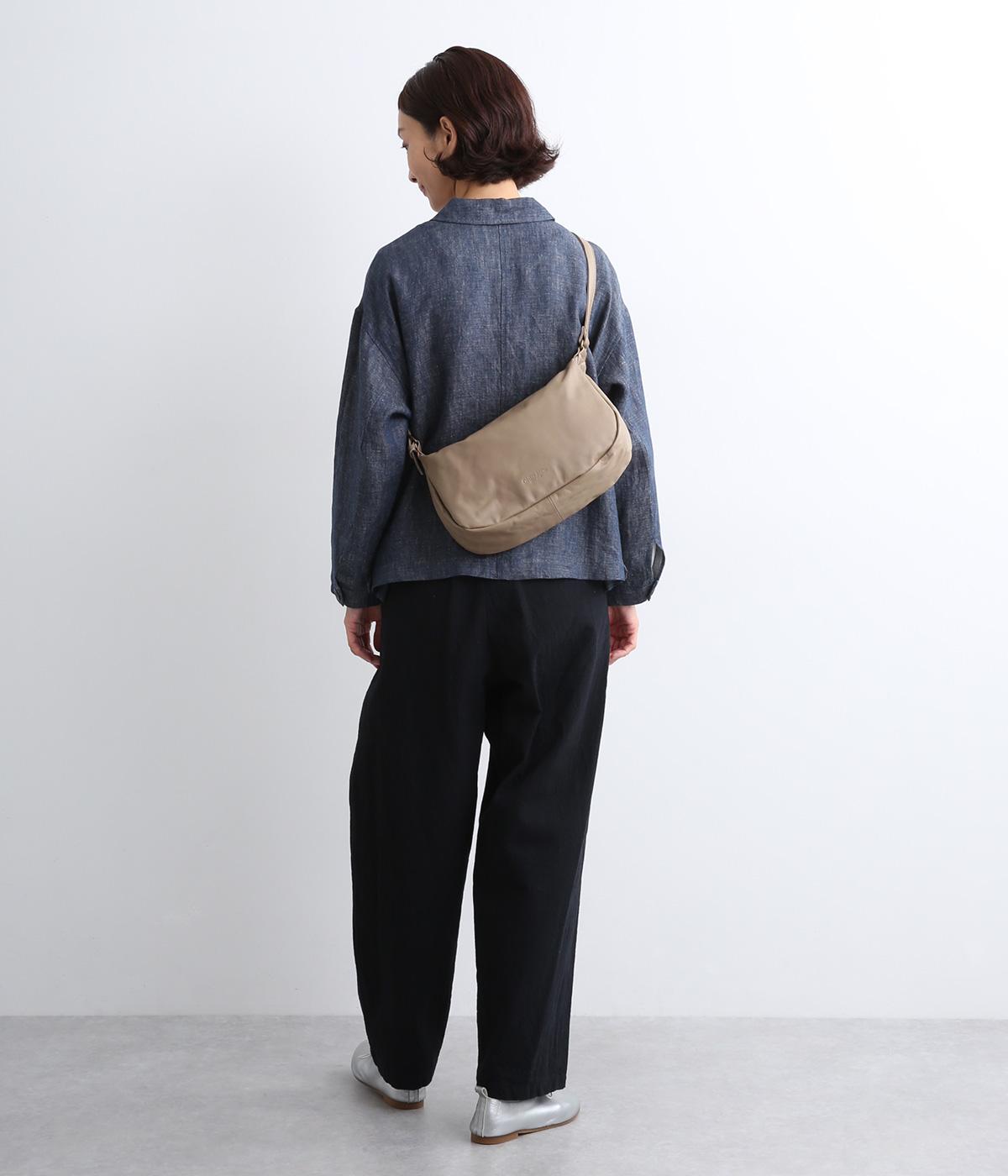肩の力を抜いたくったりとしたシルエットが洗練された印象。丸みのあるアンニュイなシルエットがポイントで、正面のロゴ型押しでクラシカルにまとめました。ショルダーベルトは長さ調整でき、肩掛けやななめ掛けなどスタイリングに合わせてたのしめます。