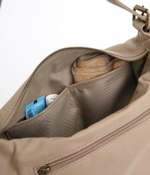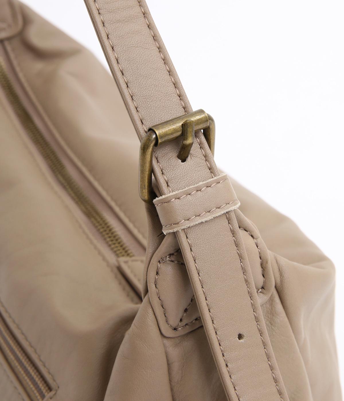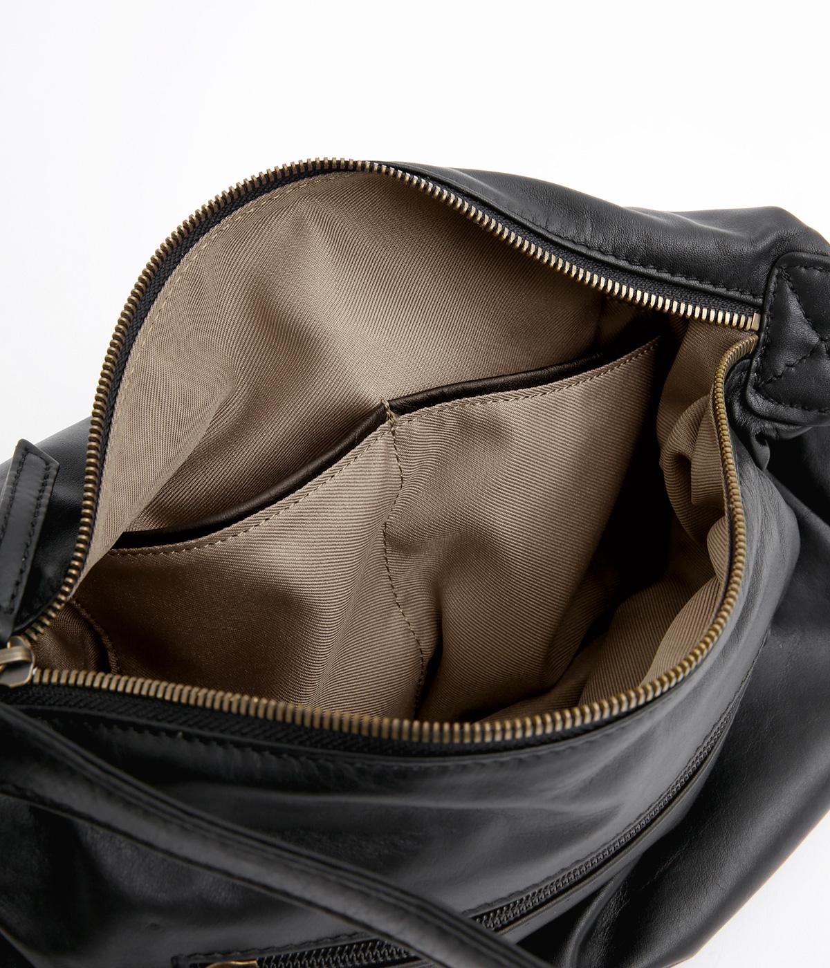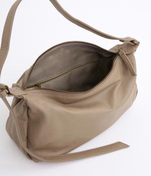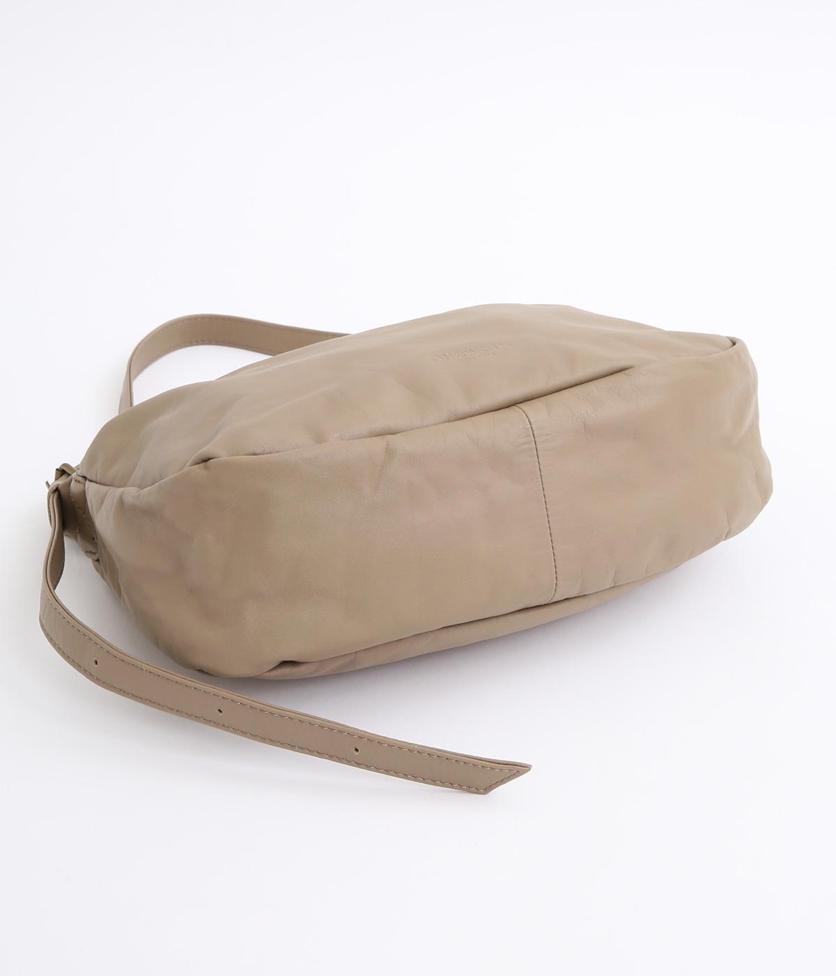 肩の力を抜いたくったりとしたシルエットが洗練された印象。丸みのあるアンニュイなシルエットがポイントで、正面のロゴ型押しでクラシカルにまとめました。ショルダーベルトは長さ調整でき、肩掛けやななめ掛けなどスタイリングに合わせてたのしめます。
