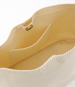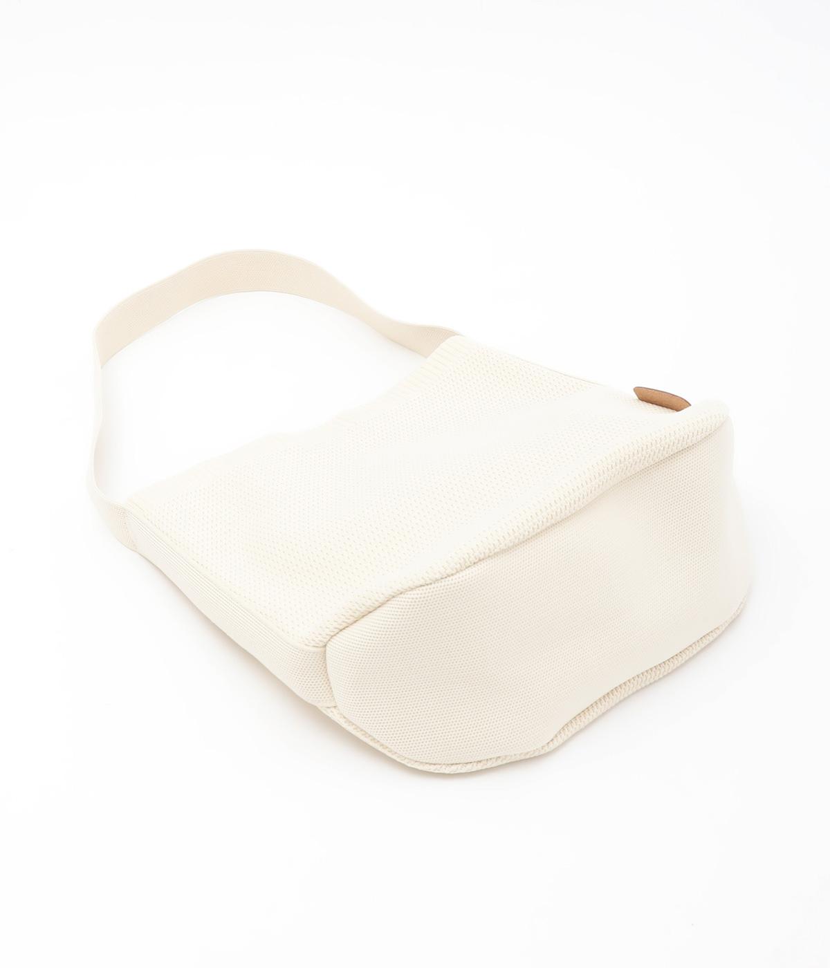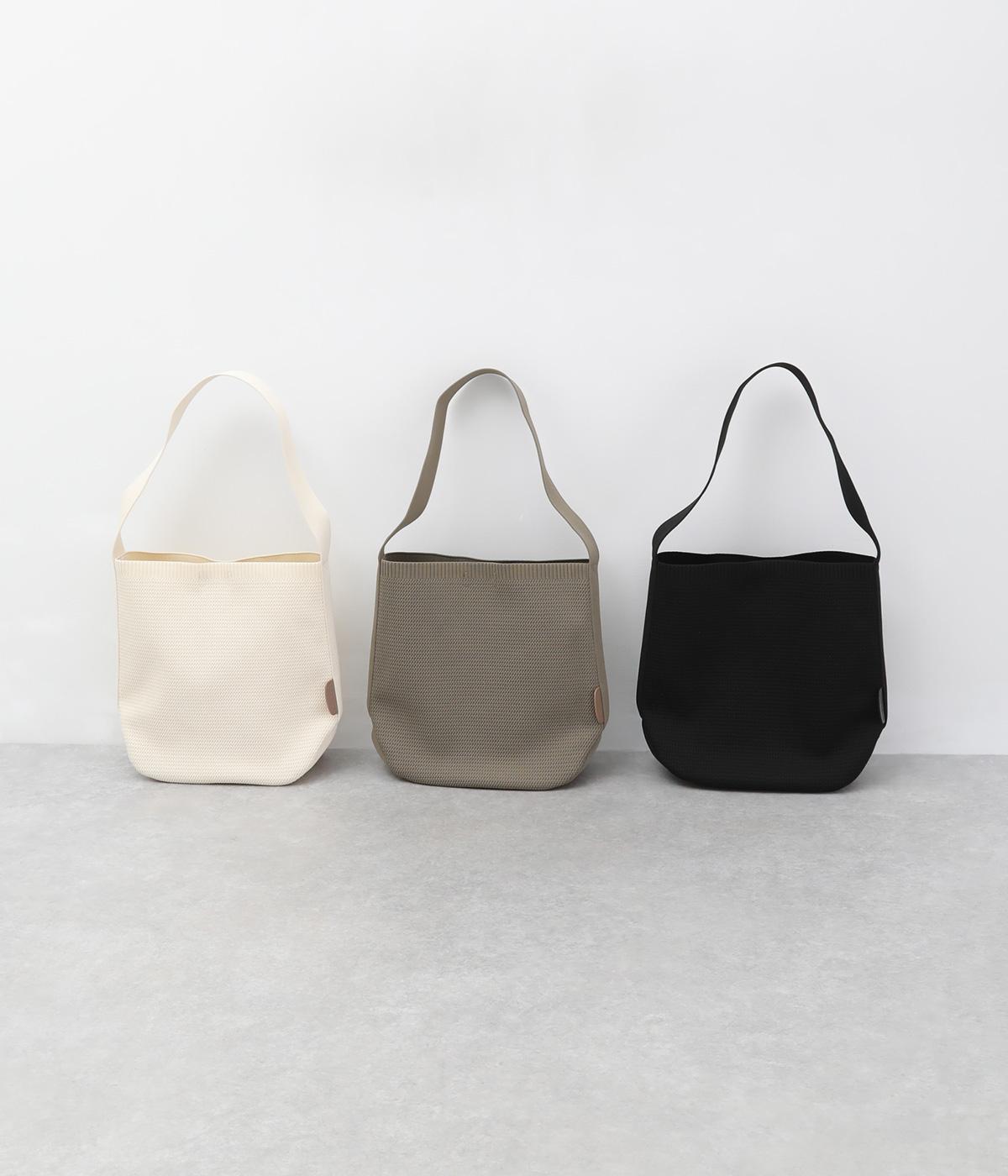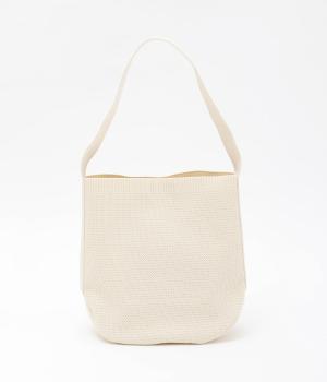 凹凸のある編み地が表情を添える、ワンハンドルのデザインです。直線とやわらかな曲線を組み合わせたフォルムが、カジュアルすぎない上品さを添えます。持ち手はほどよい太さで、肩にかけたときの安定感も◎。内ポケットとマチつきで収納力も抜群です。カジュアルからきれいめまで、幅広い装いにマッチします。