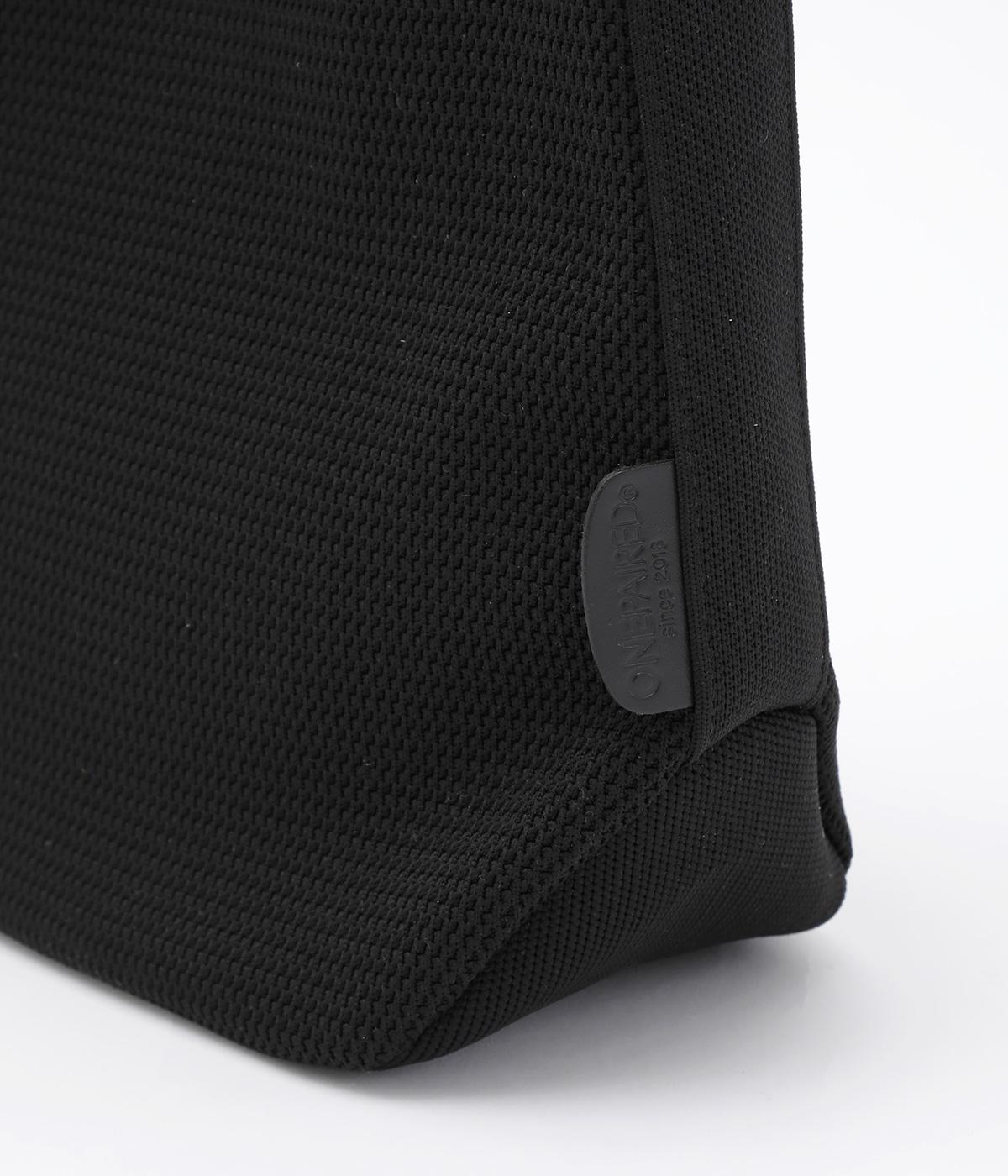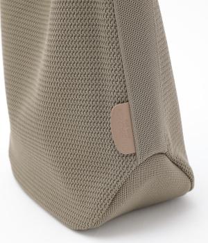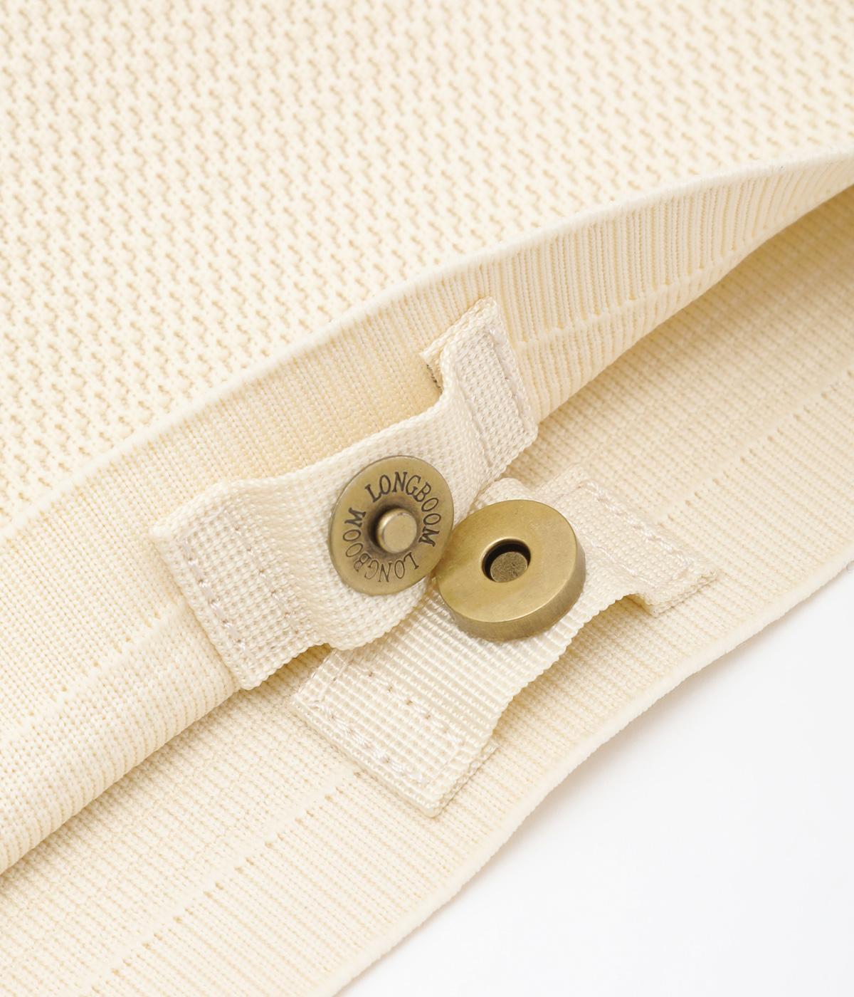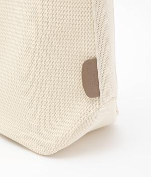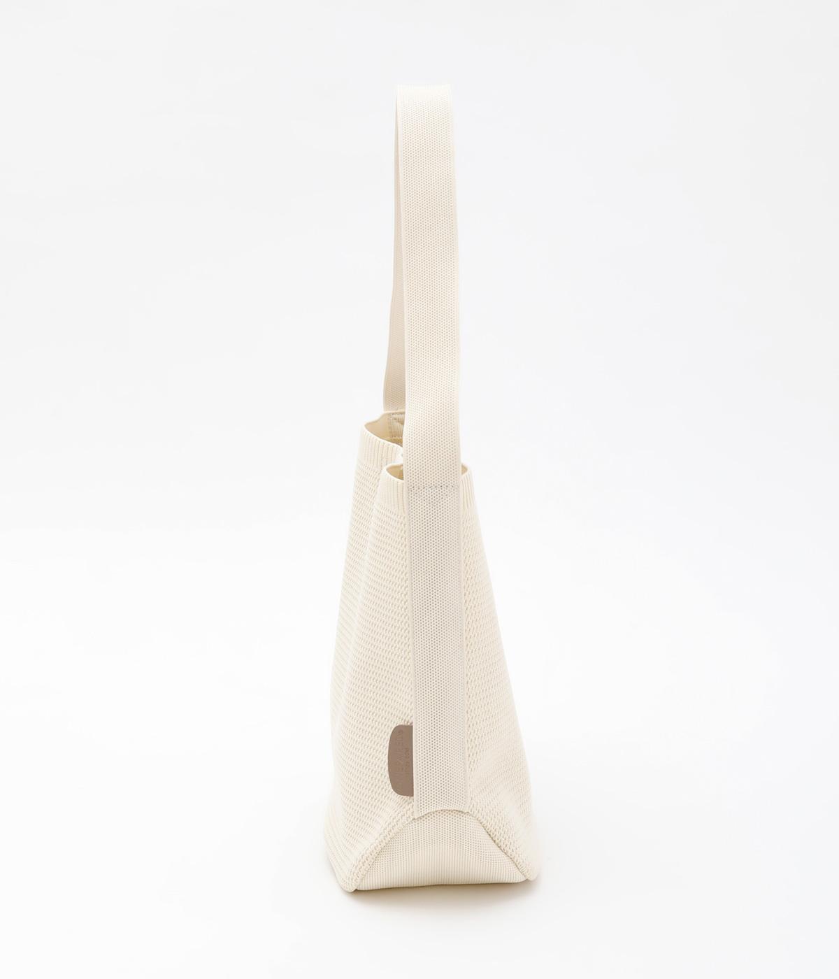 目の詰まったしっかりとしたポリエステルニットを使用しました。メッシュ編みならではの涼やかさと、ニット特有の凸凹としたやさしい表情が感じられます。フォルムをきれいに保つハリ感があるのもうれしいポイント。