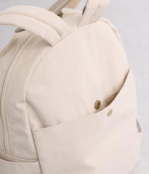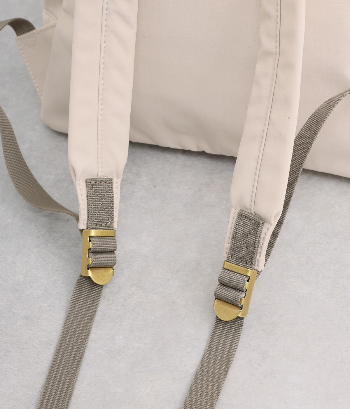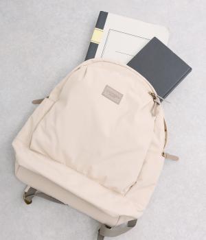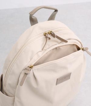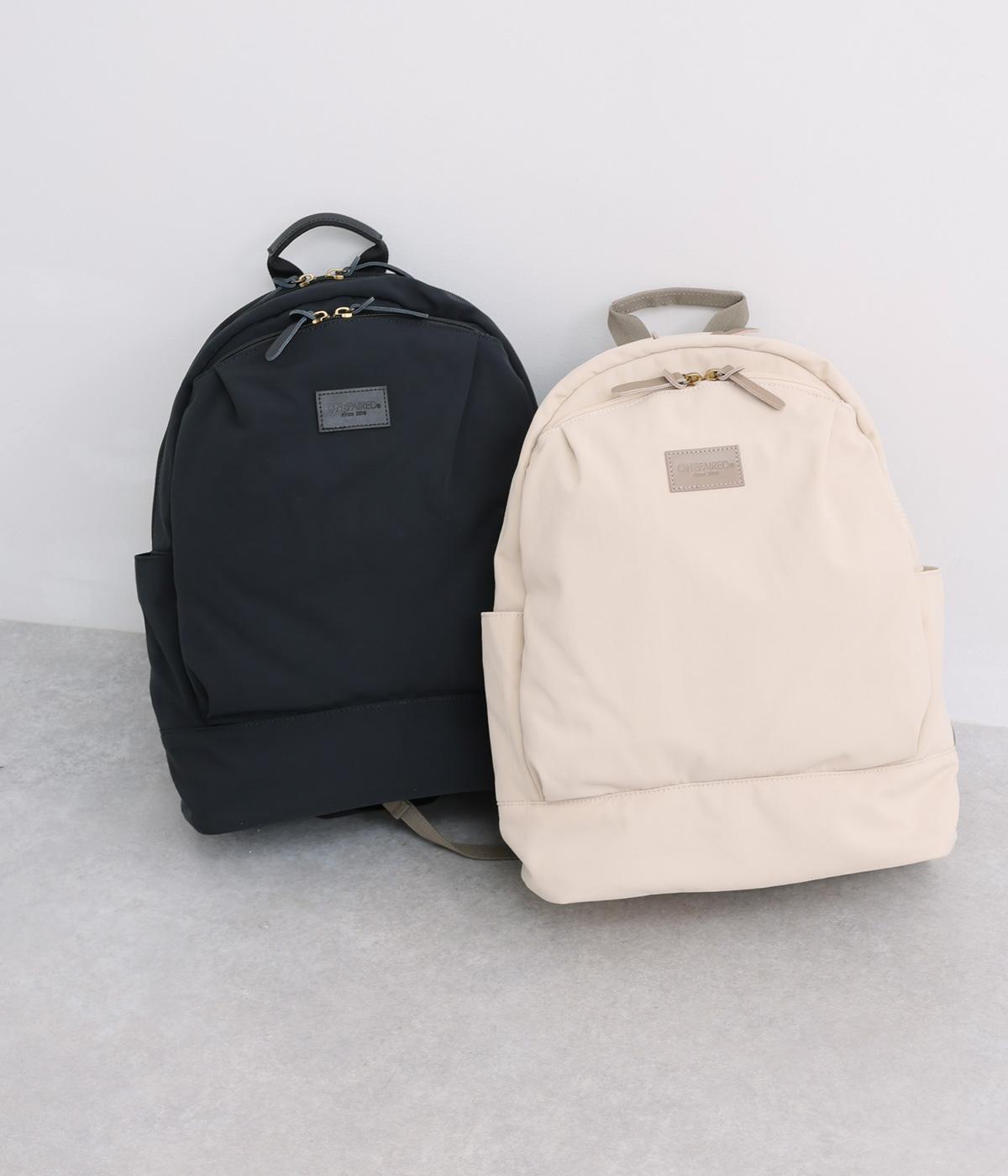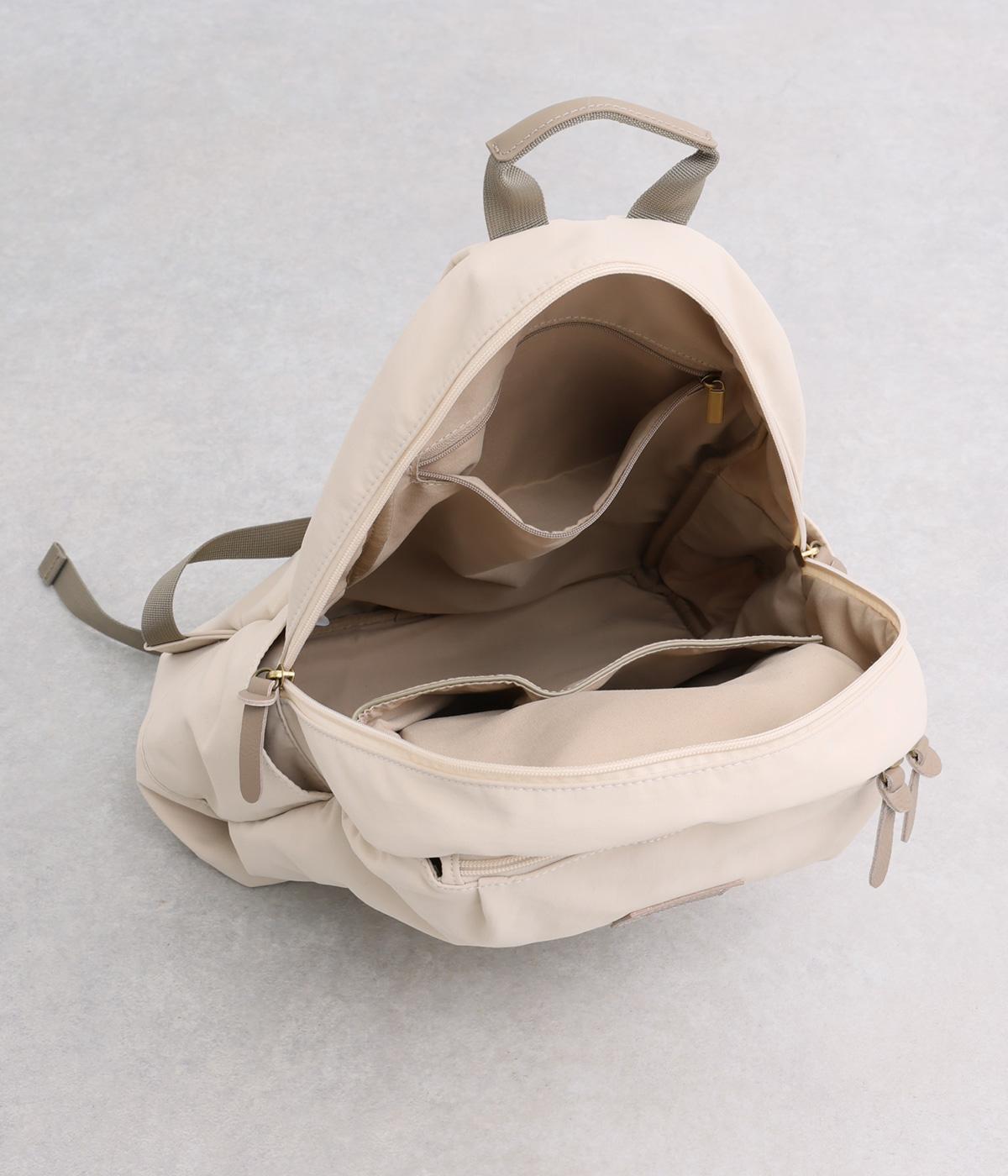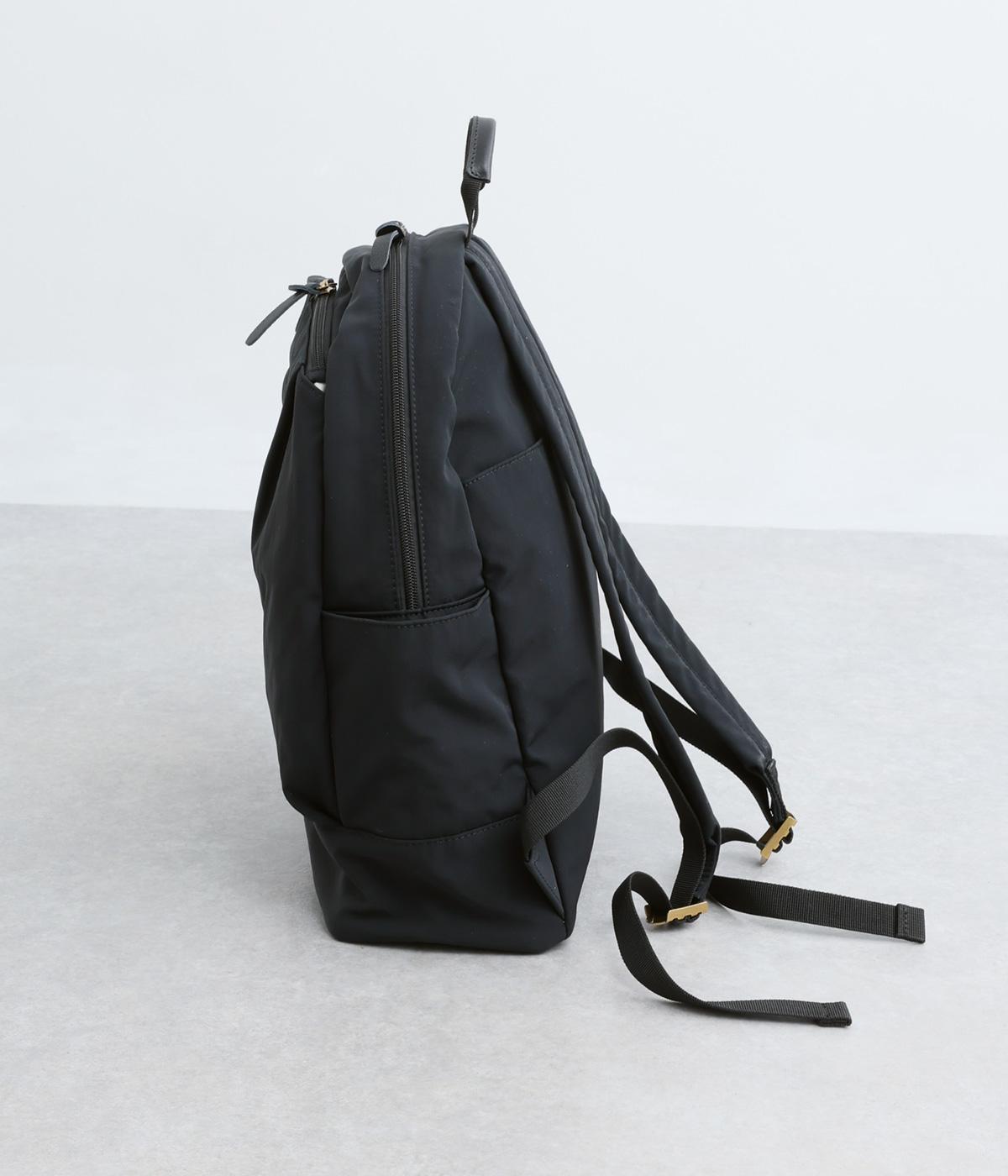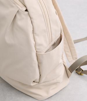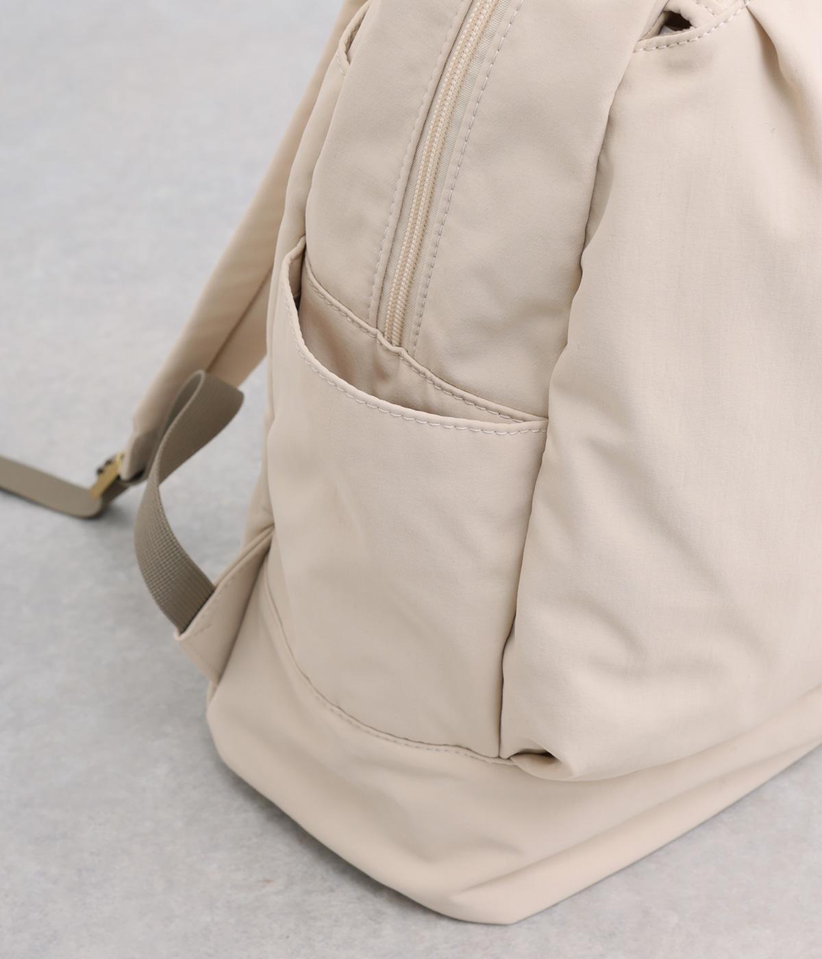丸みを帯びたシルエットがかわいらしい印象のリュック。前面だけでなく背面にもポケットを配し、抜群の収納力です。サイドポケットはドリンクボトルや折り畳み傘の収納に◎。やや小ぶりながらA4がすっぽりおさまるサイズ感です。